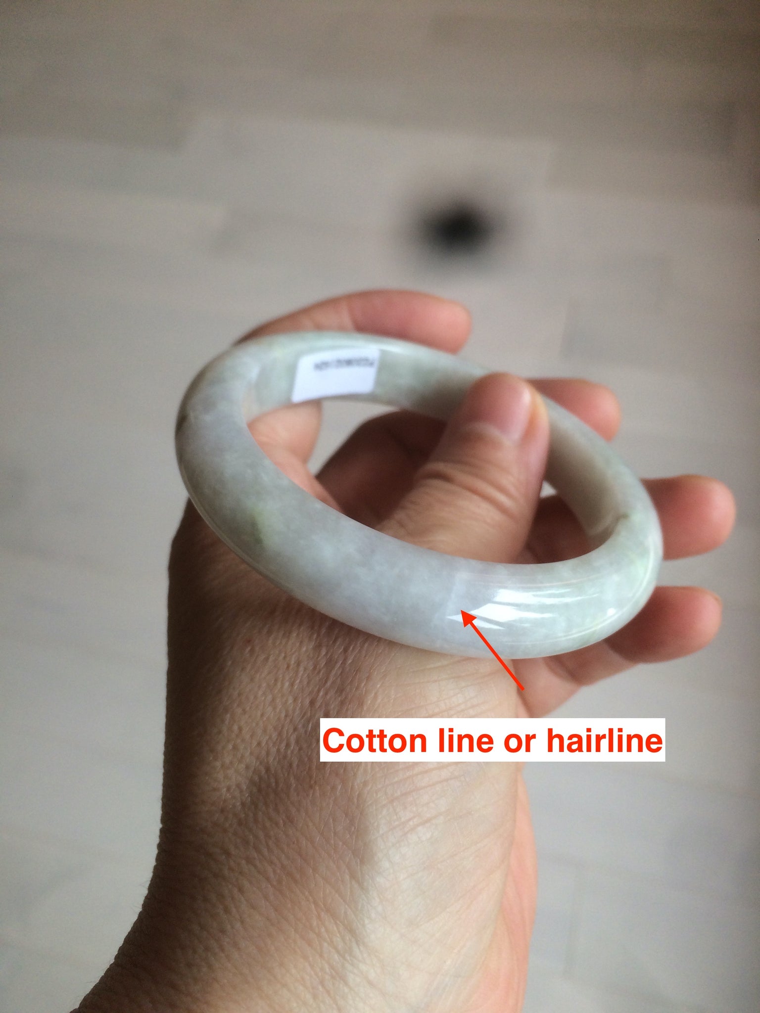 No crack. Some hairlines or cotton lines. Some small brown/yellow rough surfaces. One mine pit. Cotton spots. the texture is not so fine. Not transprant. The purple is very light. Lighter than in the photos.