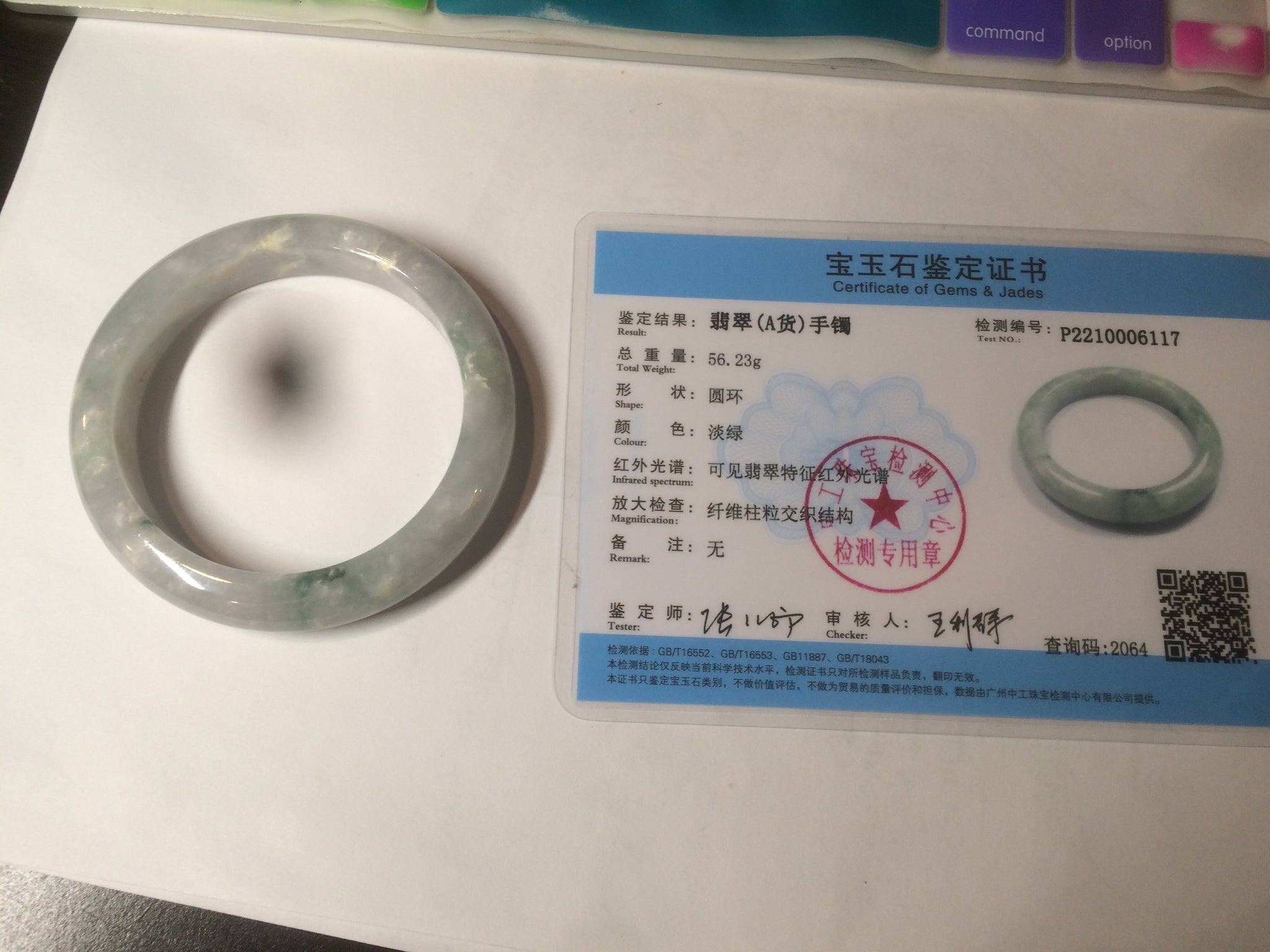 55.6mm Certified type A 100% Natural light green/purple Jadeite bangle AF6-6117