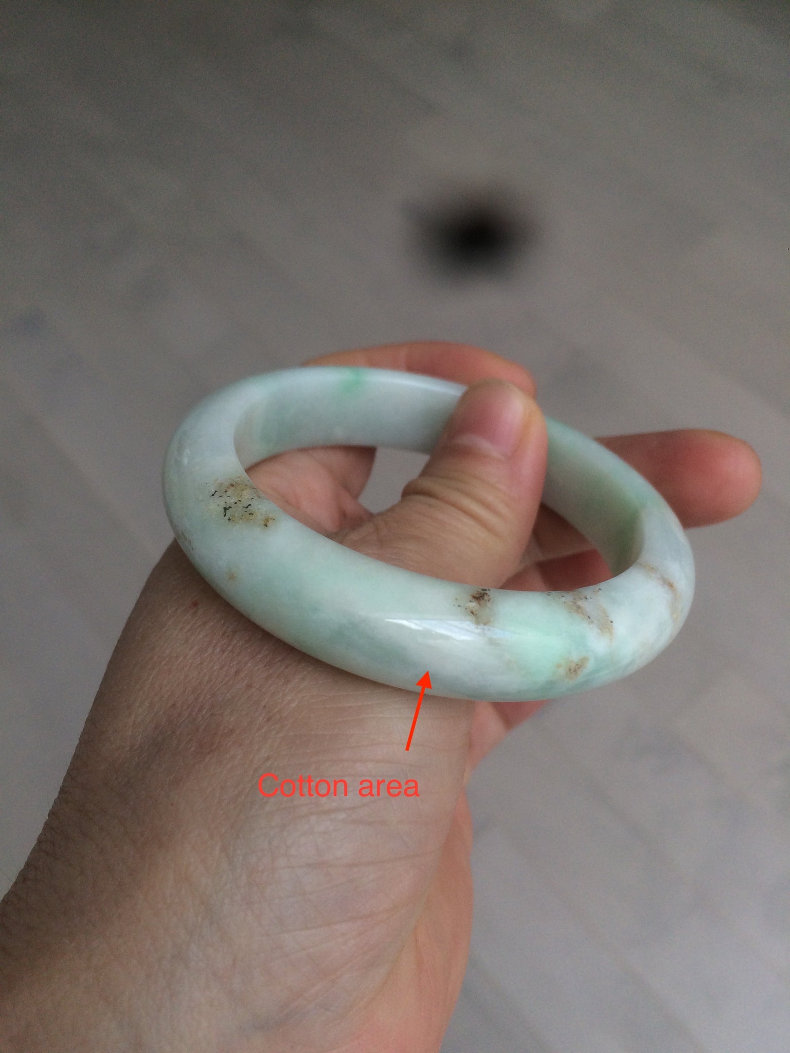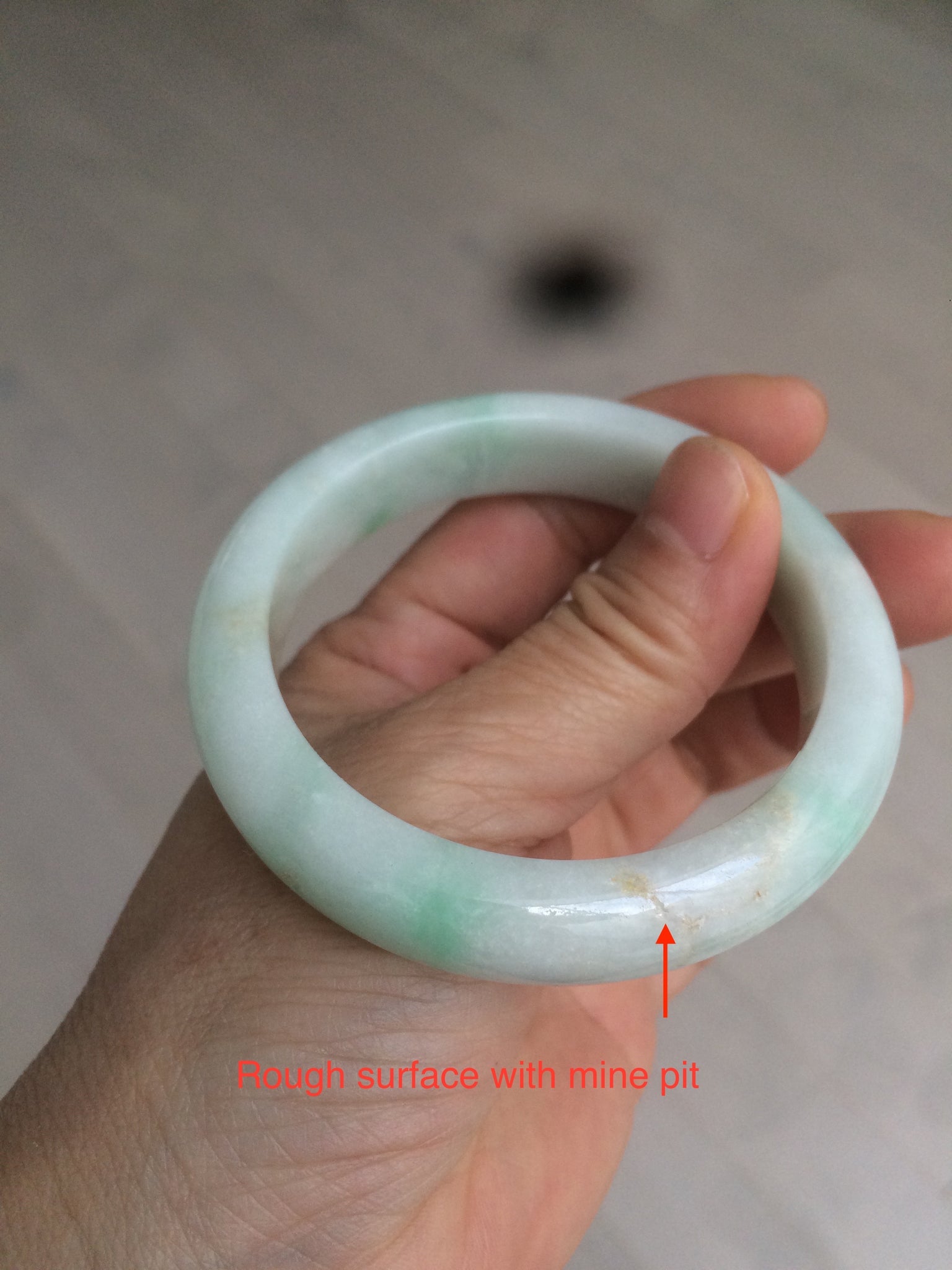 No crack.One hairline. Some cotton lines. Some brown rough surface, tiny mine pits, and impurity area with some wax residue. Some rough surfaces with mine pits are relatively big or connected. All colours are light.
