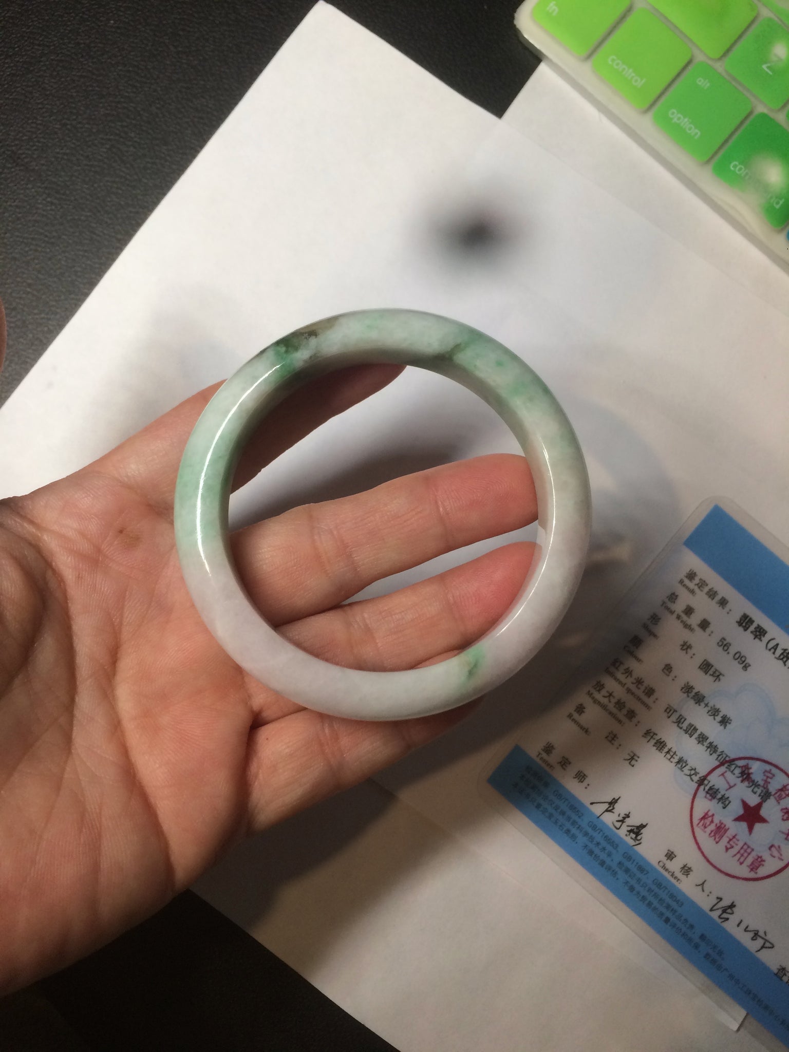 55mm Certified 100% natural Type A sunny green/purple/white jadeite jade bangle BH29-5417