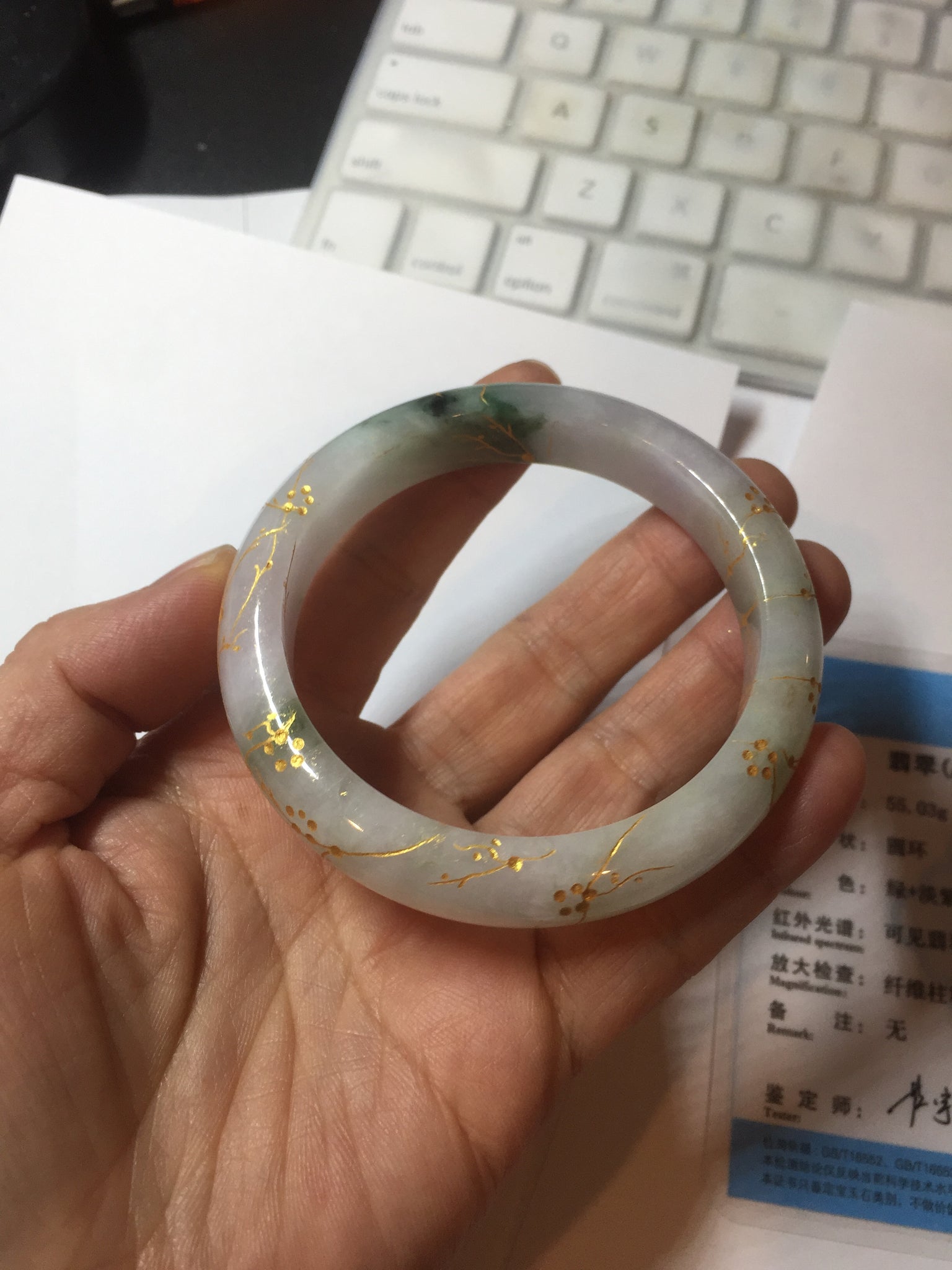 Wearing a plum blossom jade bangle represents inner strength, grace under pressure, and the promise of new beginnings.
