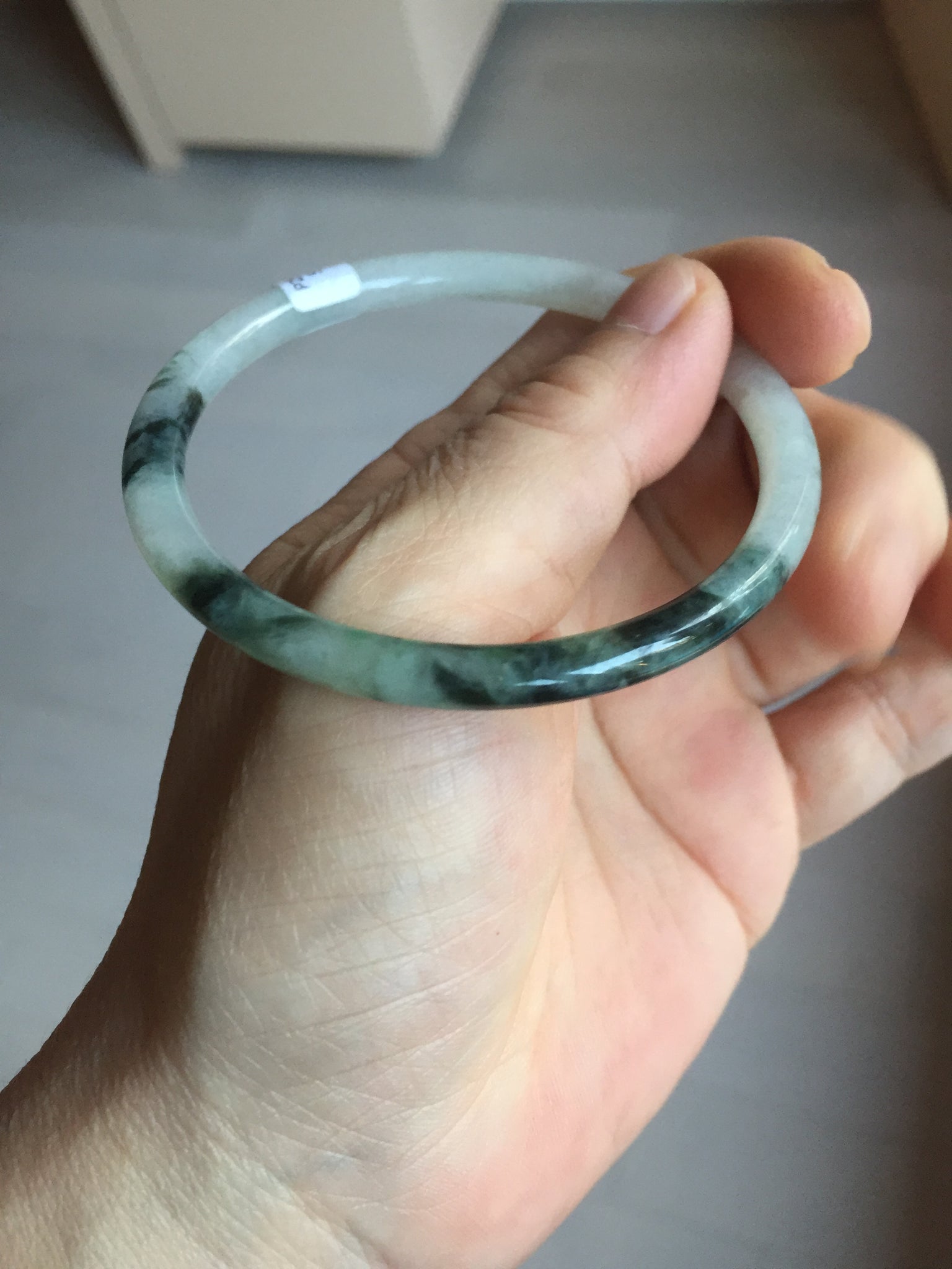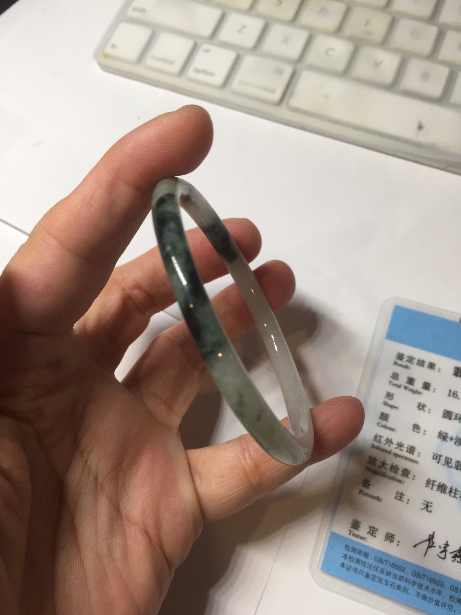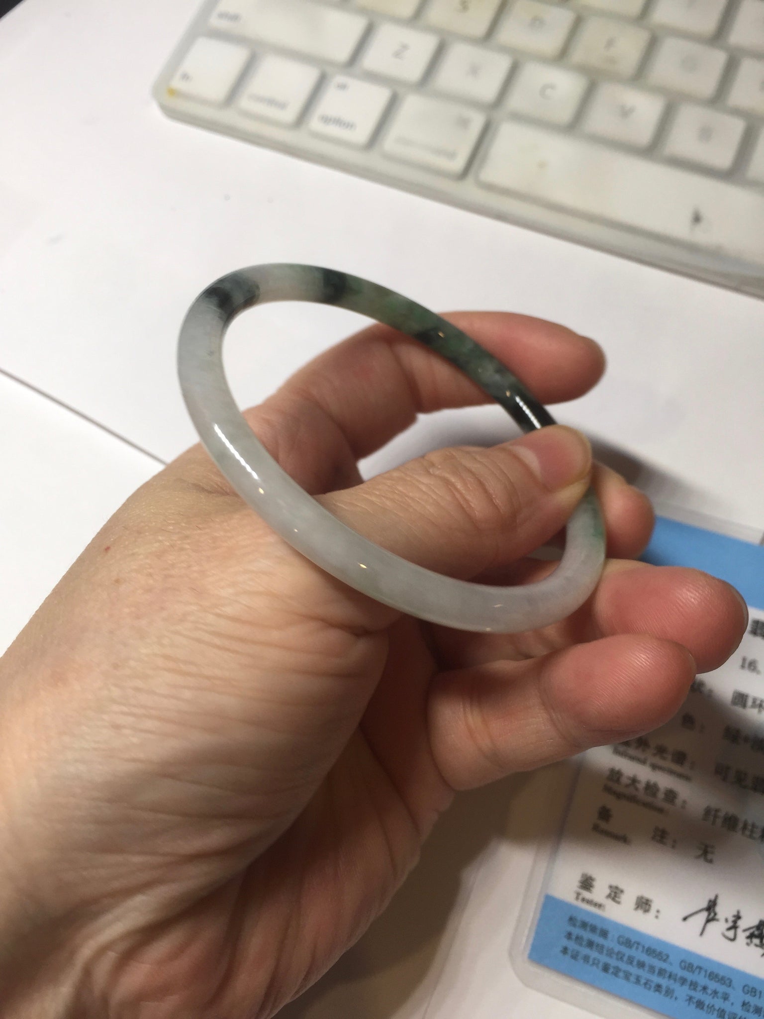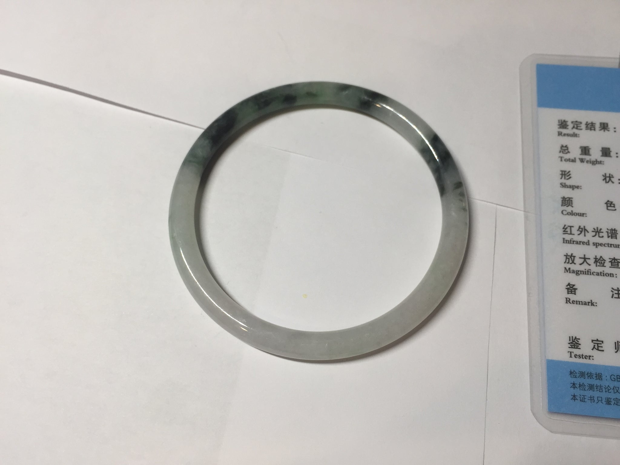 Some surface scratches, rough surfaces with scratches or fissures (photos did not mark them all). Some tiny rough spots. Some cotton lines, cotton spots, and cotton areas. The bangle has some gray/ black color.