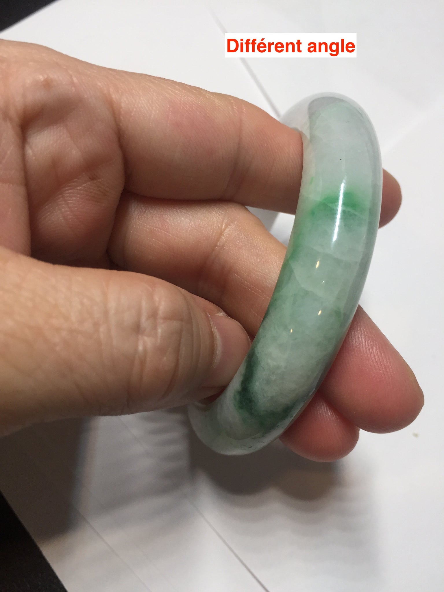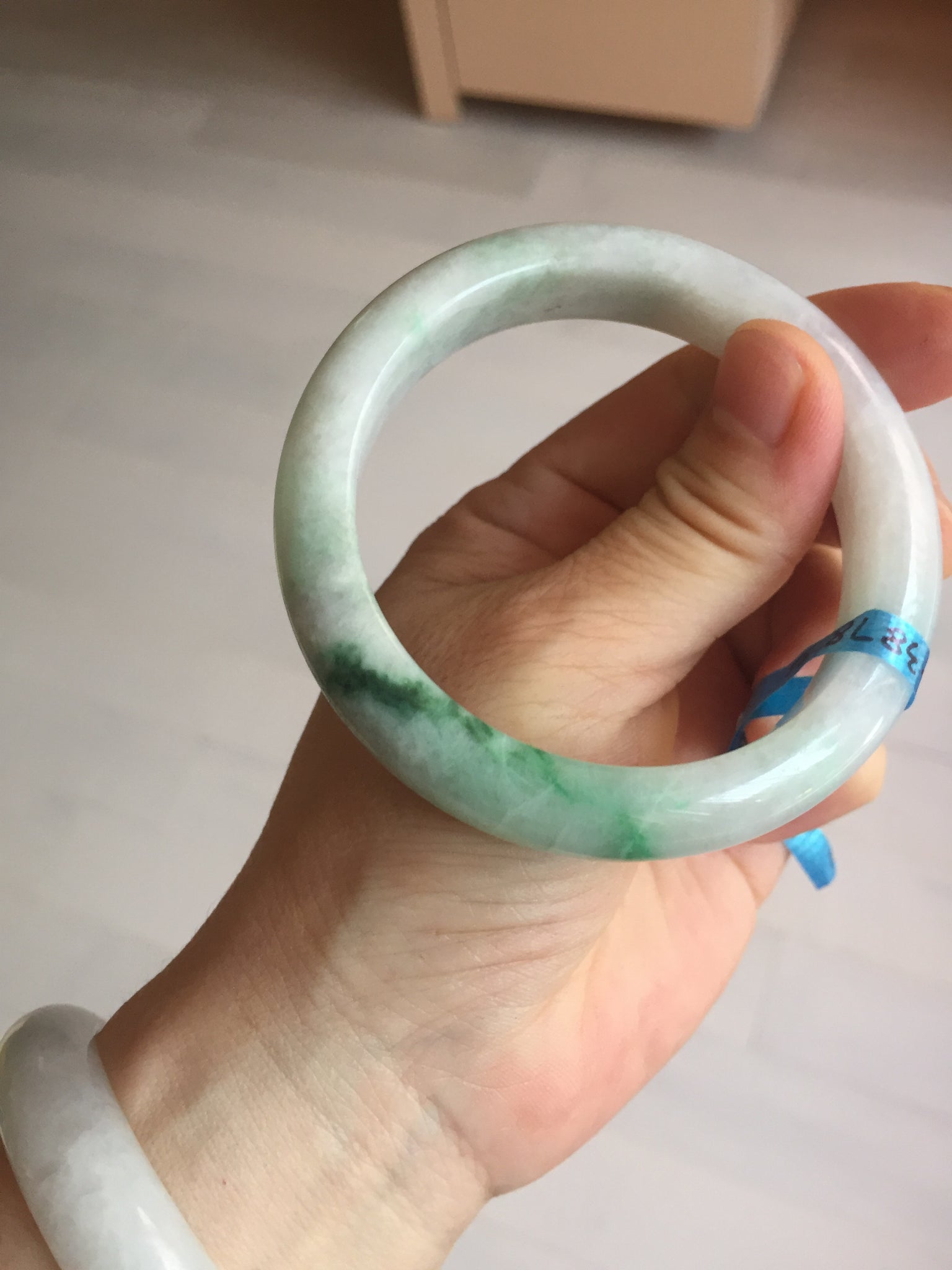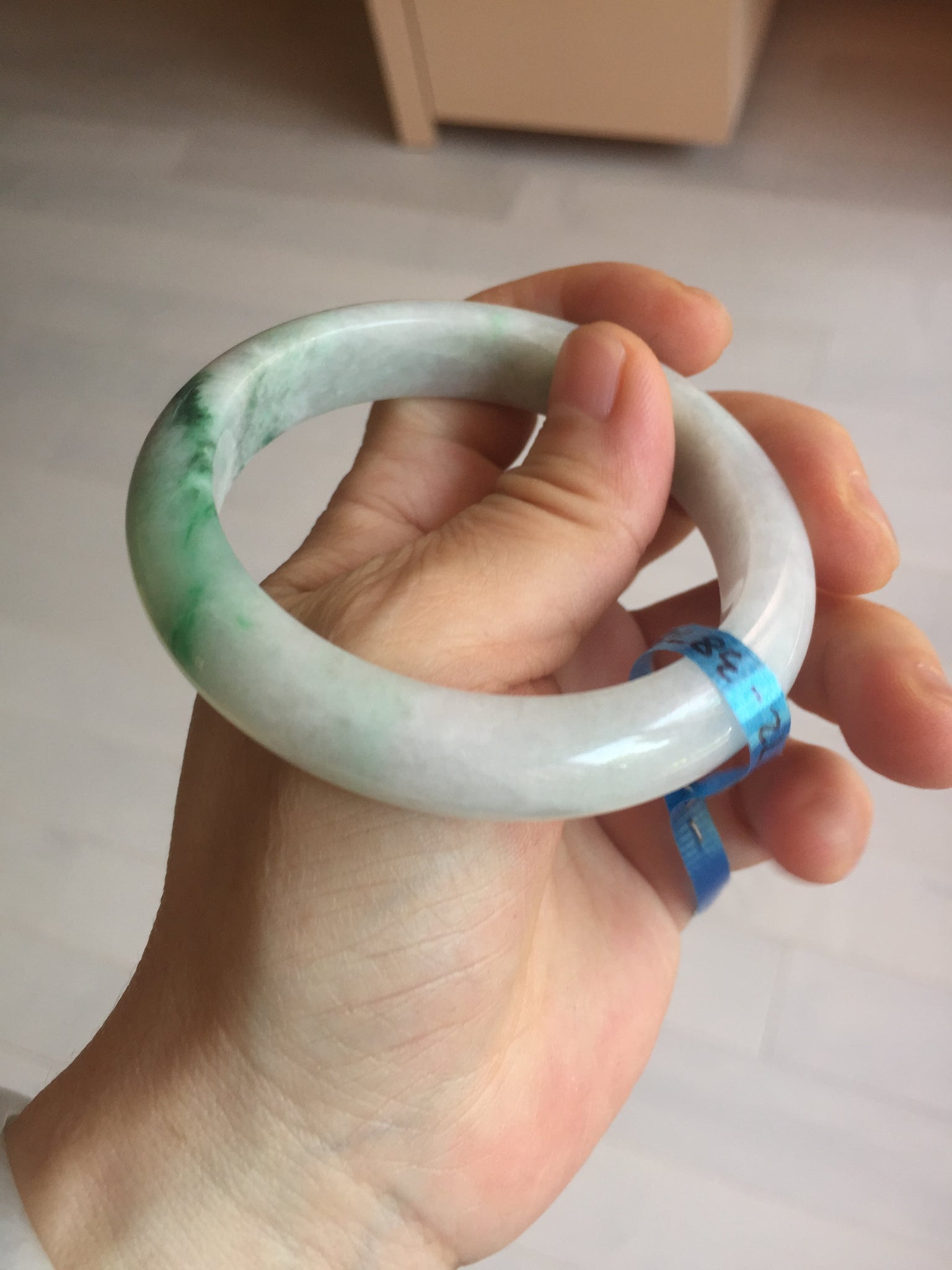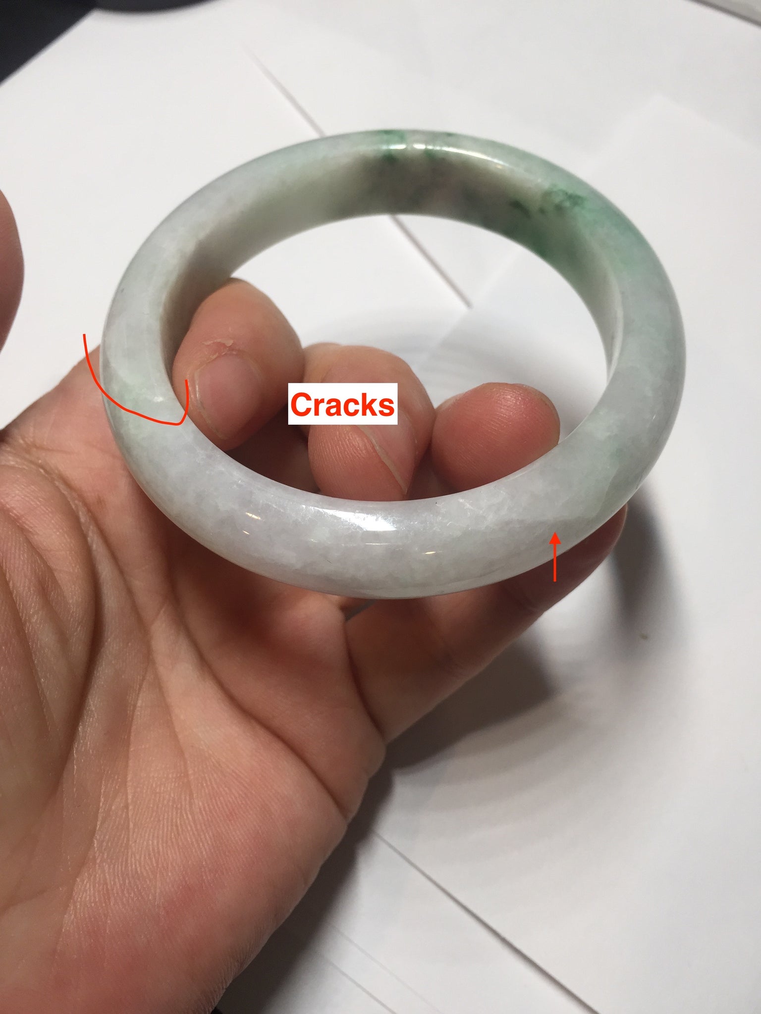 Some cracks (more than 10, photos may not show all of them). The bangle is firm. Some hairlines and cotton lines, and cotton areas and spots.