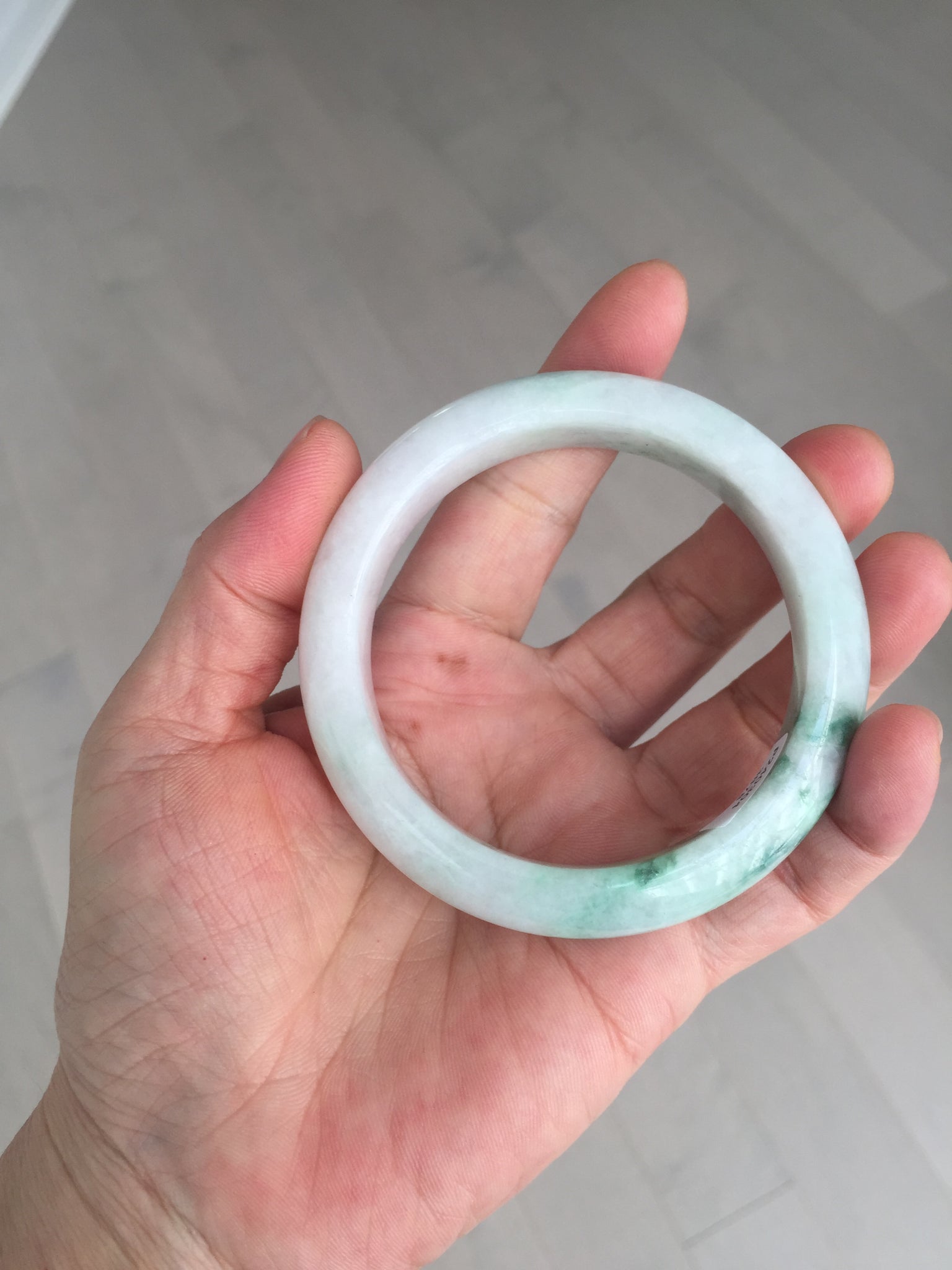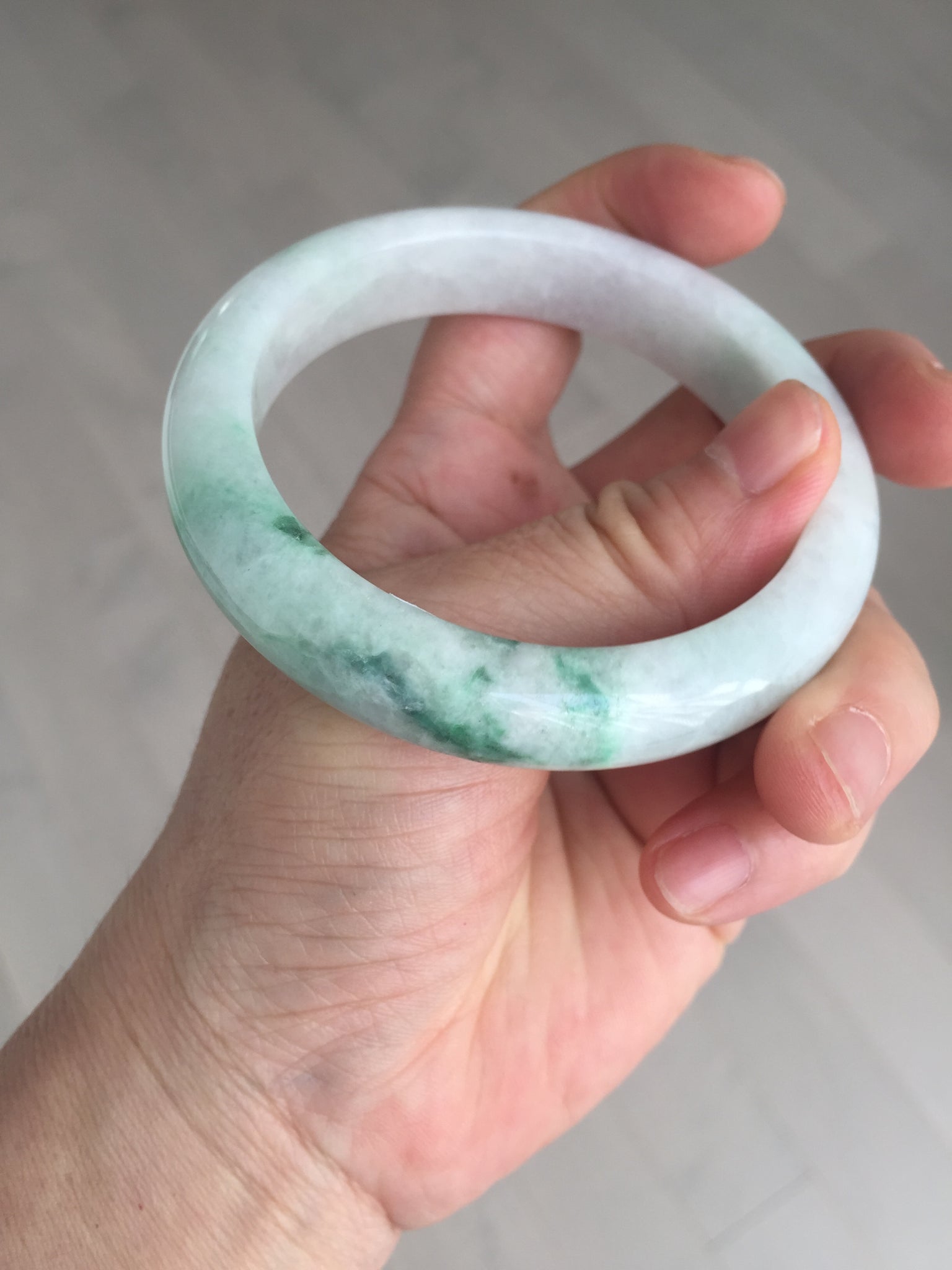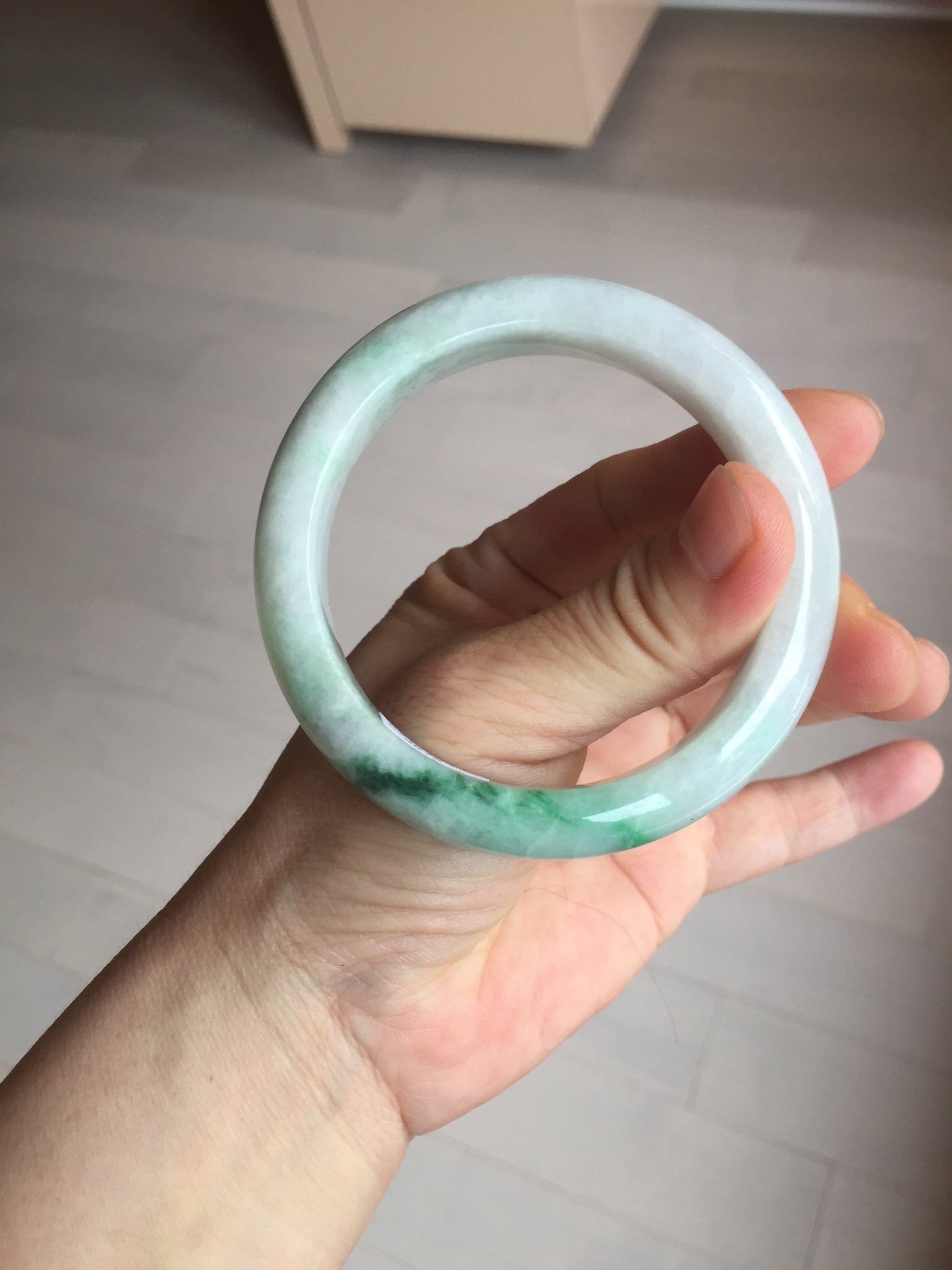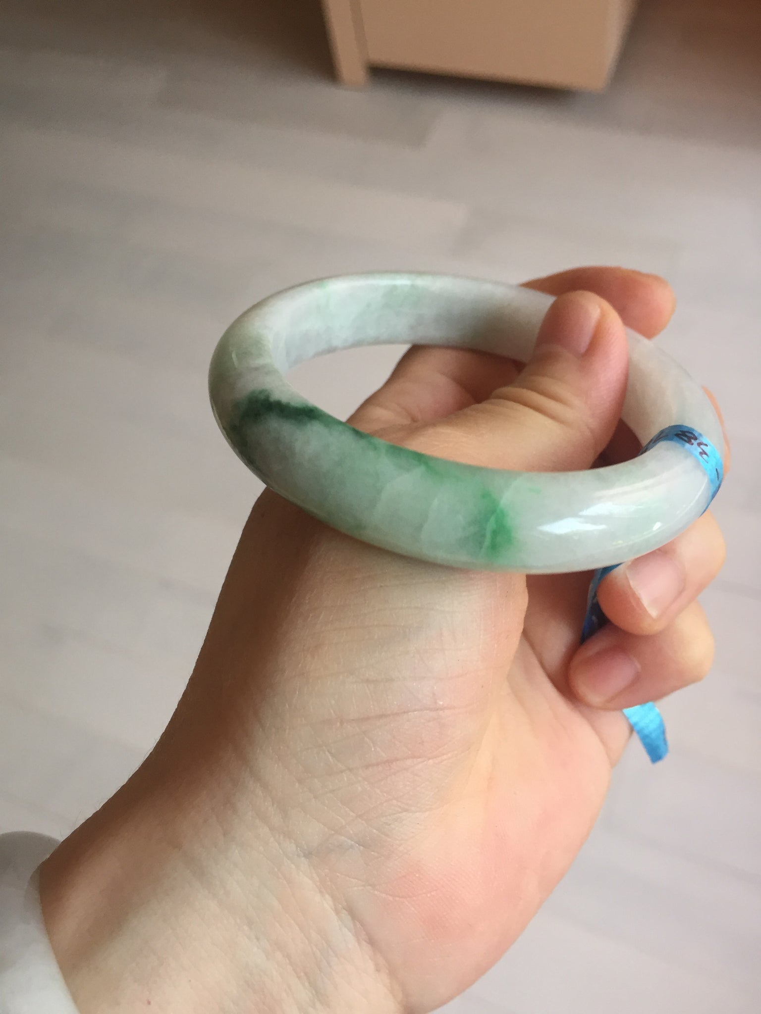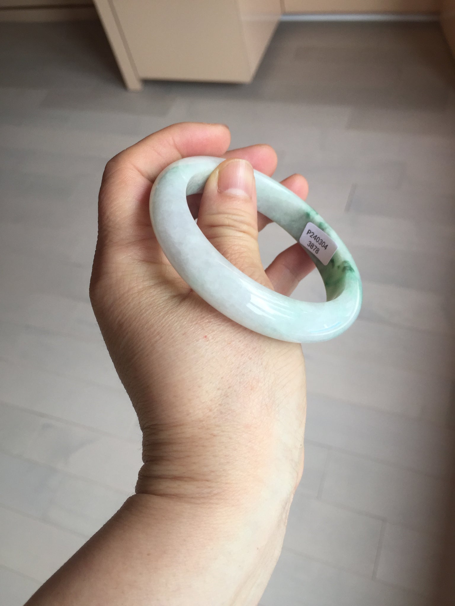 Some cracks (more than 10, photos may not show all of them). The bangle is firm. Some hairlines and cotton lines, and cotton areas and spots.