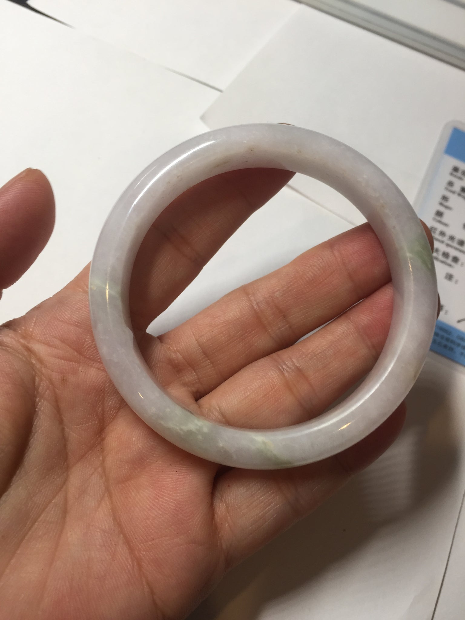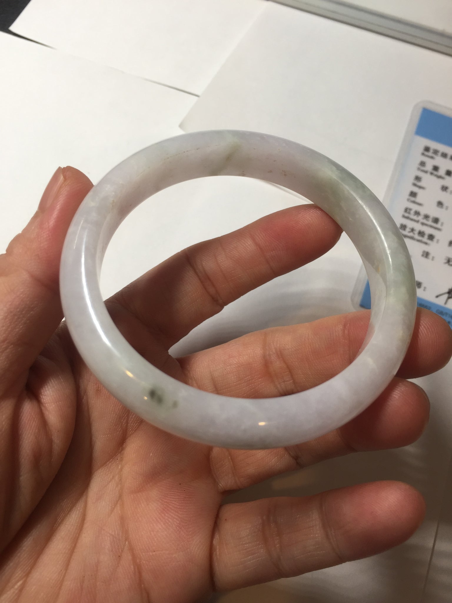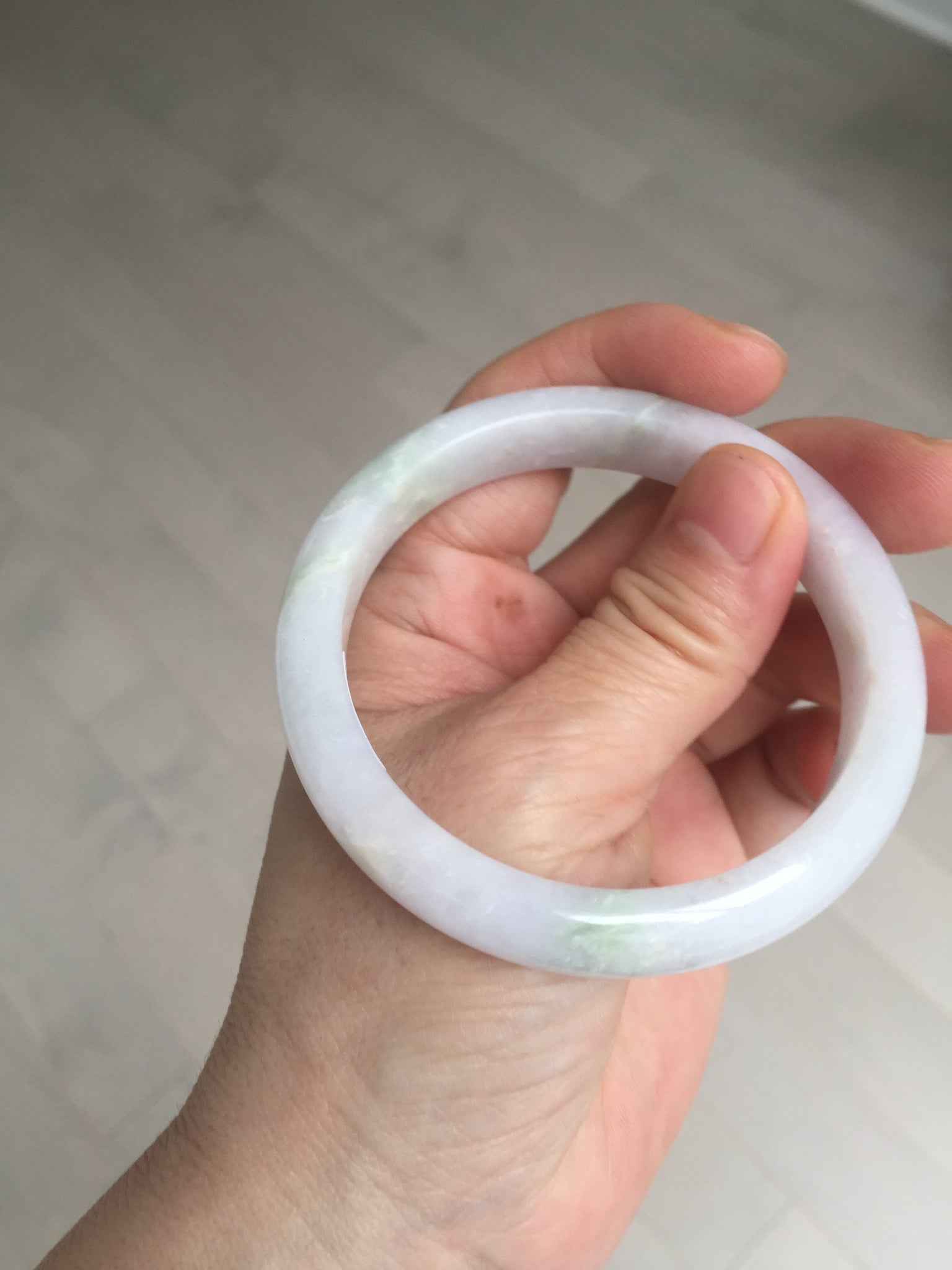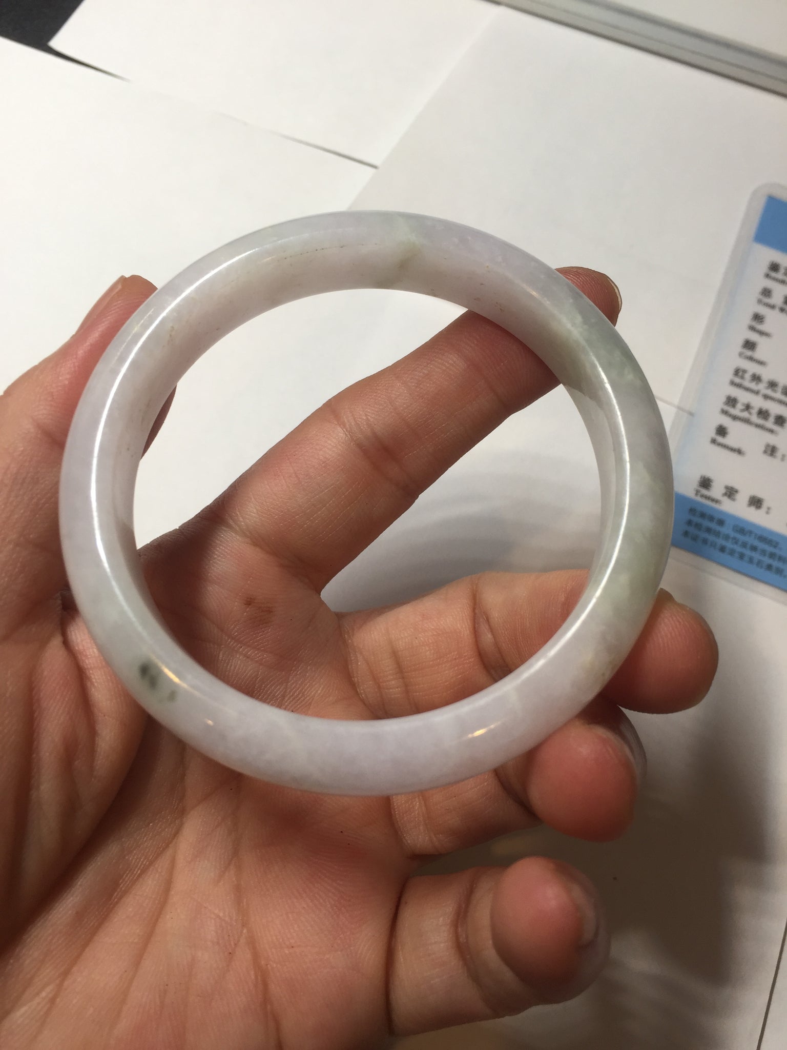 No crack. Some hairlines, rough surfaces with a tiny bit of wax, Cotton lines, and cotton areas. The purple is lighter than in the photos.