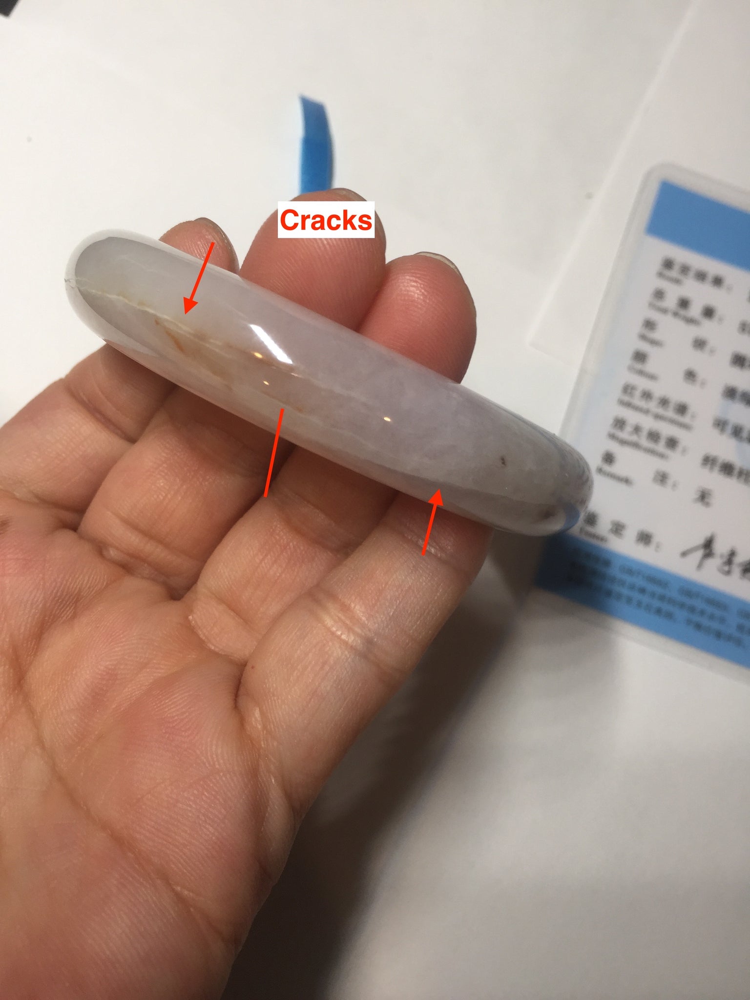 Some long cracks alongside the bangle. The bangle is still firm (Guaranteed!). Some cotton lines, cotton spots, and areas.