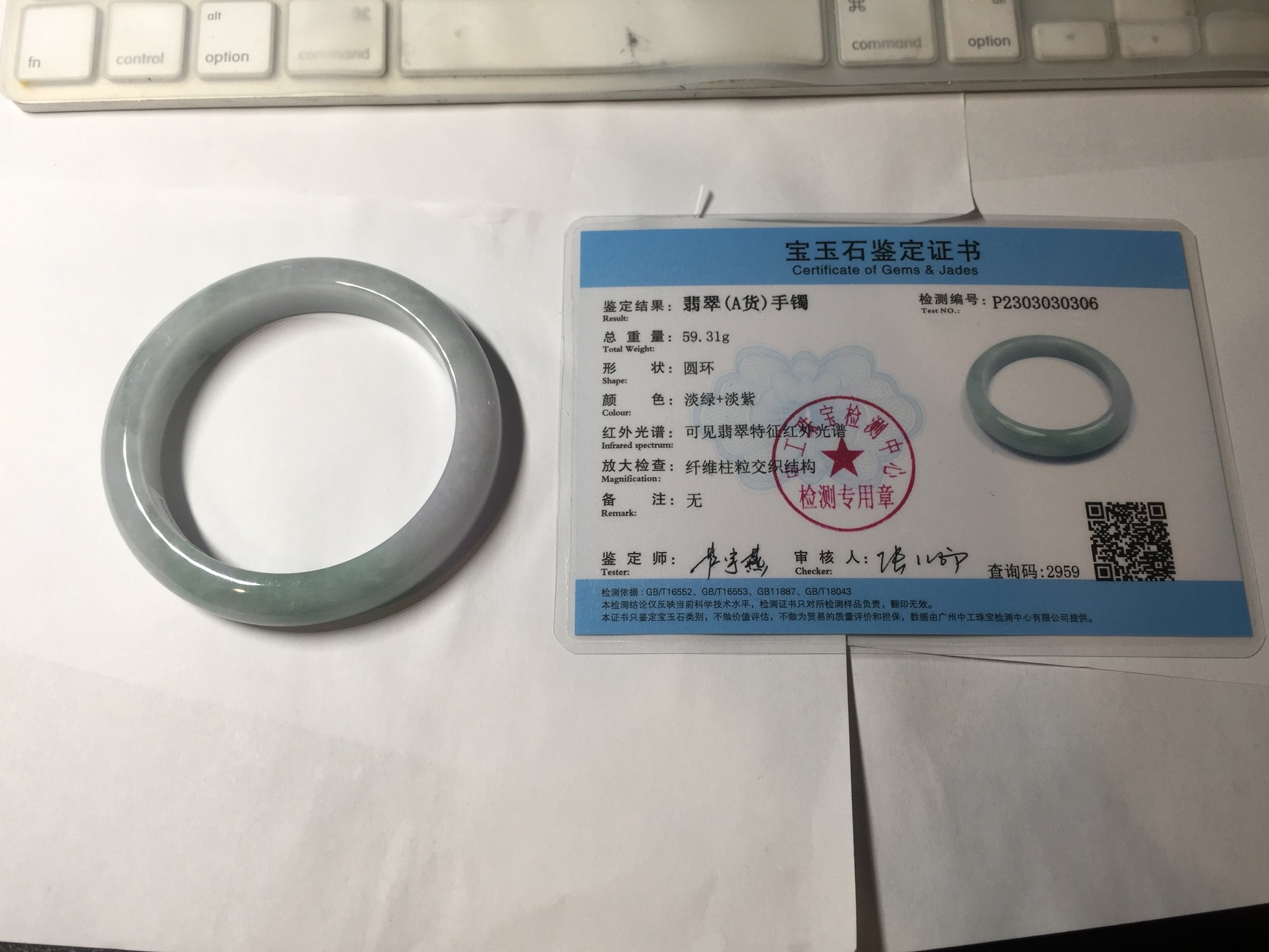 57mm certified 100% natural Type A icy light green/purple jadeite jade bangle PE5-0306