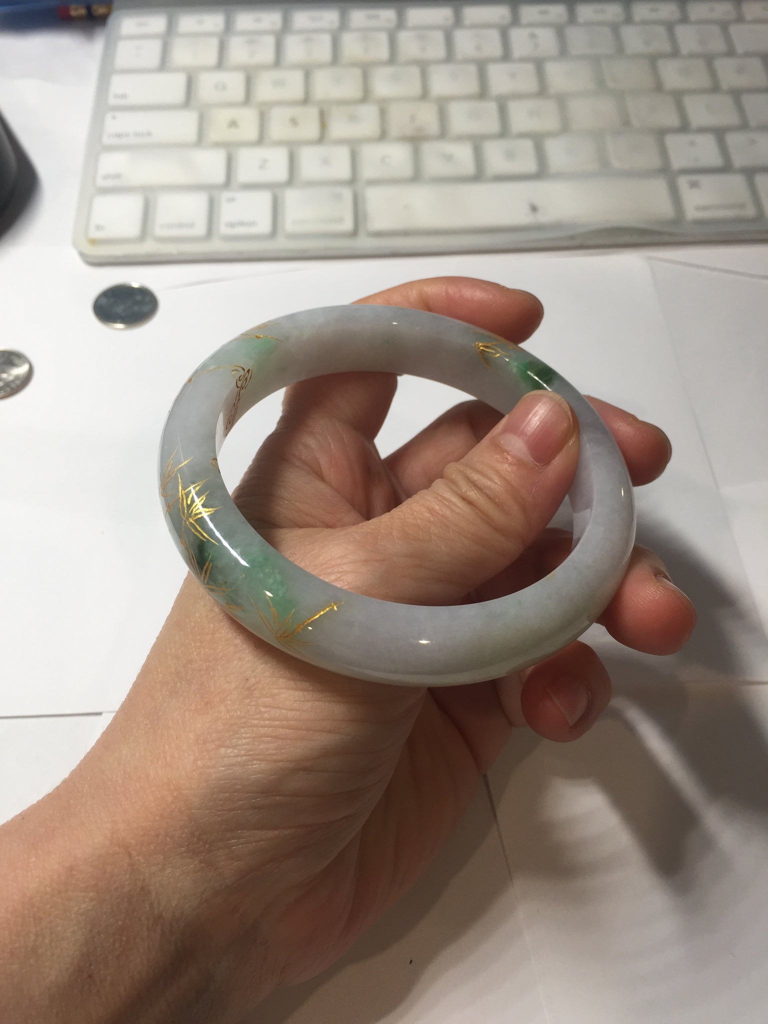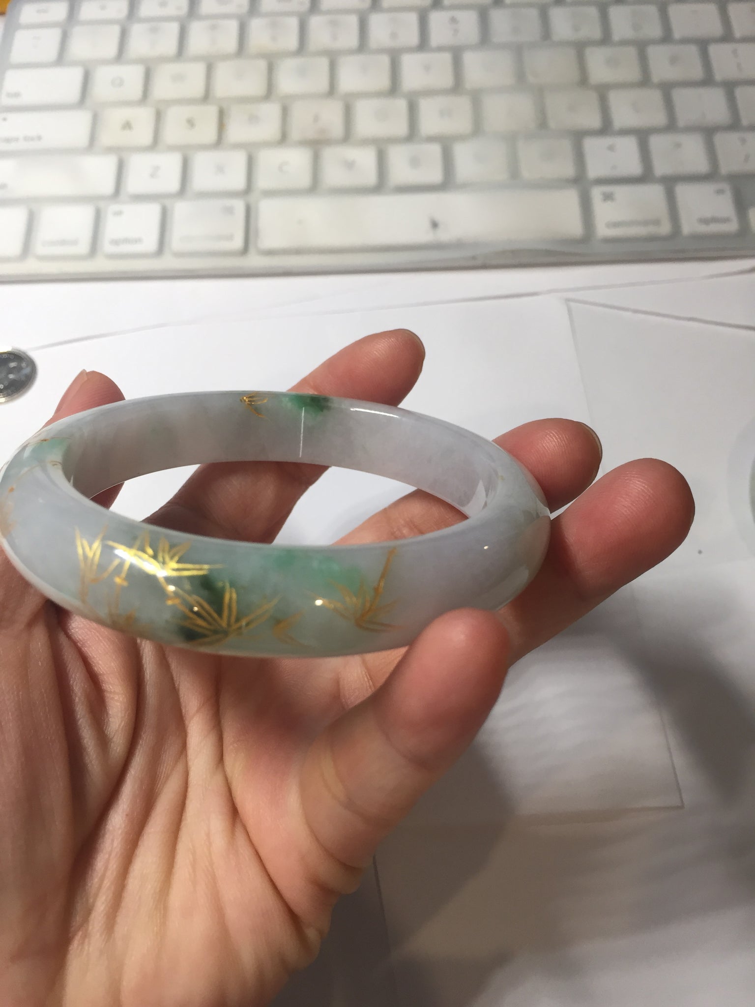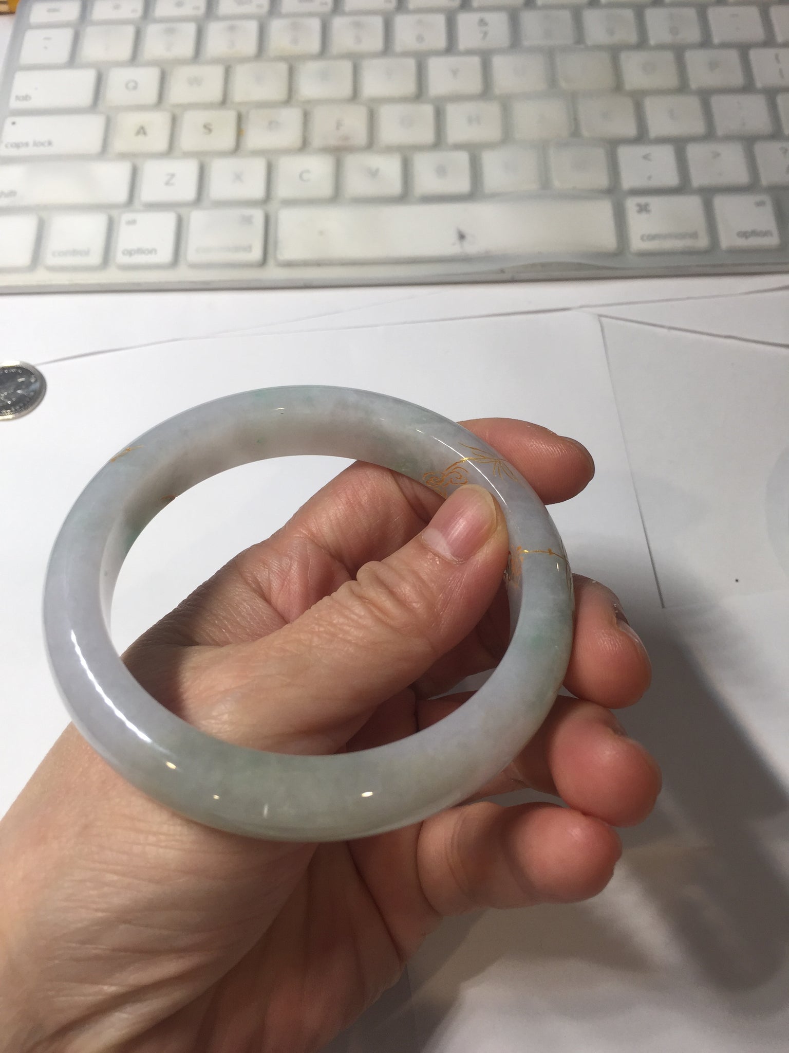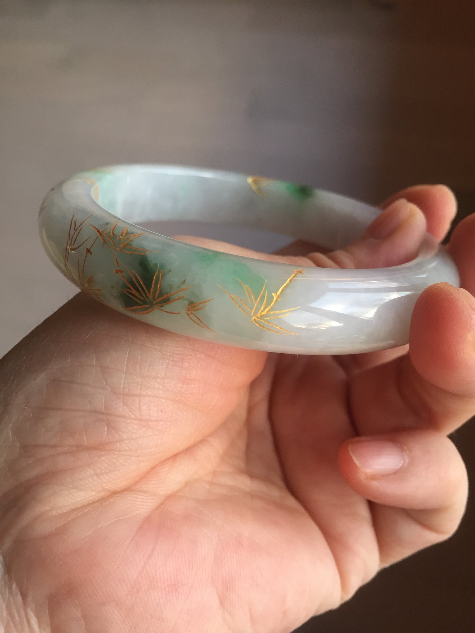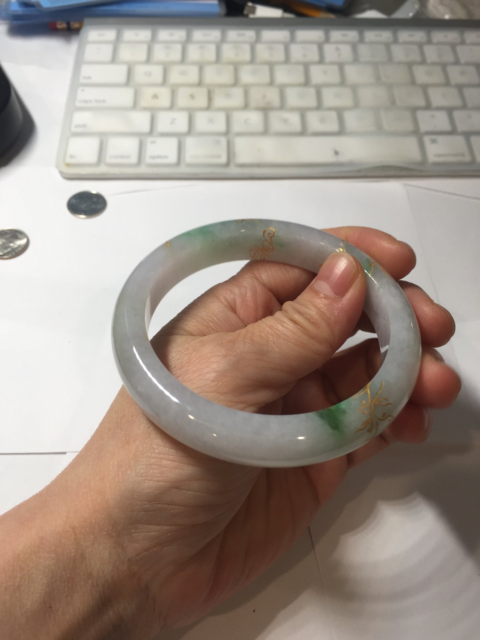 May have some surface cracks or hairlines was carved off or covered by the carving. The bangle is still firm(Guaranteed!). Makes high pitch sound when tapped. Some cotton spots, cotton lines, and cotton areas.