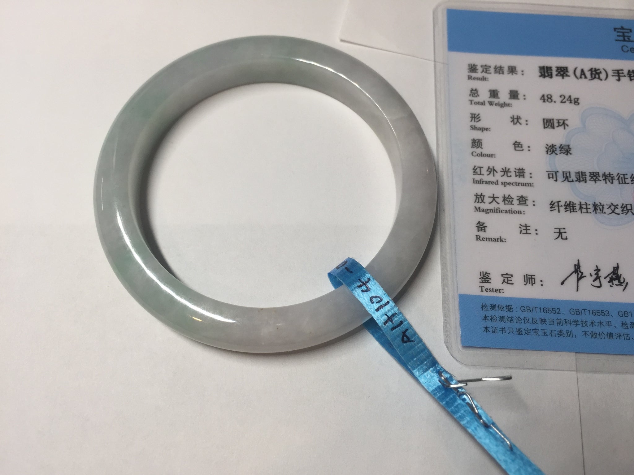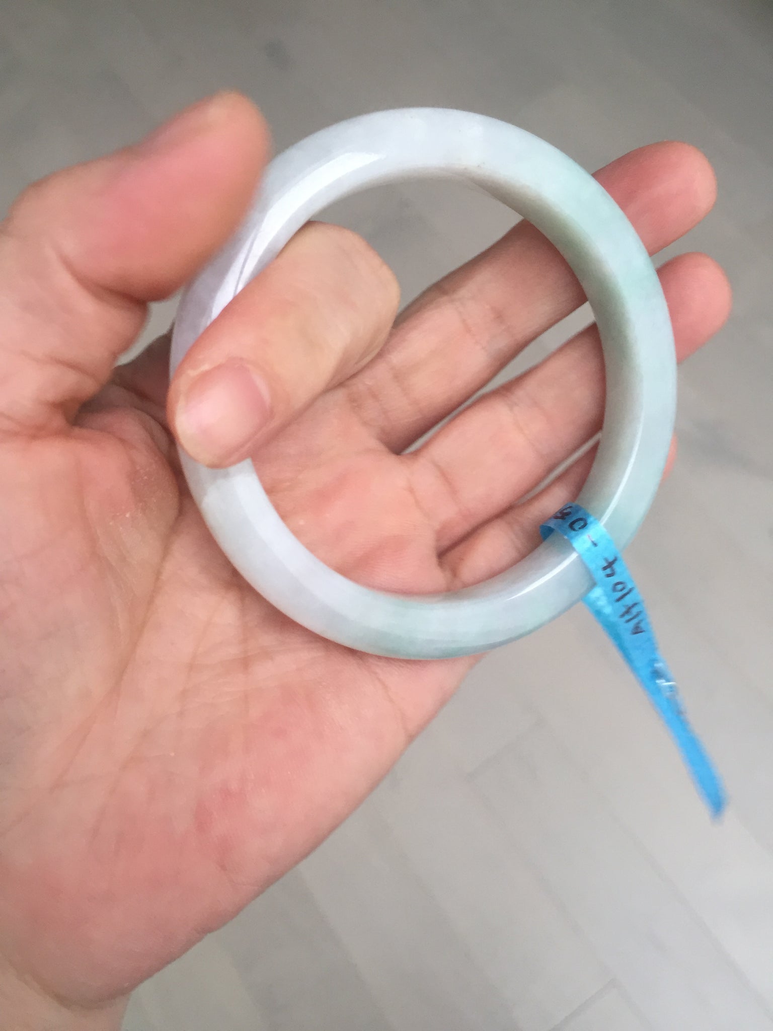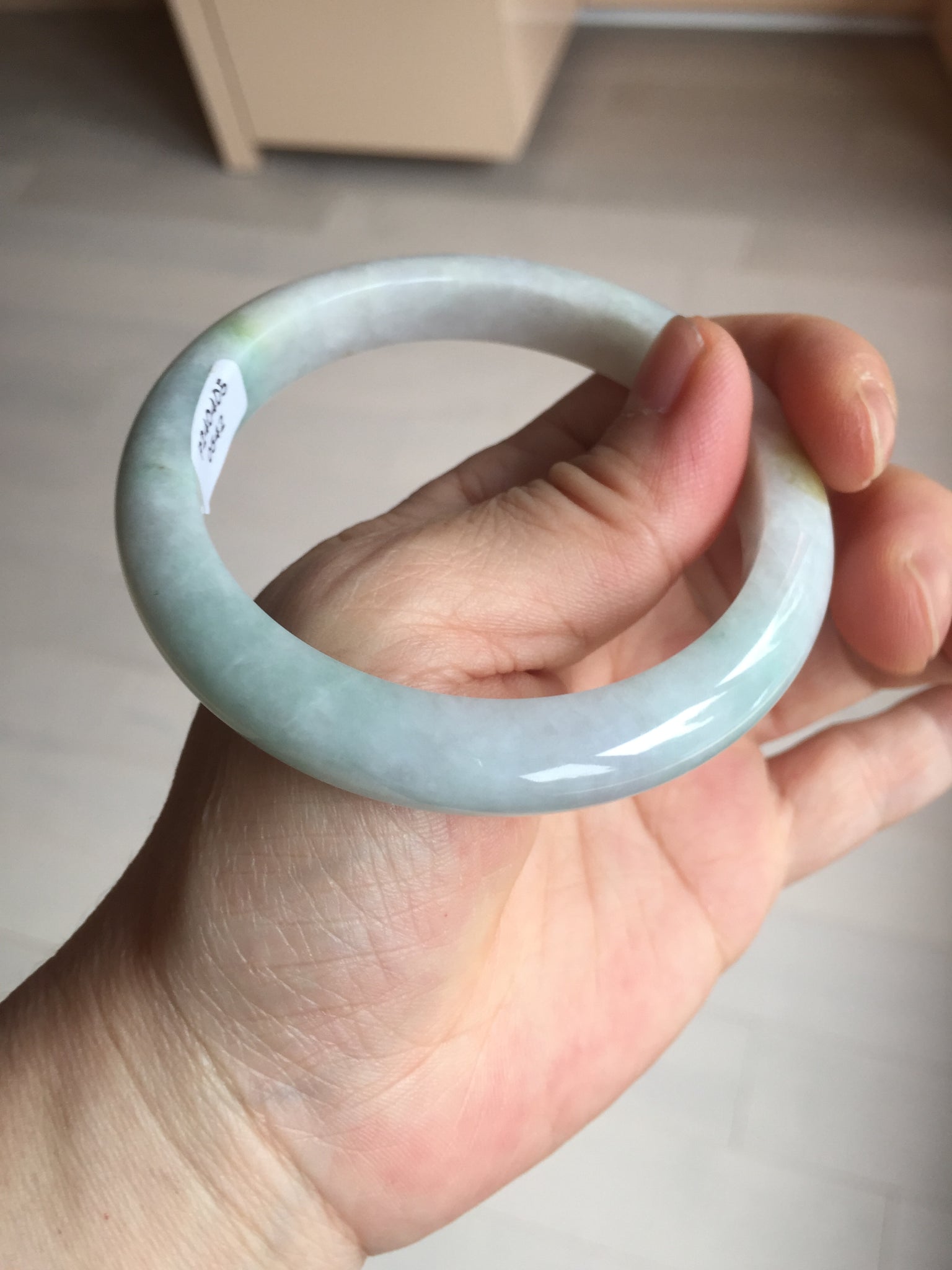 Some cracks. One of them is almost around the bangle. The bangle is still solid (Guaranteed!). Some hairlines, cotton lines, cotton spots, and areas. The purple is super light and just a hint of it.
