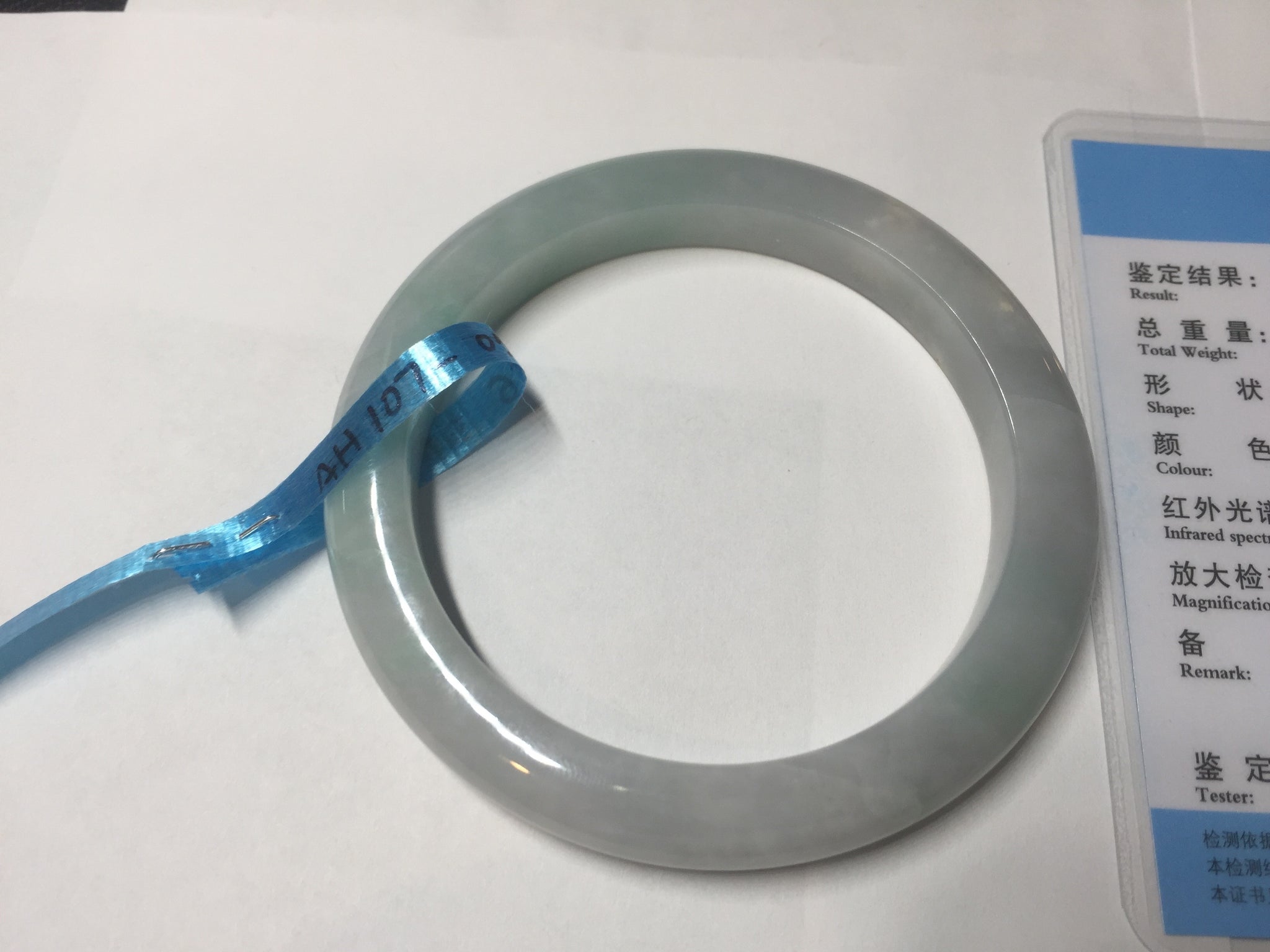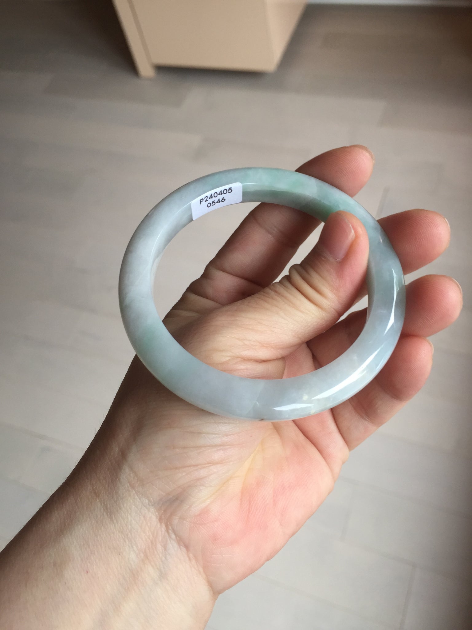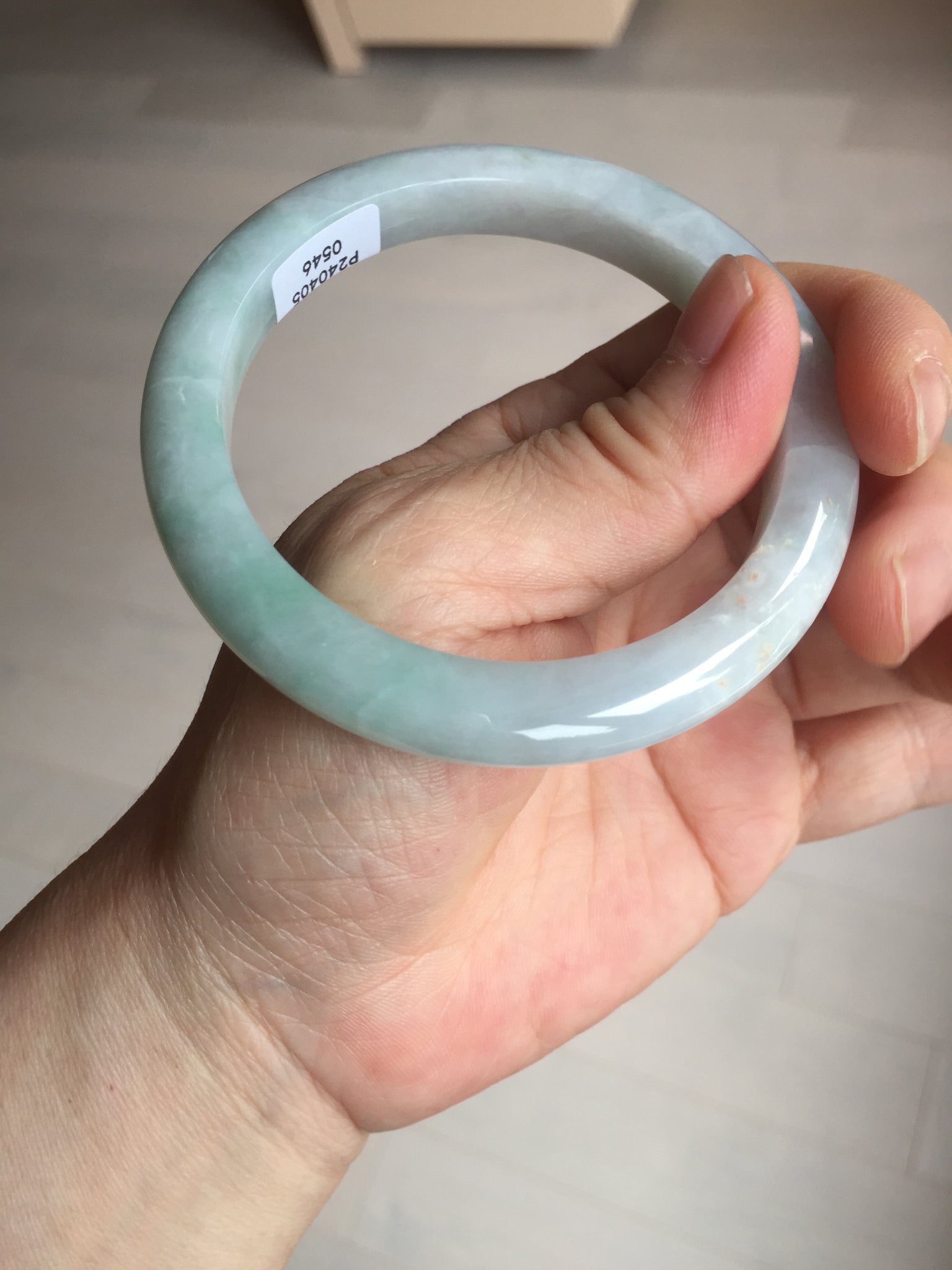 Some cracks. The bangle is still solid (Guaranteed!). Some hairlines, cotton lines, cotton spots, and areas. The purple is super light. Just a hint of it.