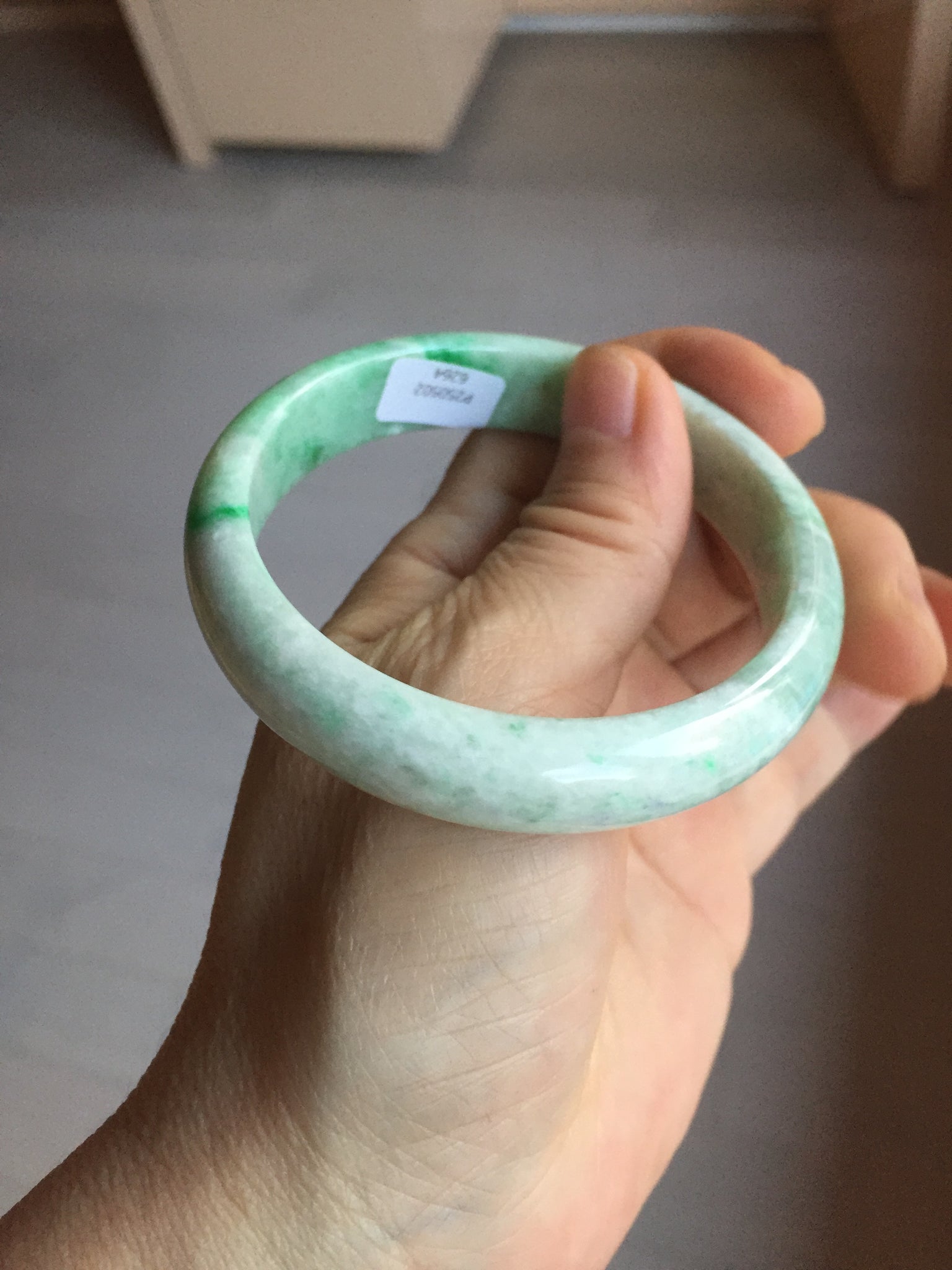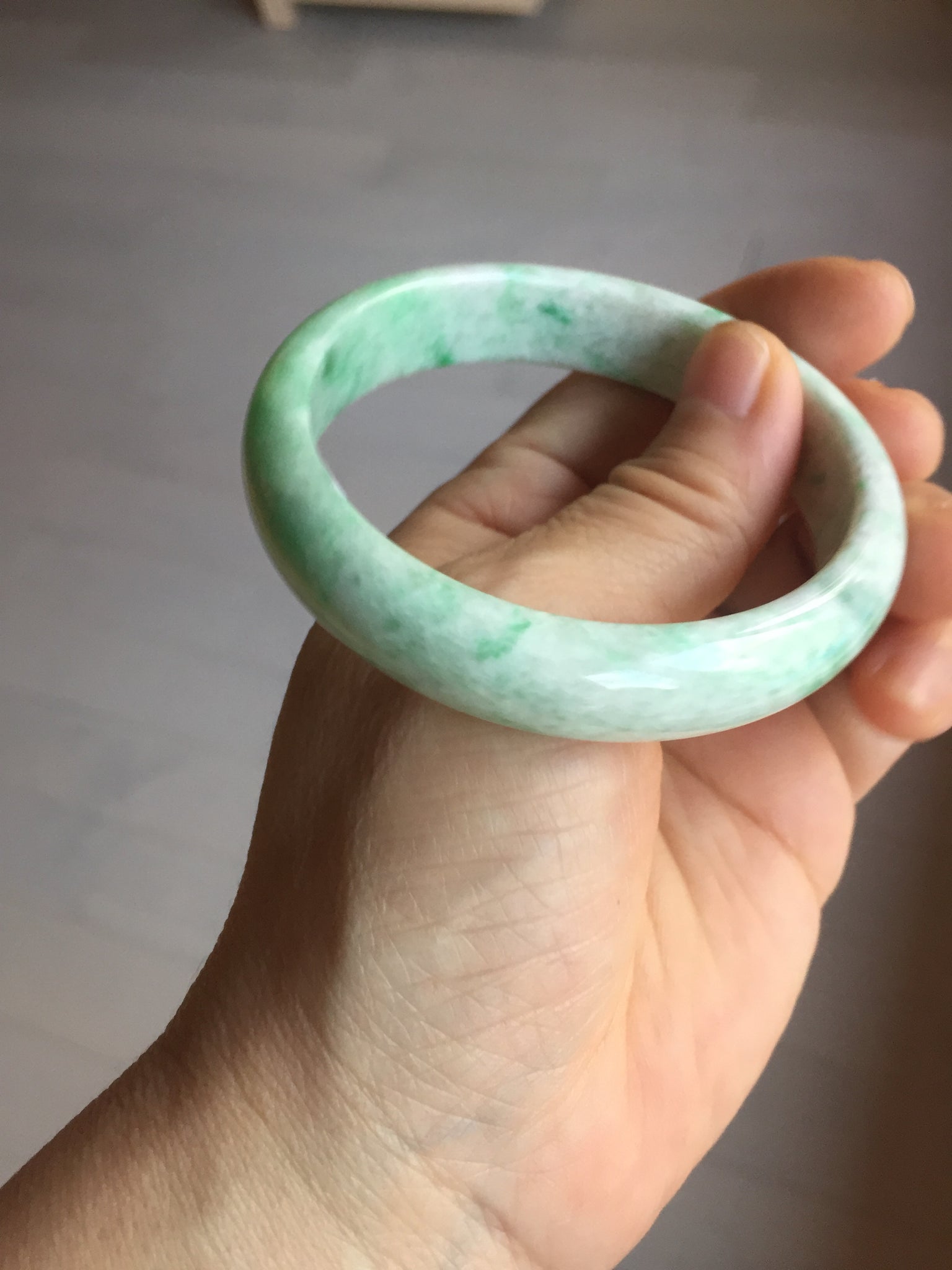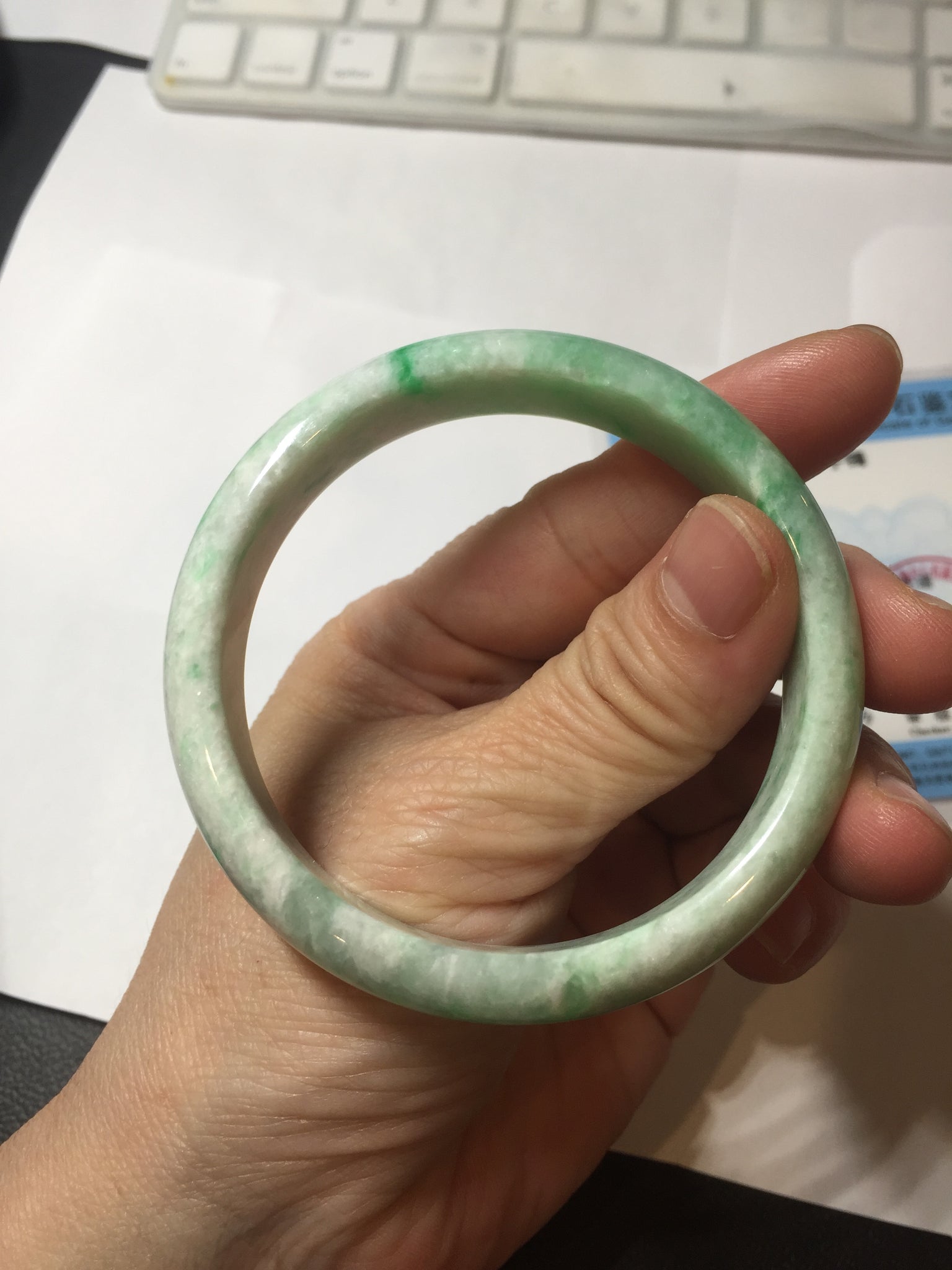 56/12.8/6.6mm Pale celadon/icy mint base with fresh sunny green spots