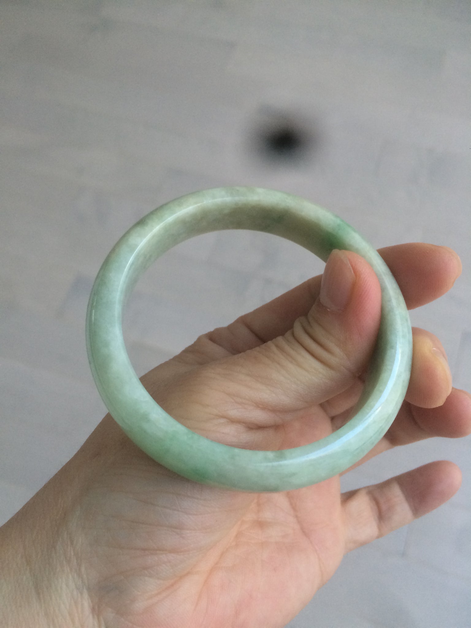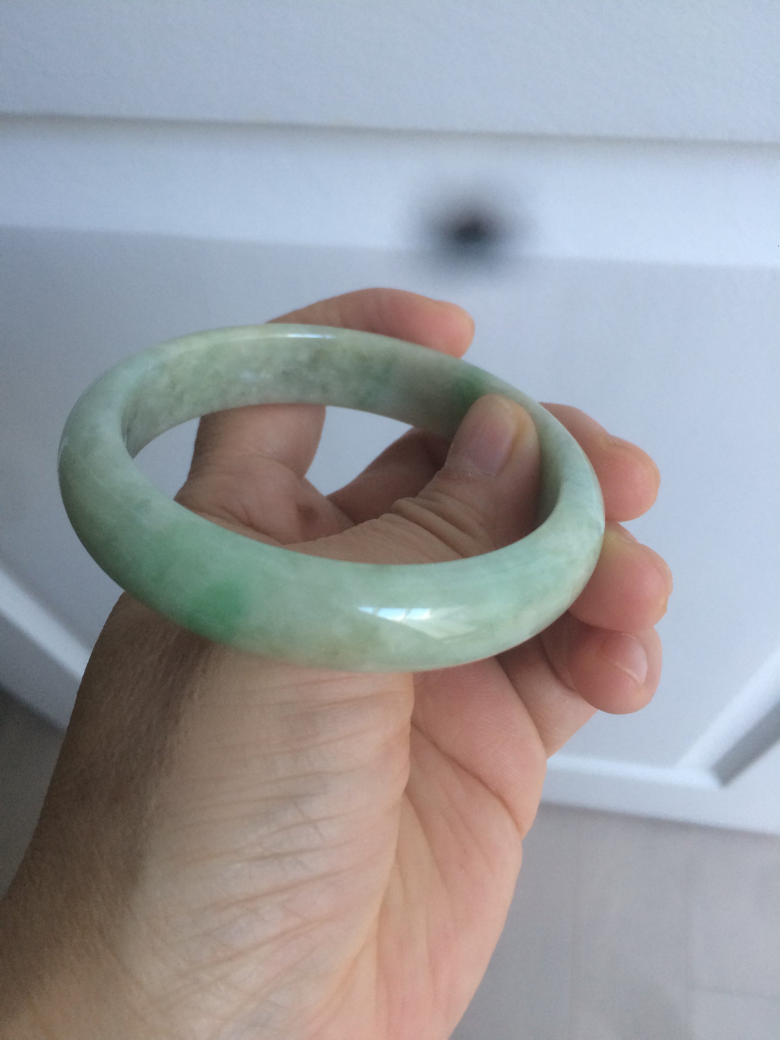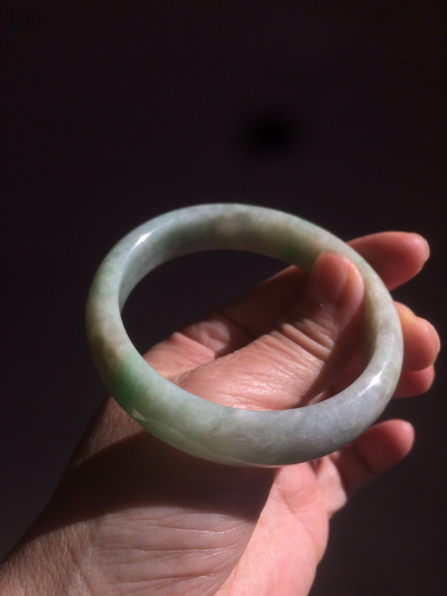 Some surface cracks. Some hairlines. Some cotton spots and brown areas. Some surfaces of the bangle are not smooth. Not transparent.
