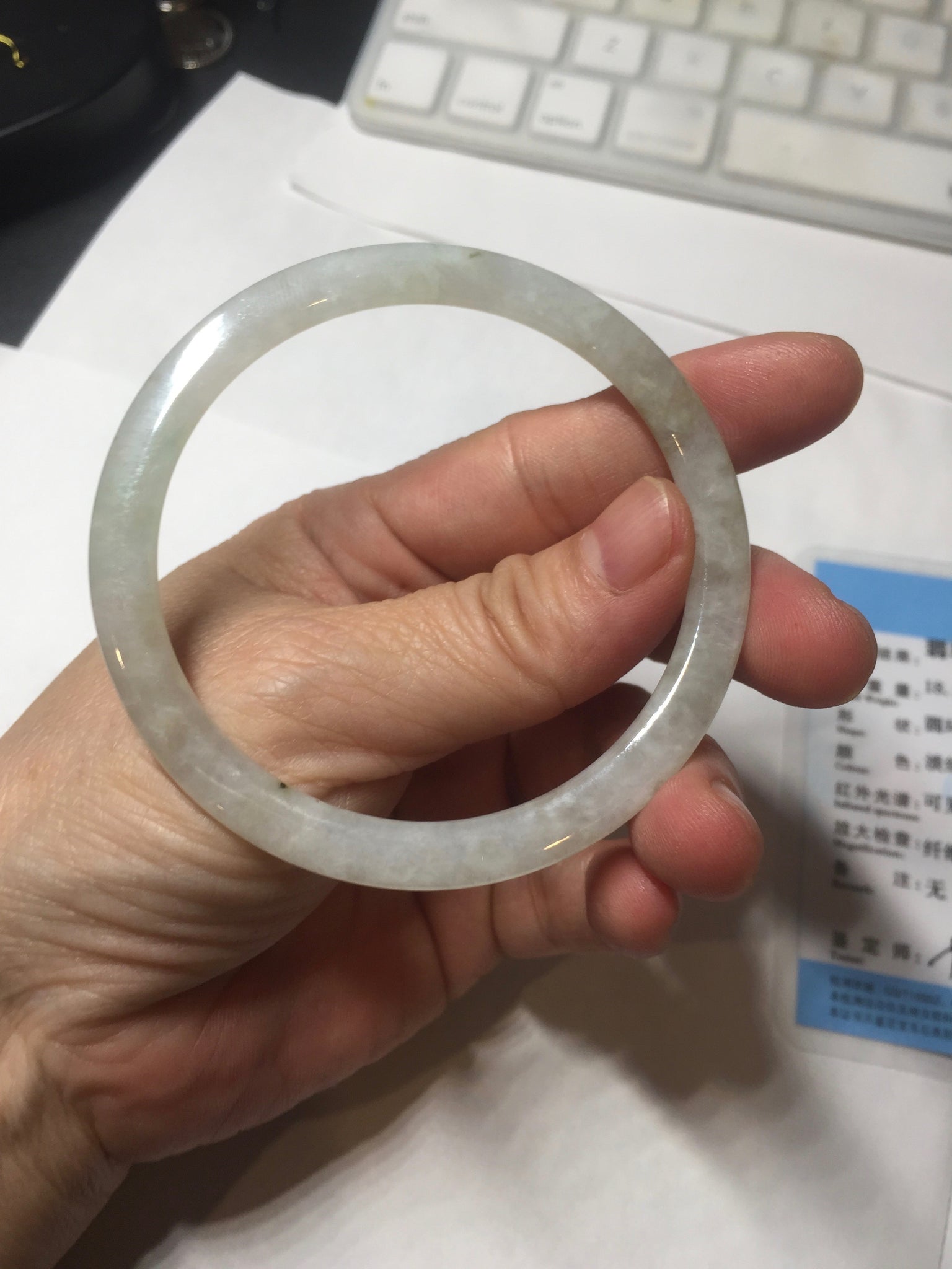 58.2mm certified 100% natural type A light green white flat jadeite bangle PD28-5815