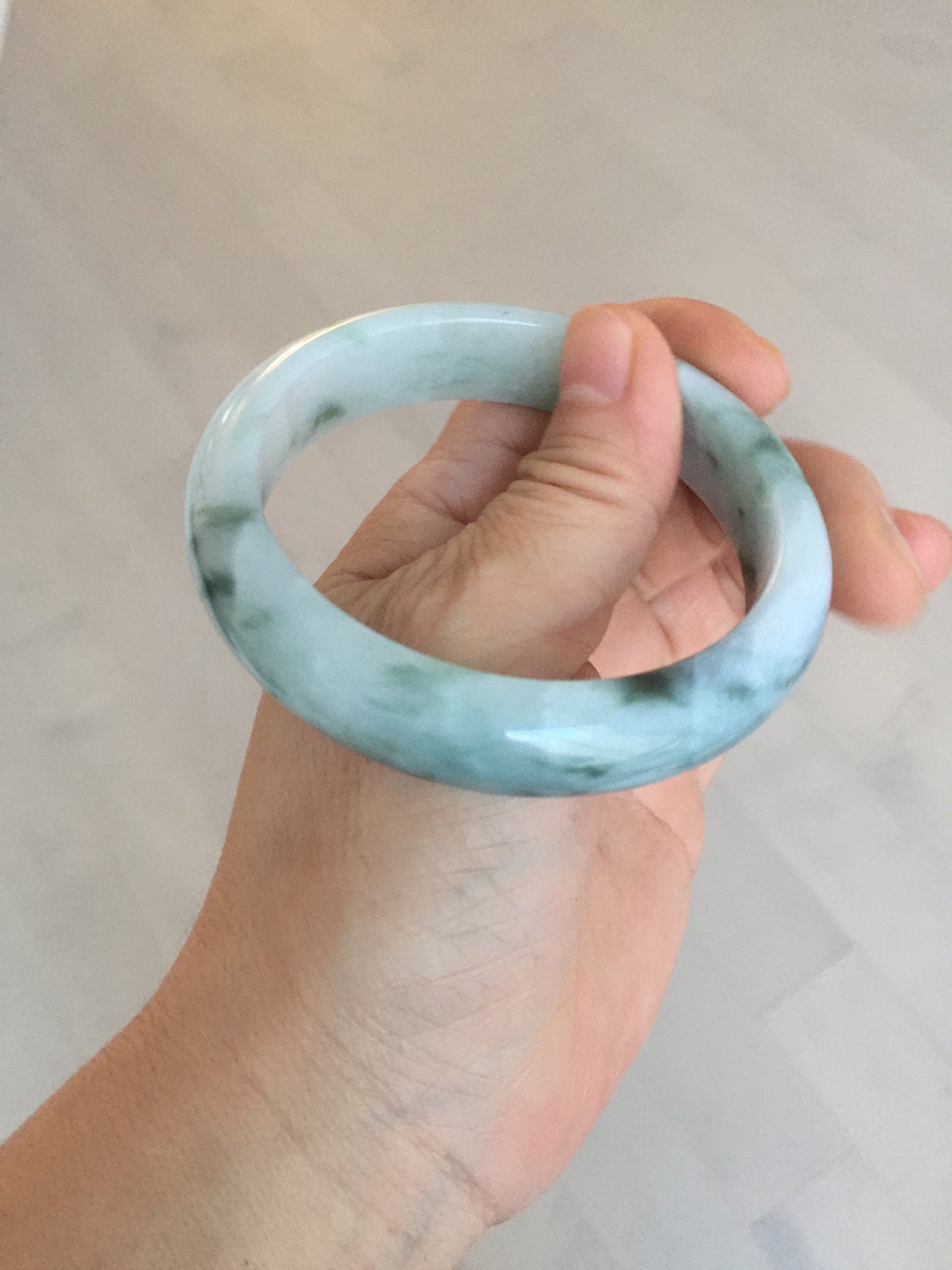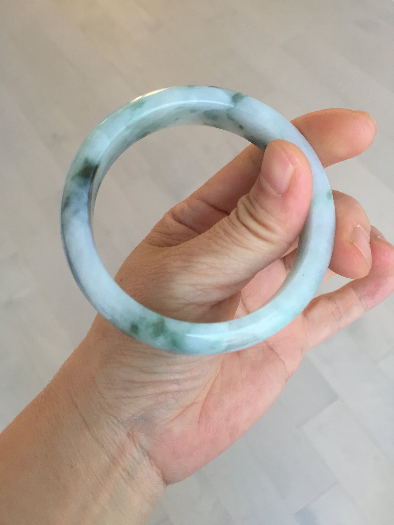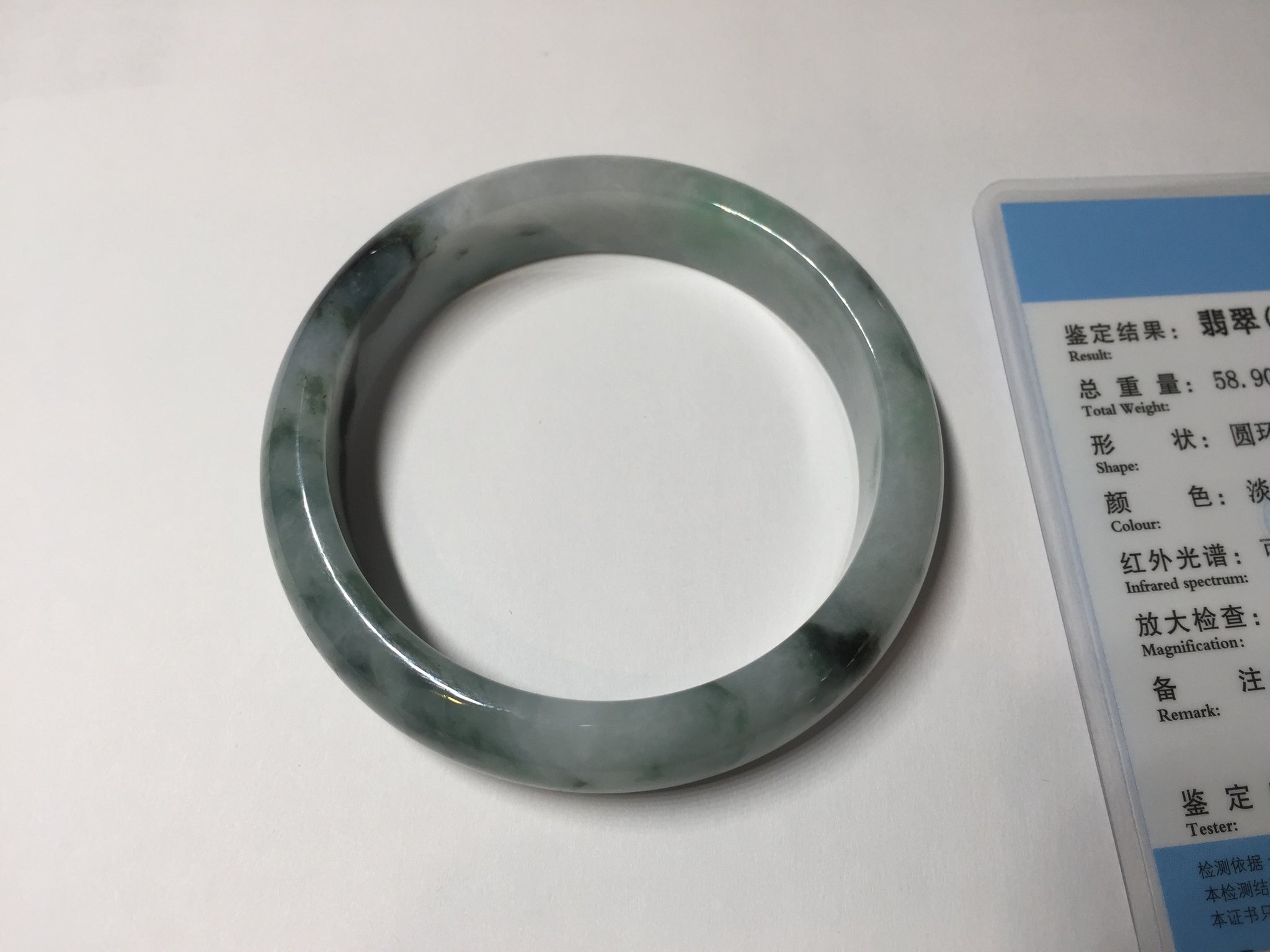 57mm Certified Type A 100% Natural sunny green/dark green Jadeite Jade bangle AM94-2724