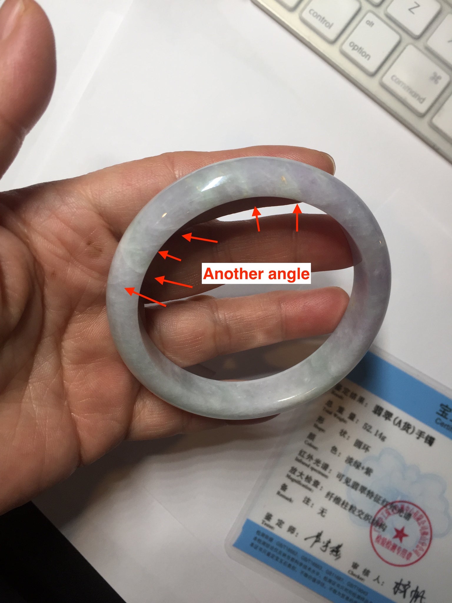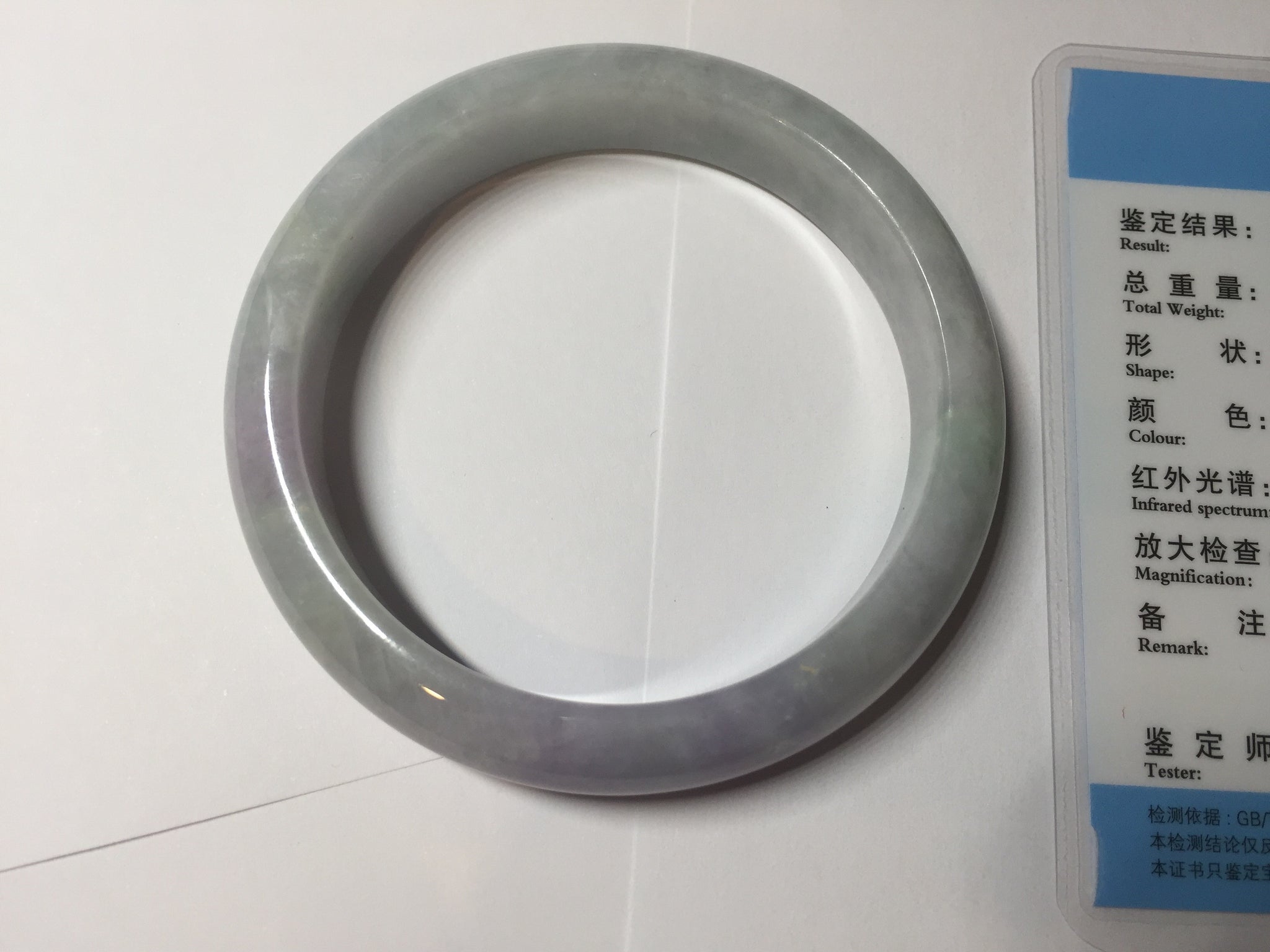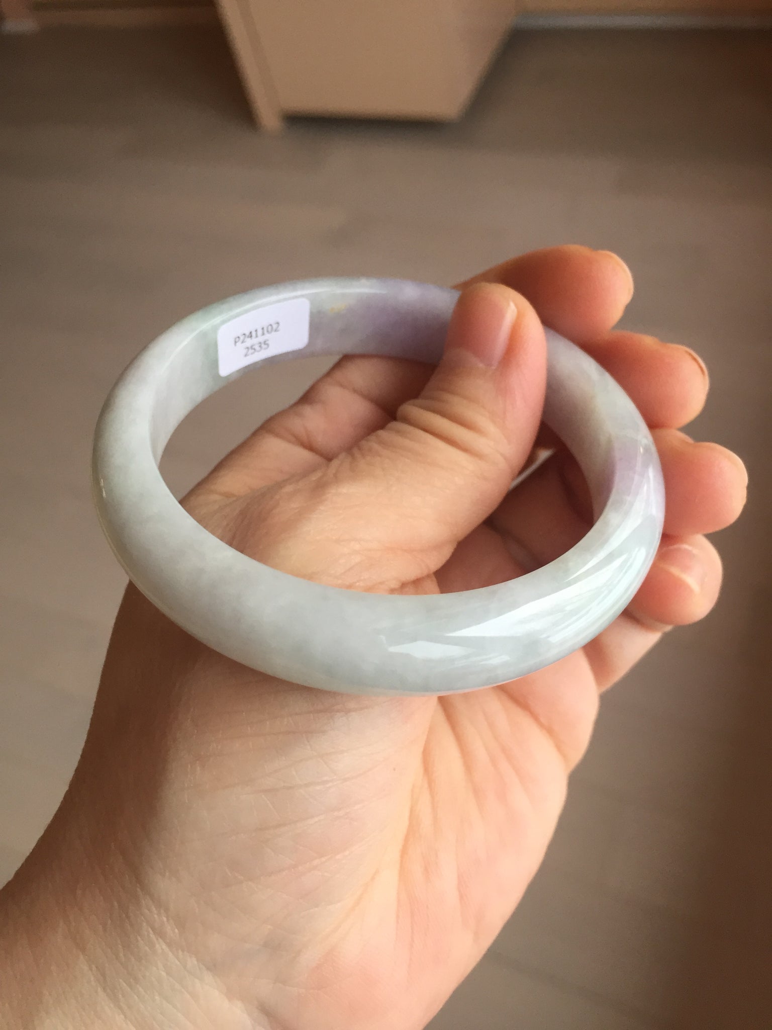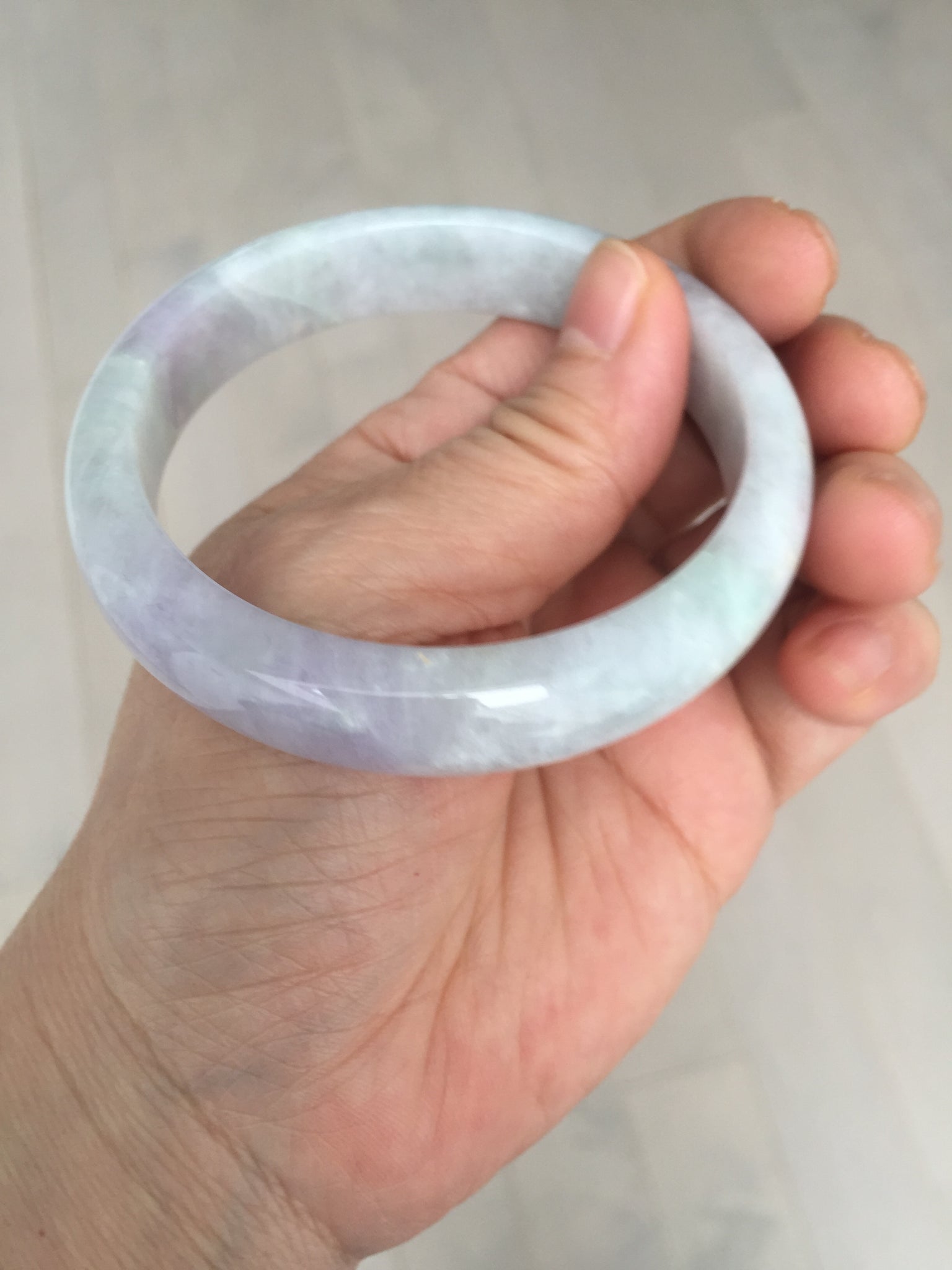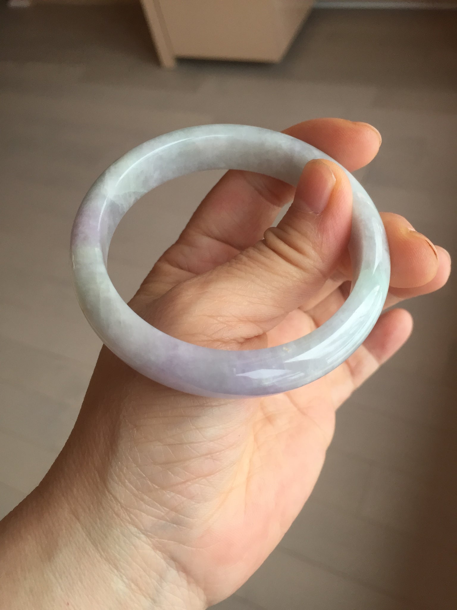 One surface crack. The bangle is solid(Guaranteed). Some hairlines, cotton lines, and small rough surface. (Photos may not show all). Not transparent. The purple is lighter than in the photos due to the purple color always being more camera-friendly.