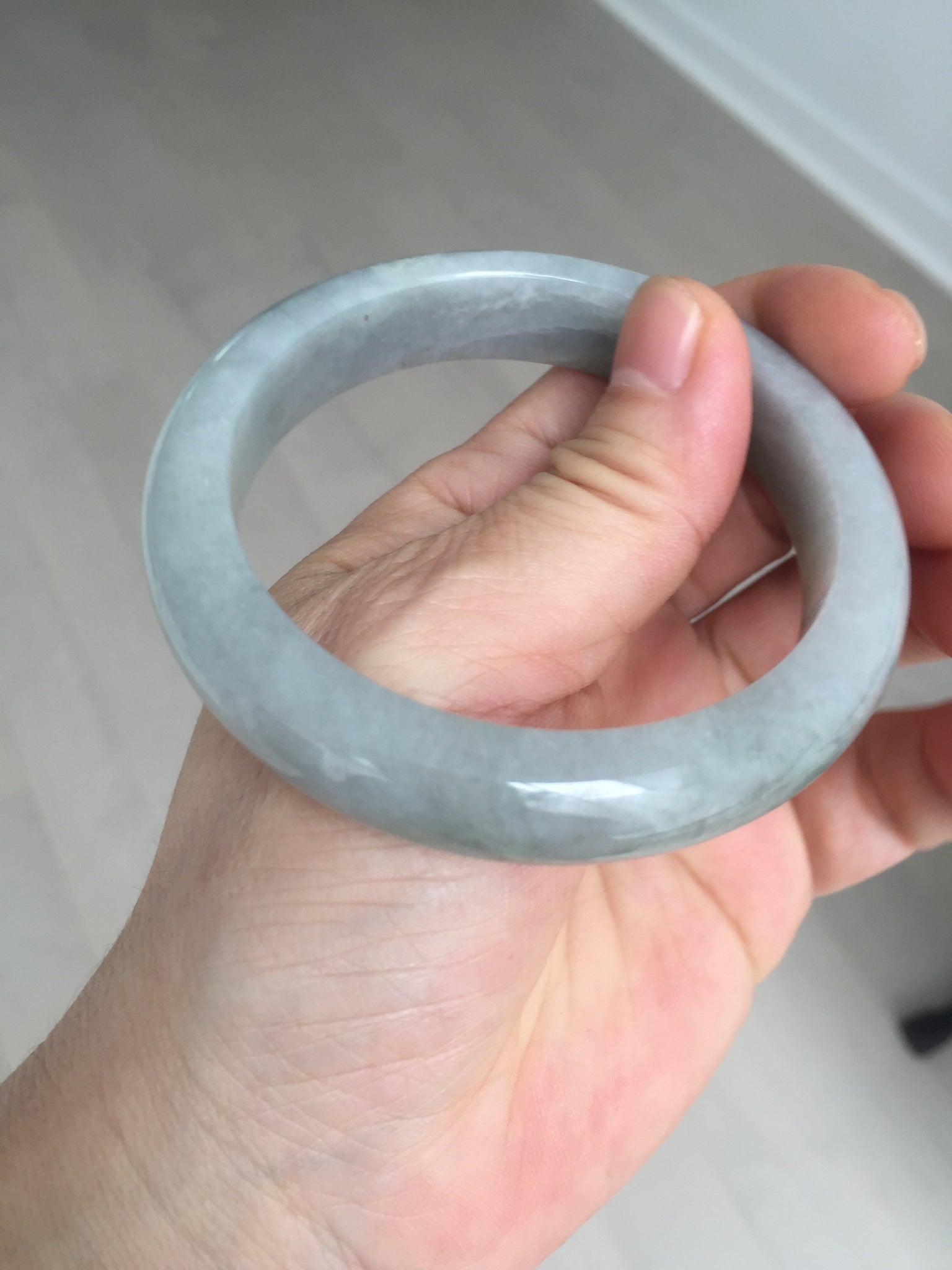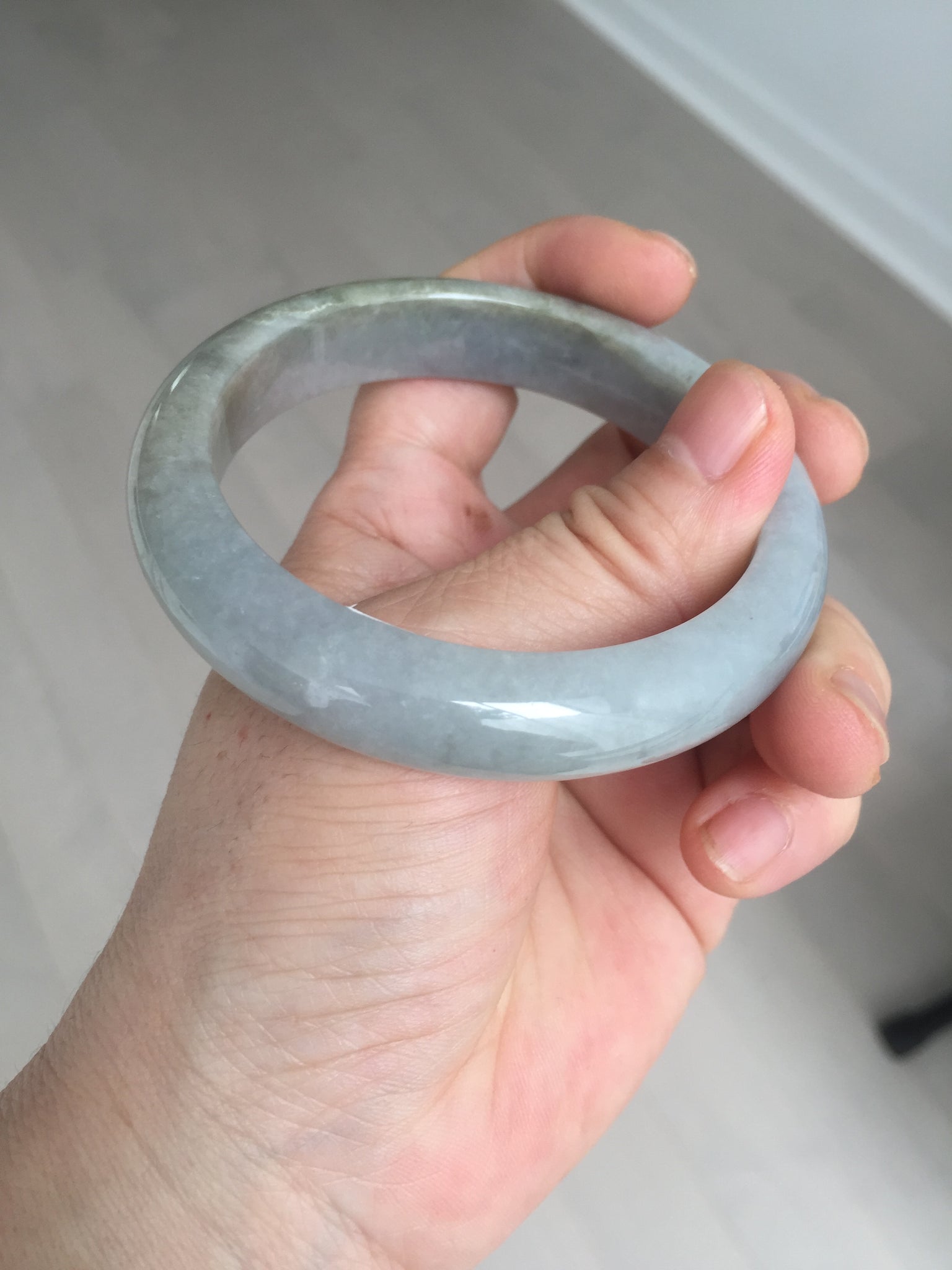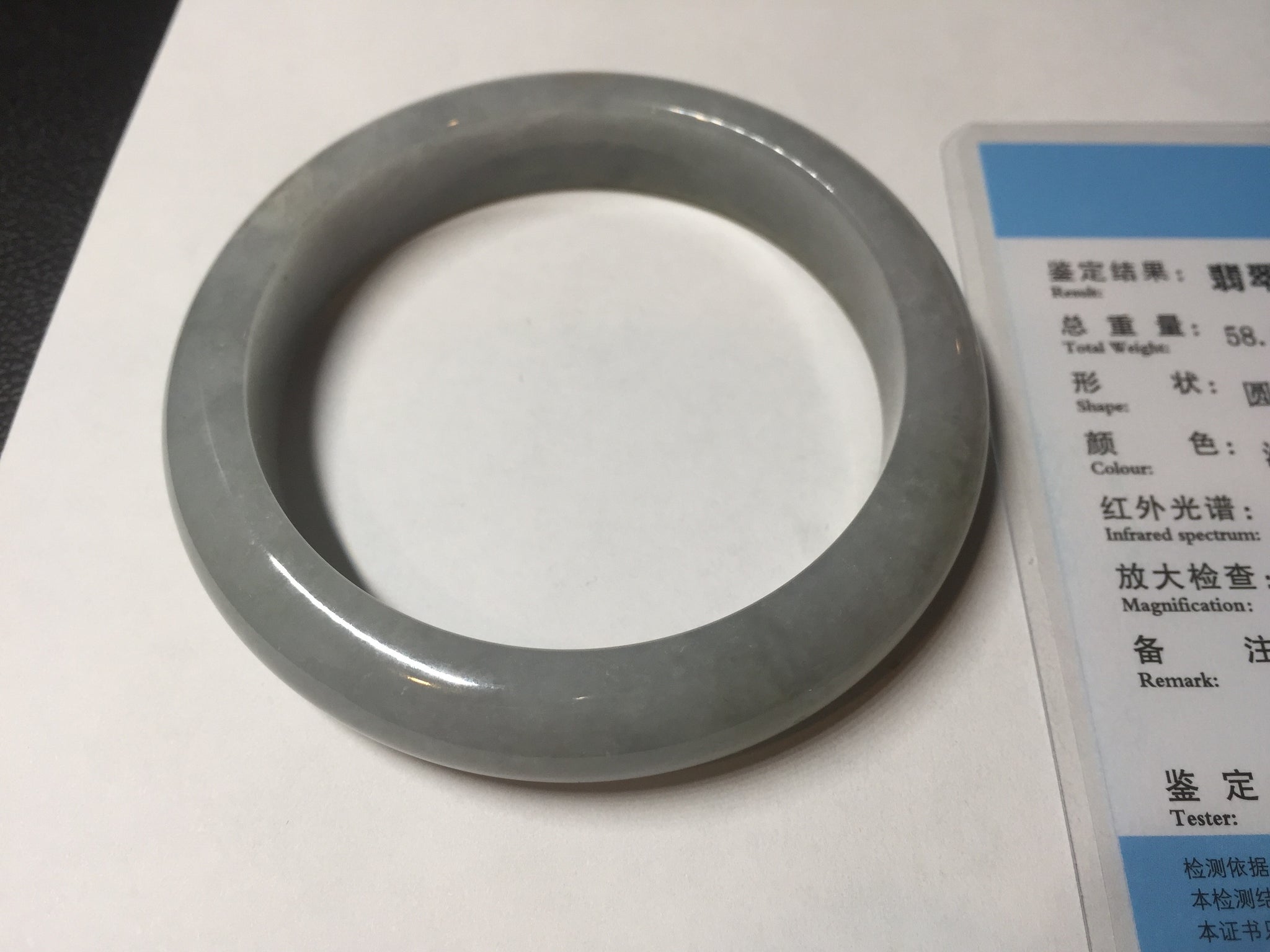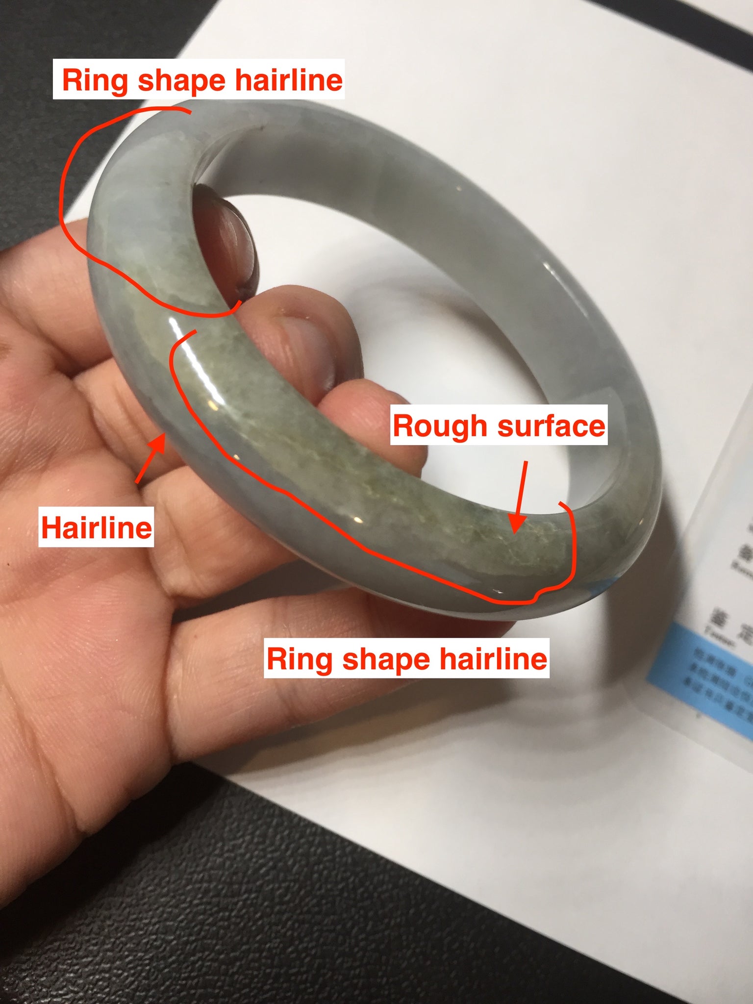 Some cracks and two of them are ring-shaped. The bangle is still solid (refund guaranteed!). Some hairlines/ cotton lines, small rough surfaces. it has some gray-black color.