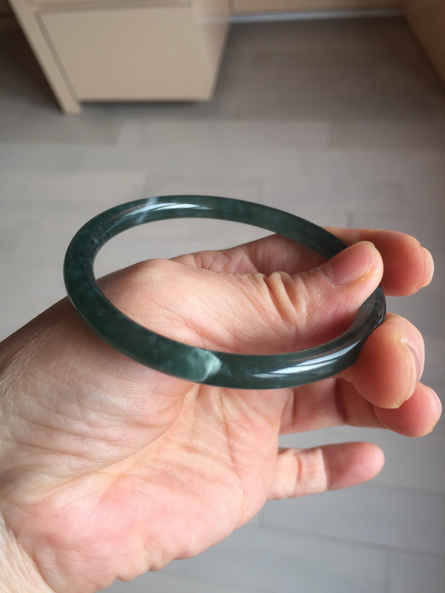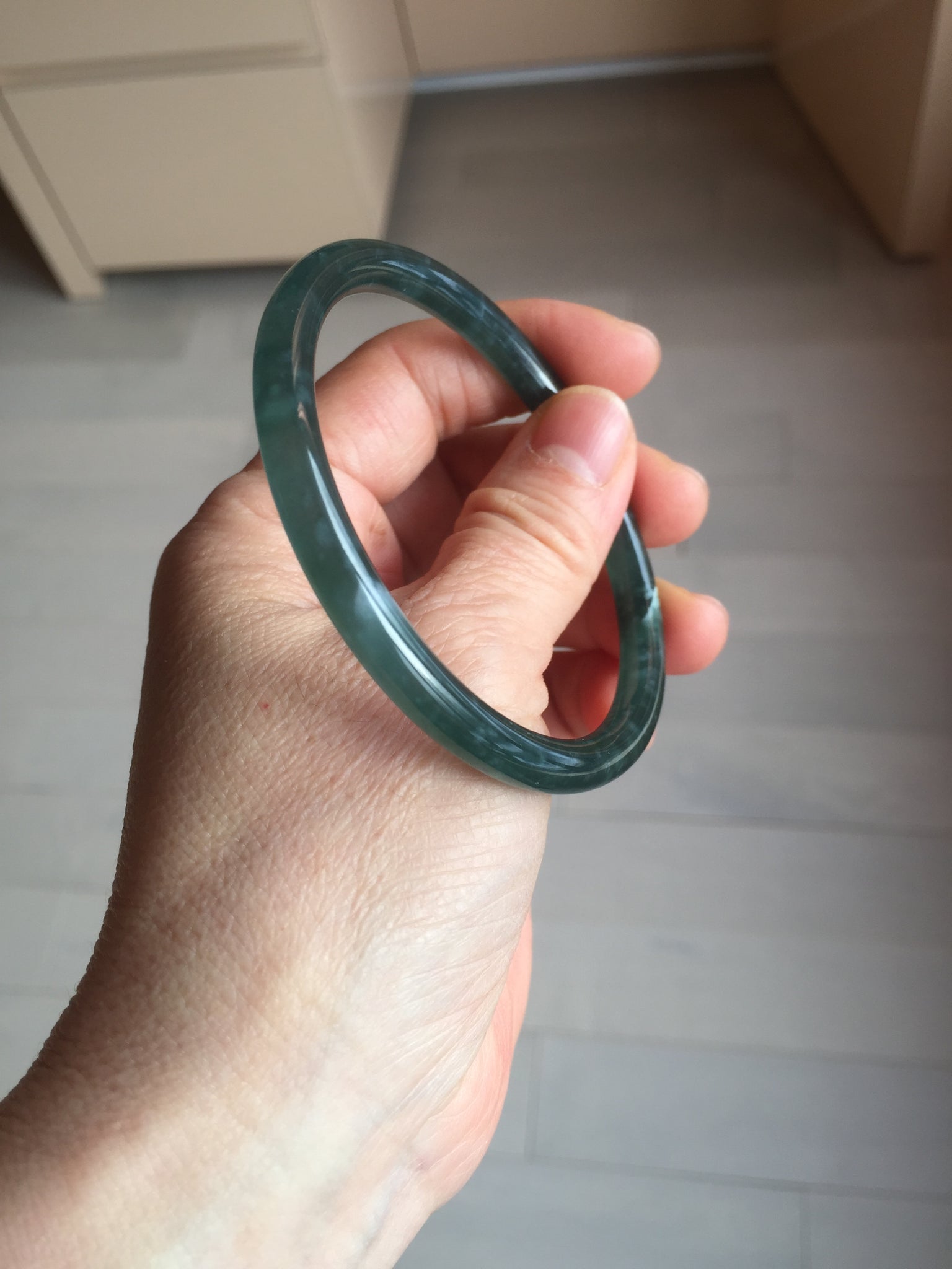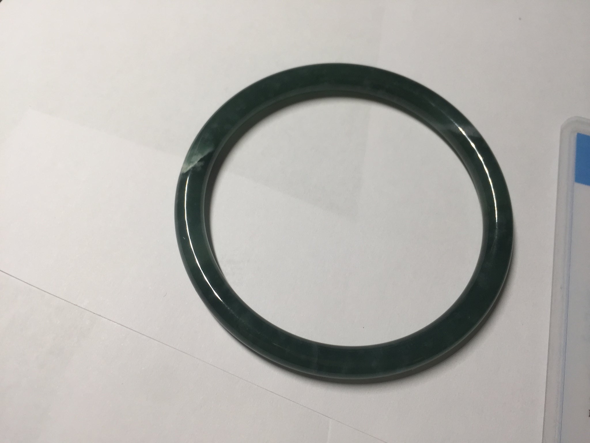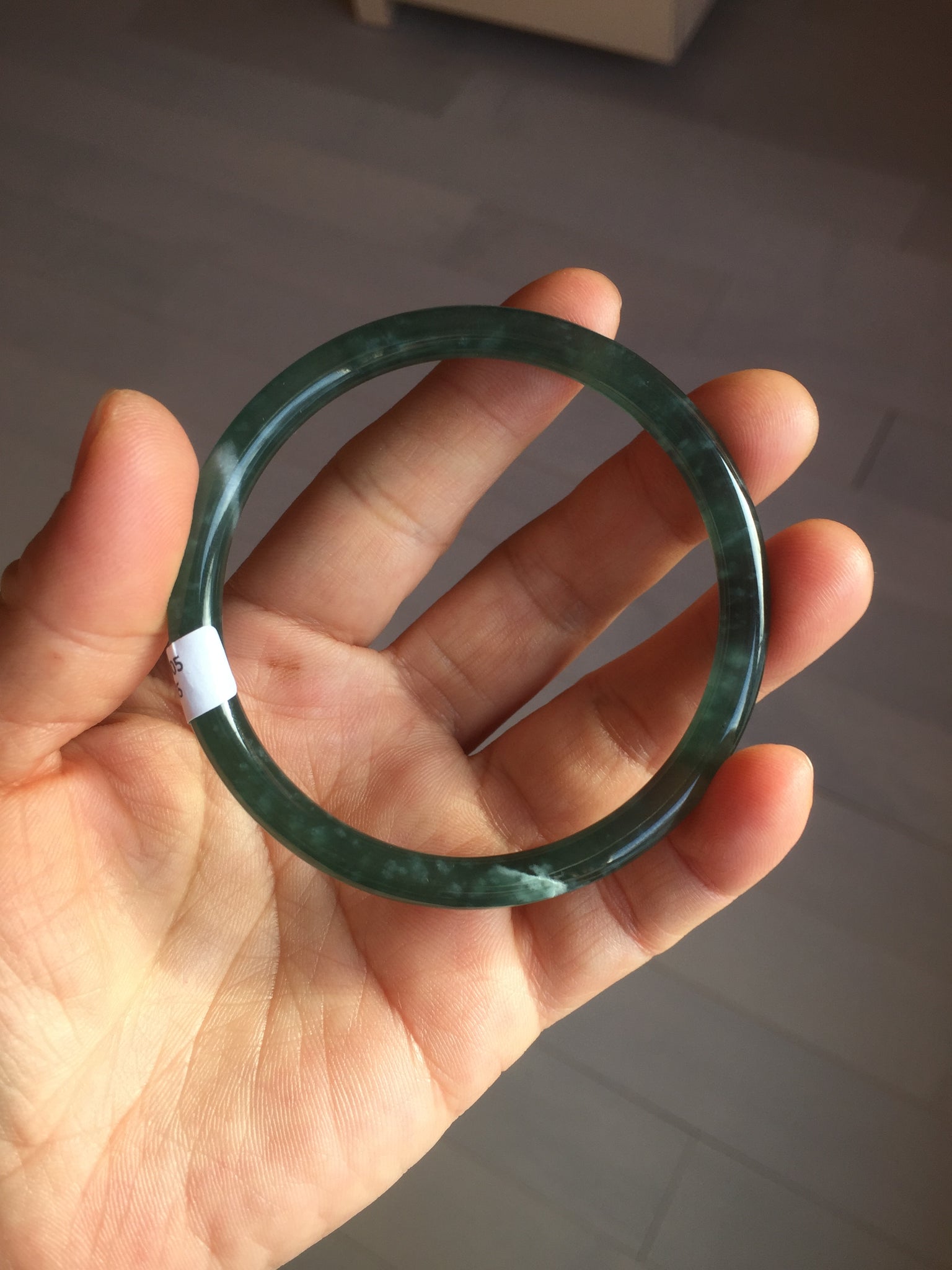 3 cracks. One crack is deep. No hairline. Some cotton lines, areas, and spots. The bangle has some gray/ black color.