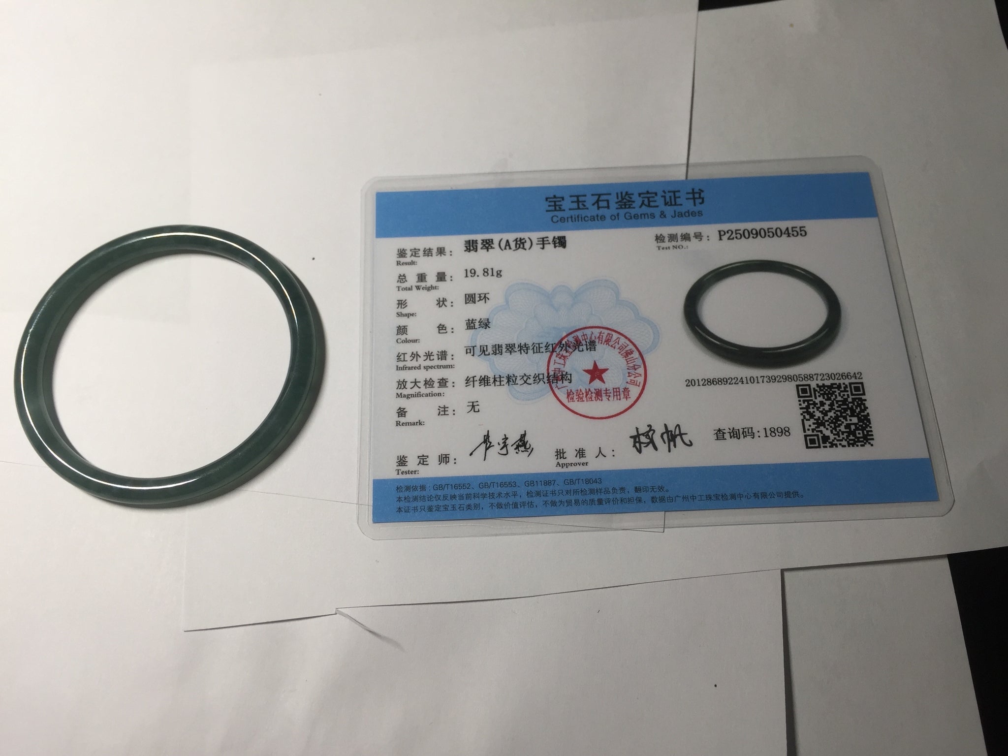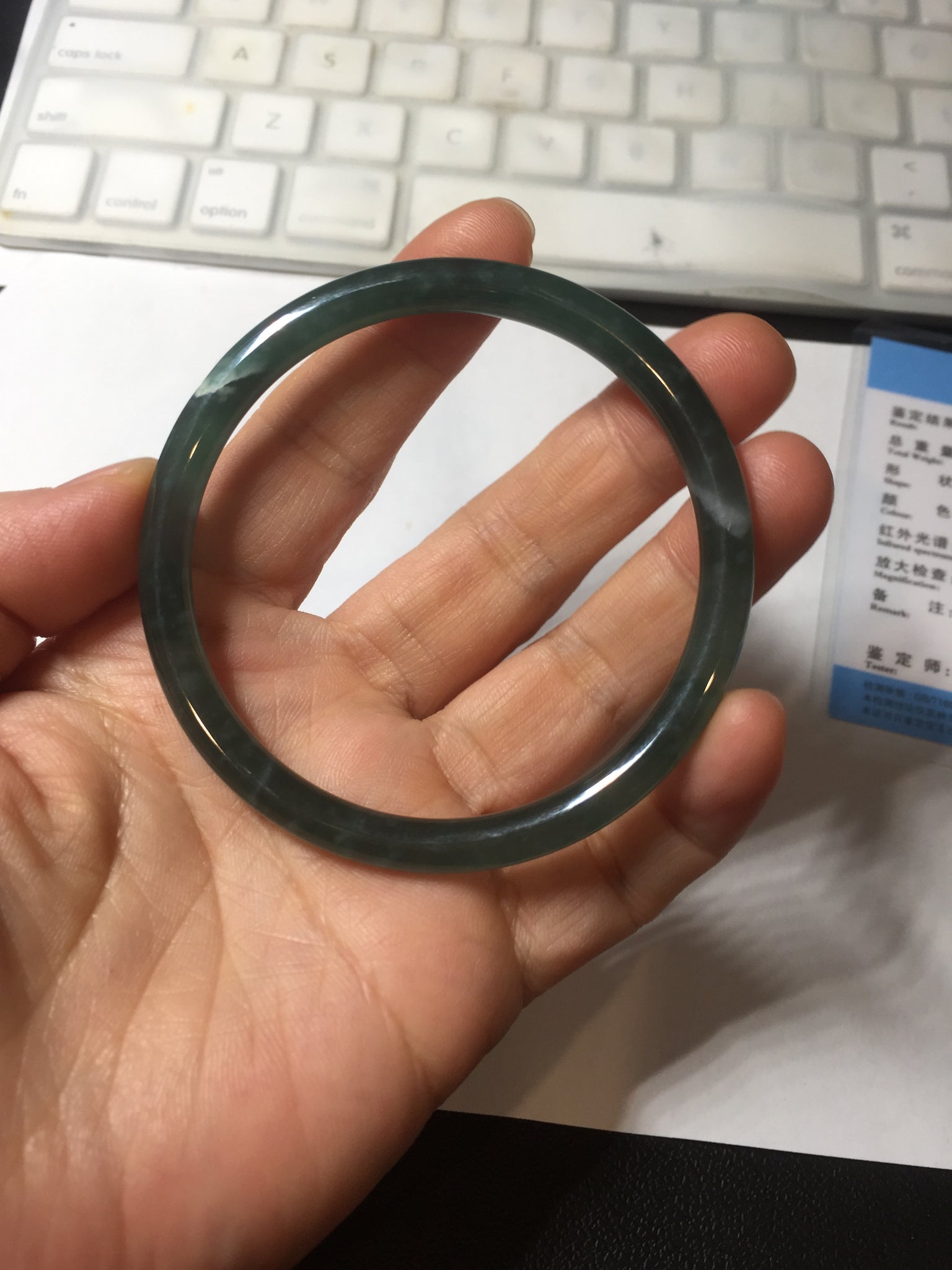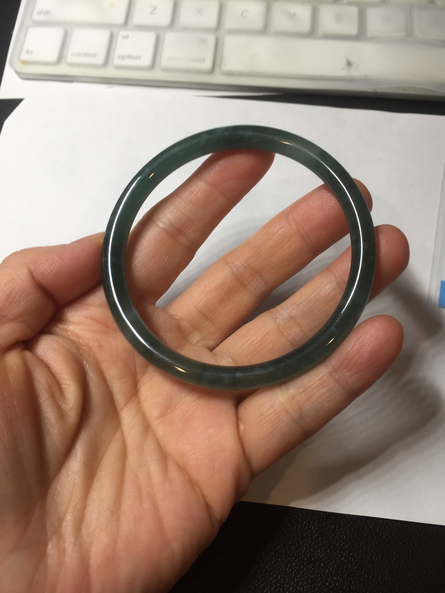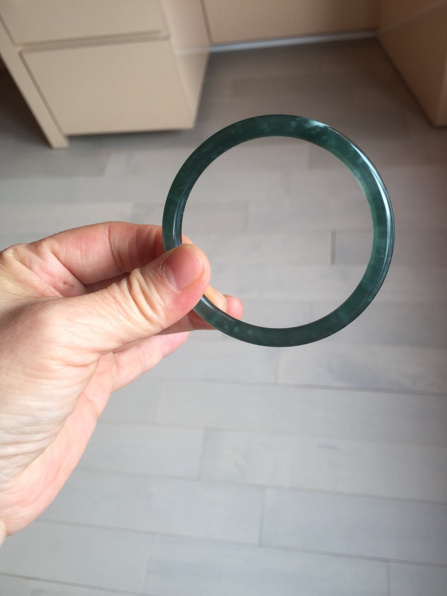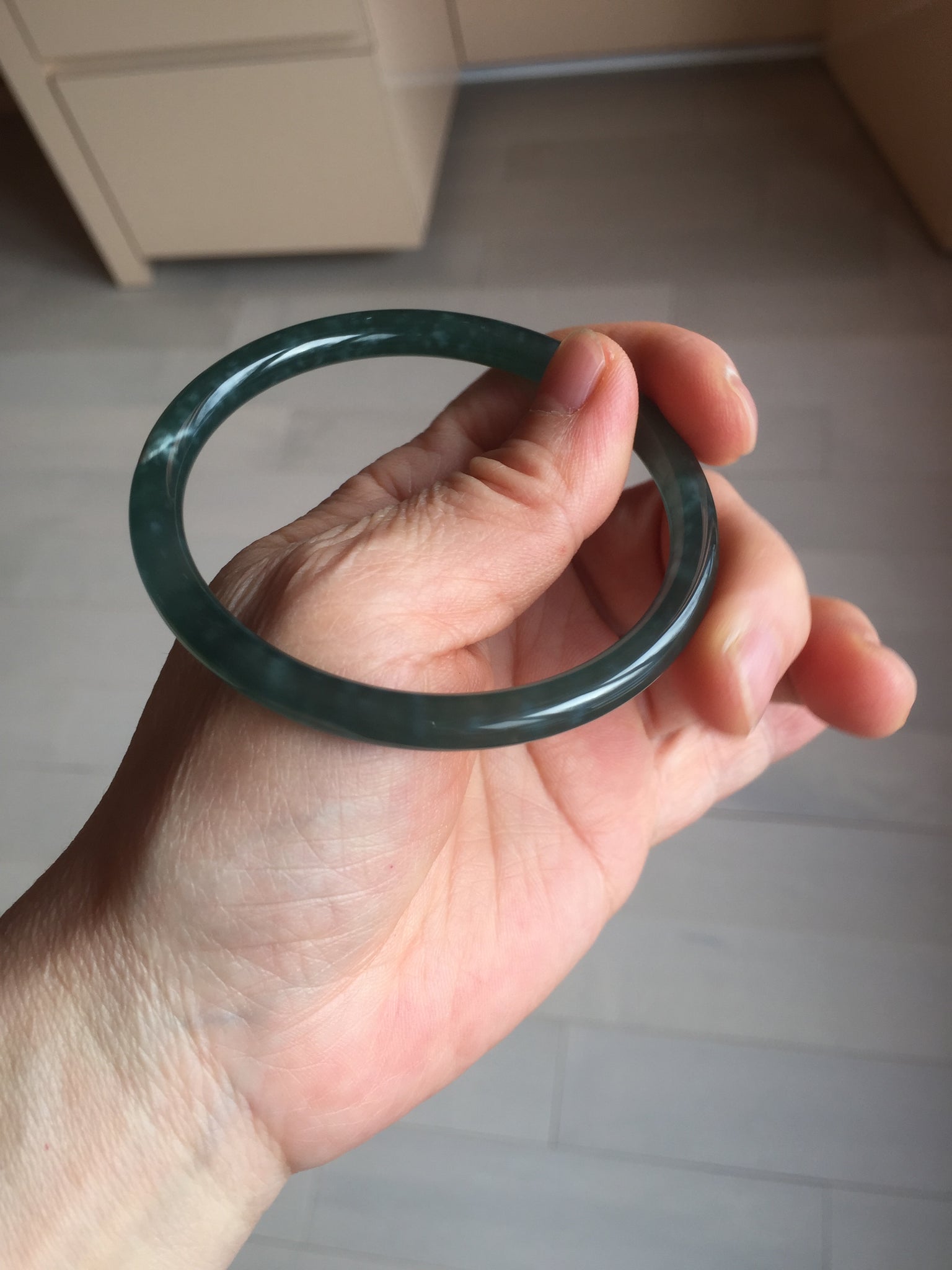 3 cracks. One crack is deep. No hairline. Some cotton lines, areas, and spots. The bangle has some gray/ black color.