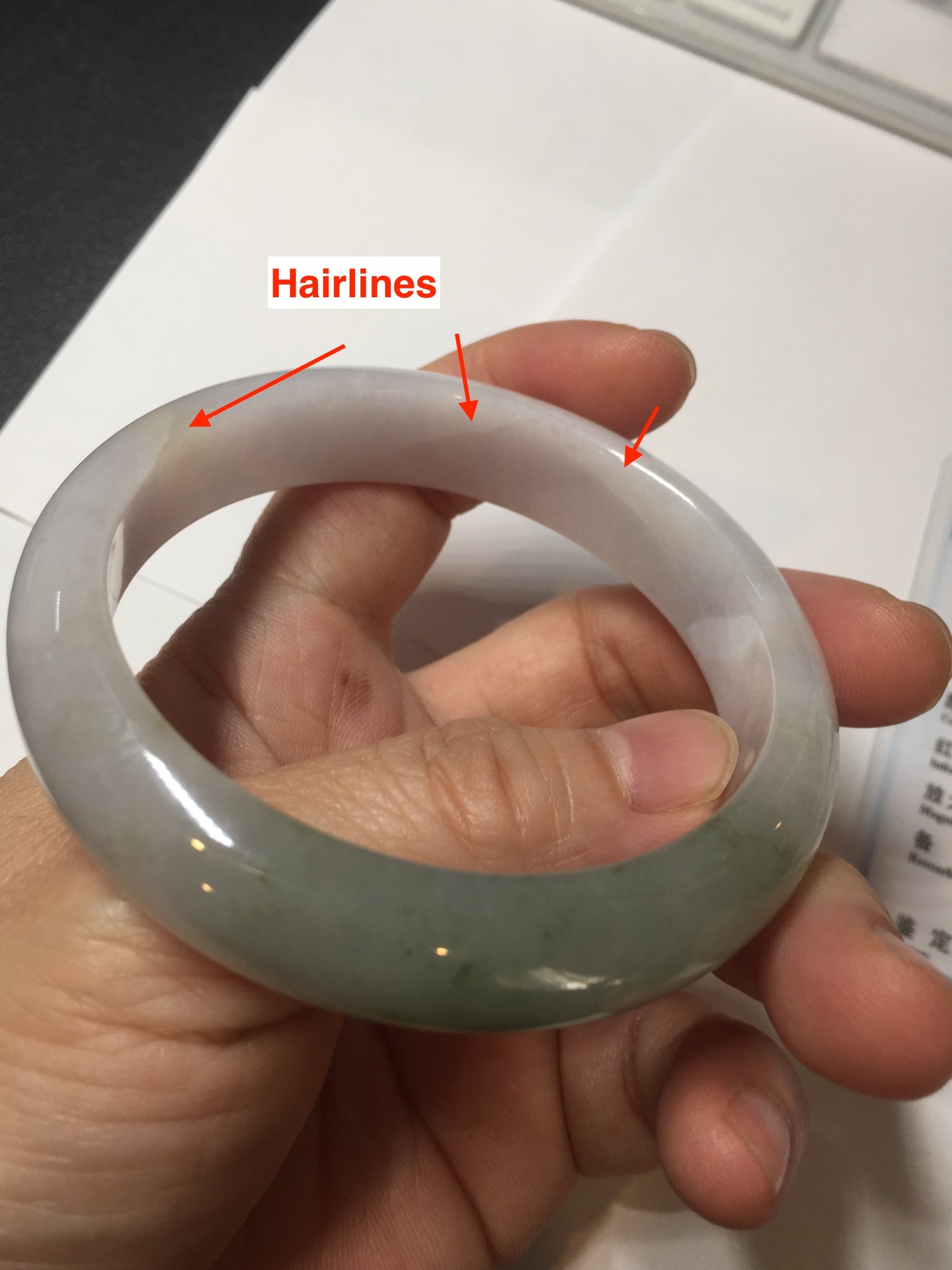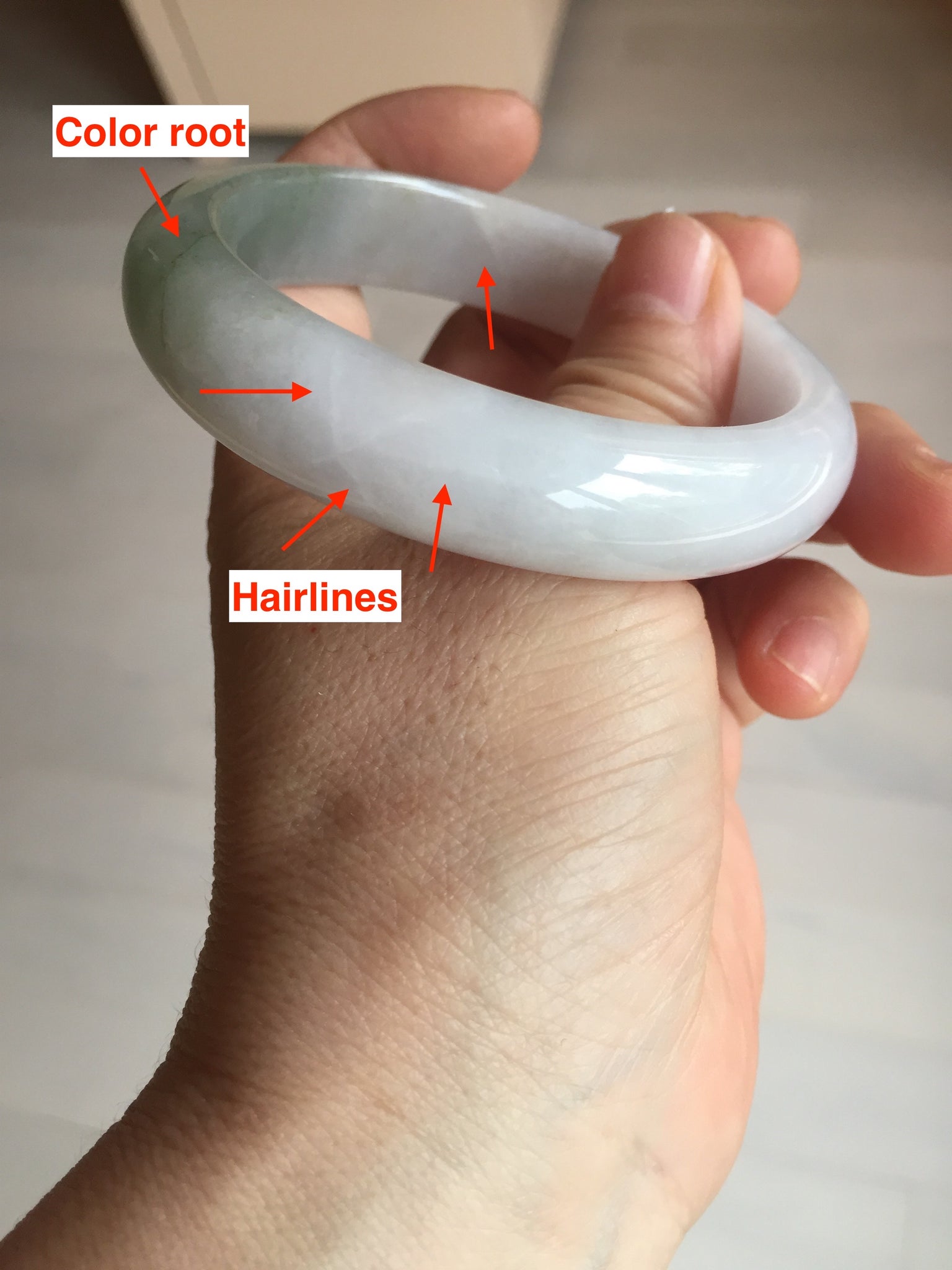 Jade root, or hairline root, and are not considered cracks. A crack is considered to be a crack you can feel that runs up and down the width of the bangle.