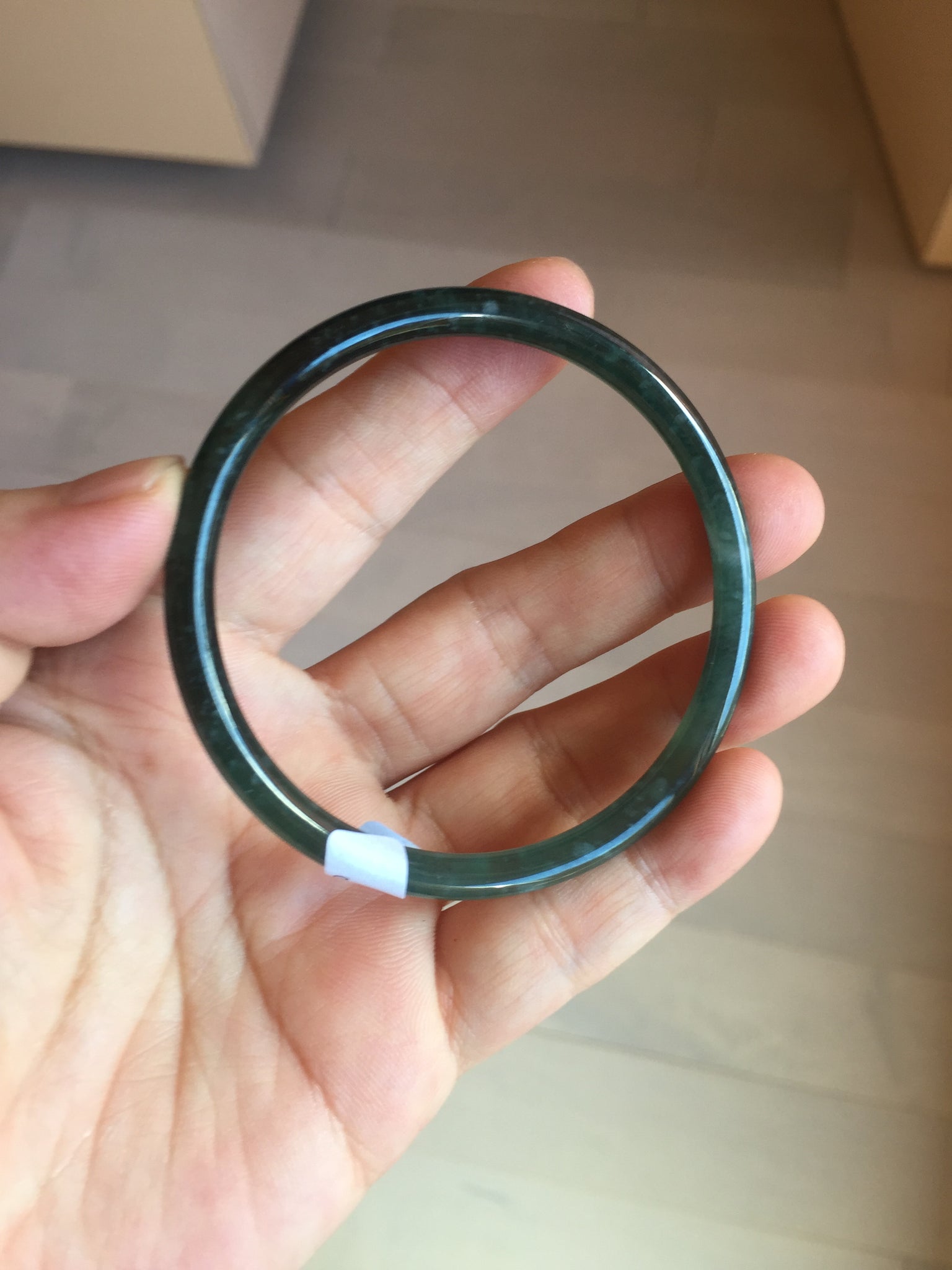 57mm Certified Type A 100% Natural icy watery light green/blue/gray with flying snow Guatemala slim round cut Jadeite bangle BG197-2487