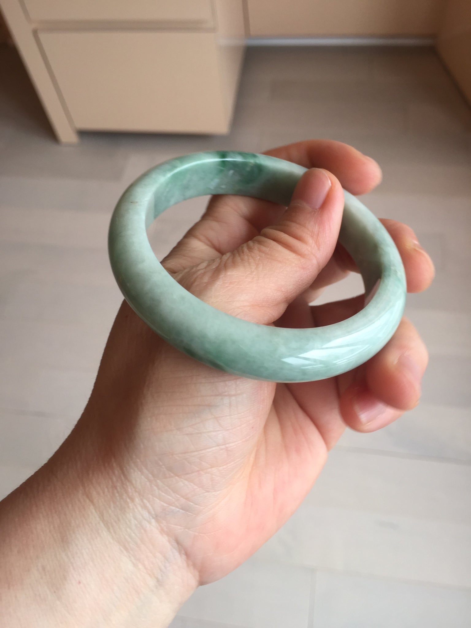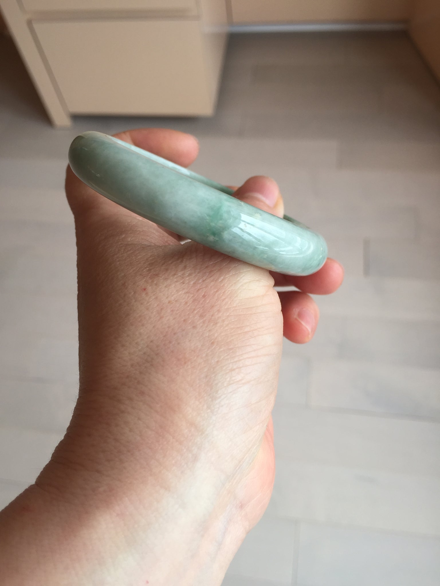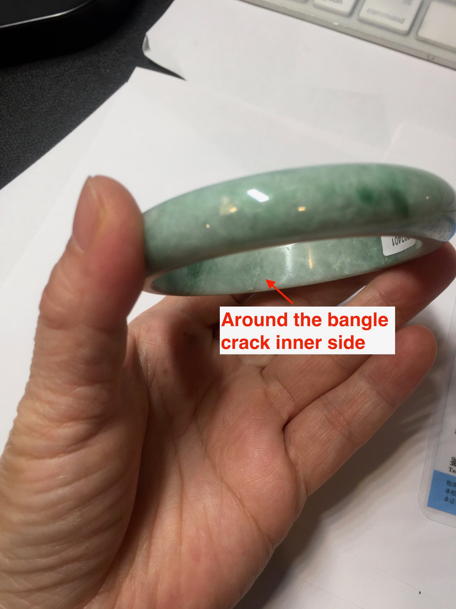 Some cracks or surface scratches. One of them is an around the bangle crack. But the inner side of the bangle is connected. The bangle is solid(Guaranteed!).  Some hairlines, small yellow rough surfaces, cotton lines, cotton spots, and cotton areas.  No transparent. Not watery.
