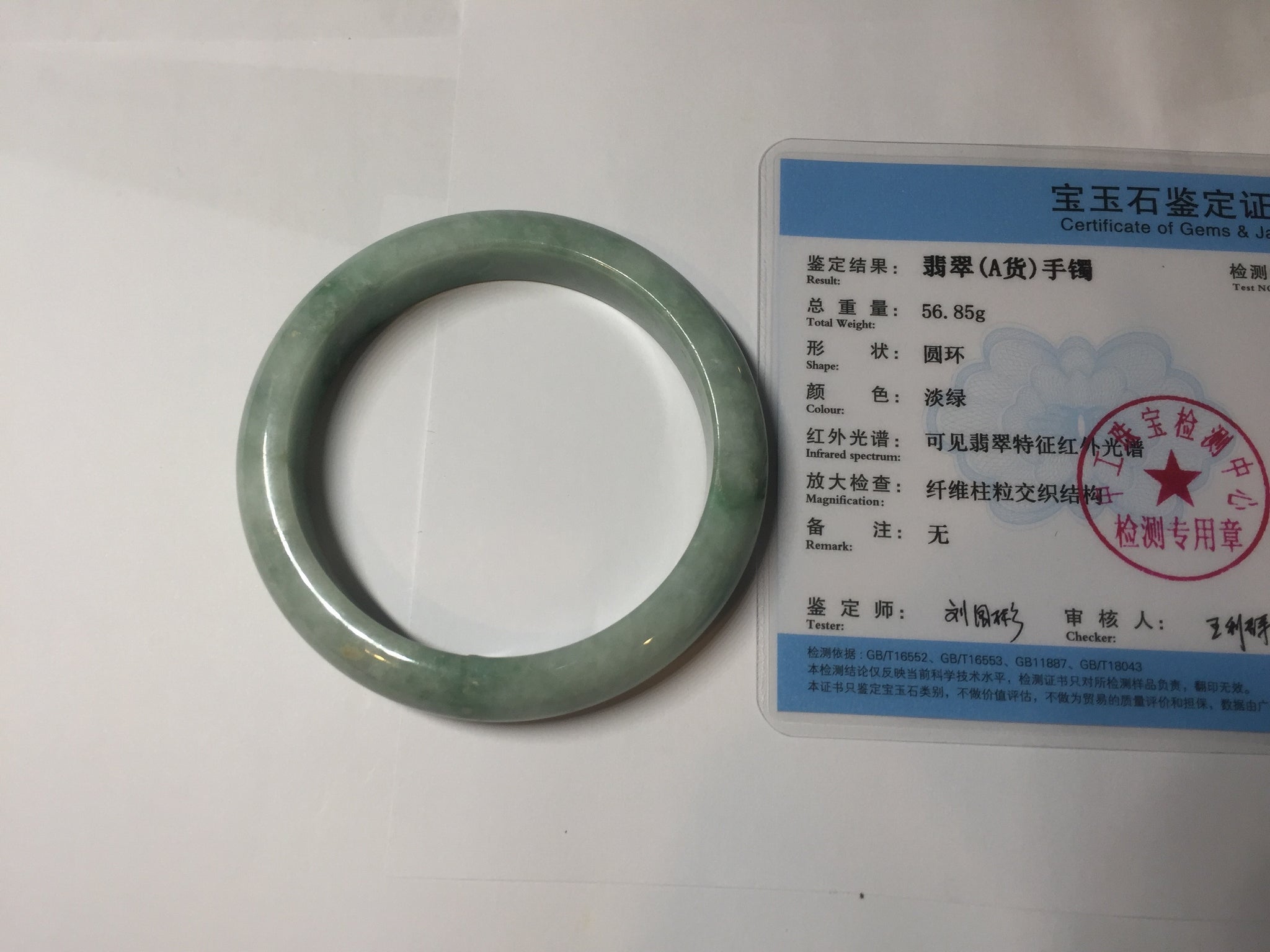 57.3mm Certified Type A 100% Natural sunny green yellow Jadeite Jade bangle BS30-4414