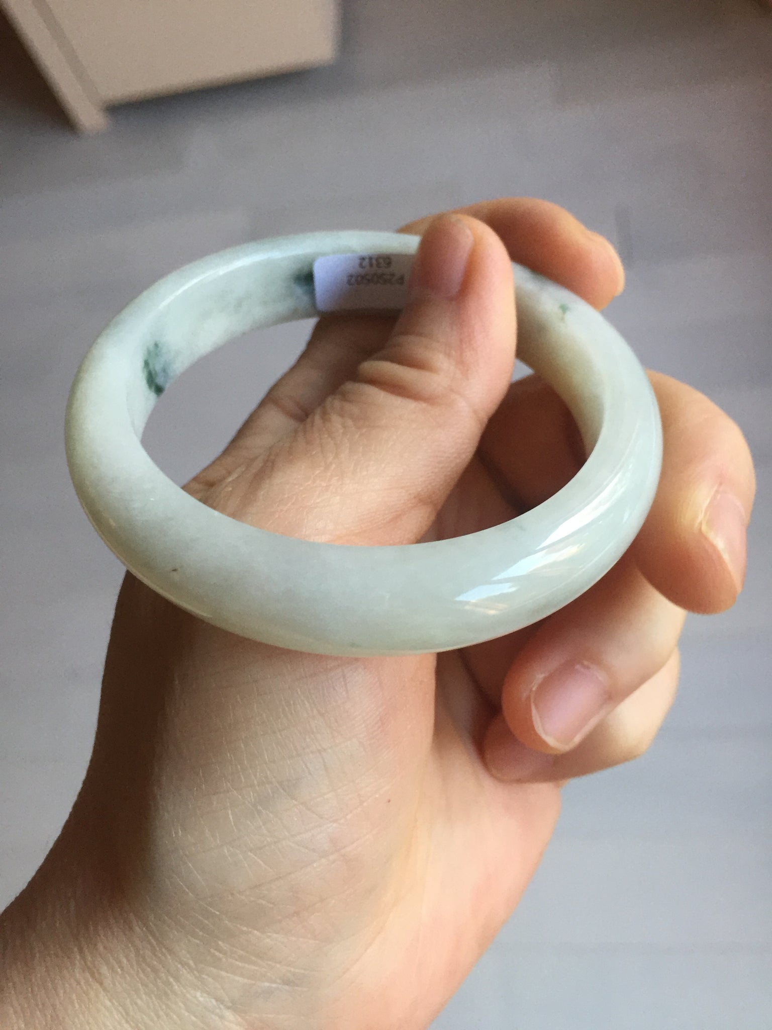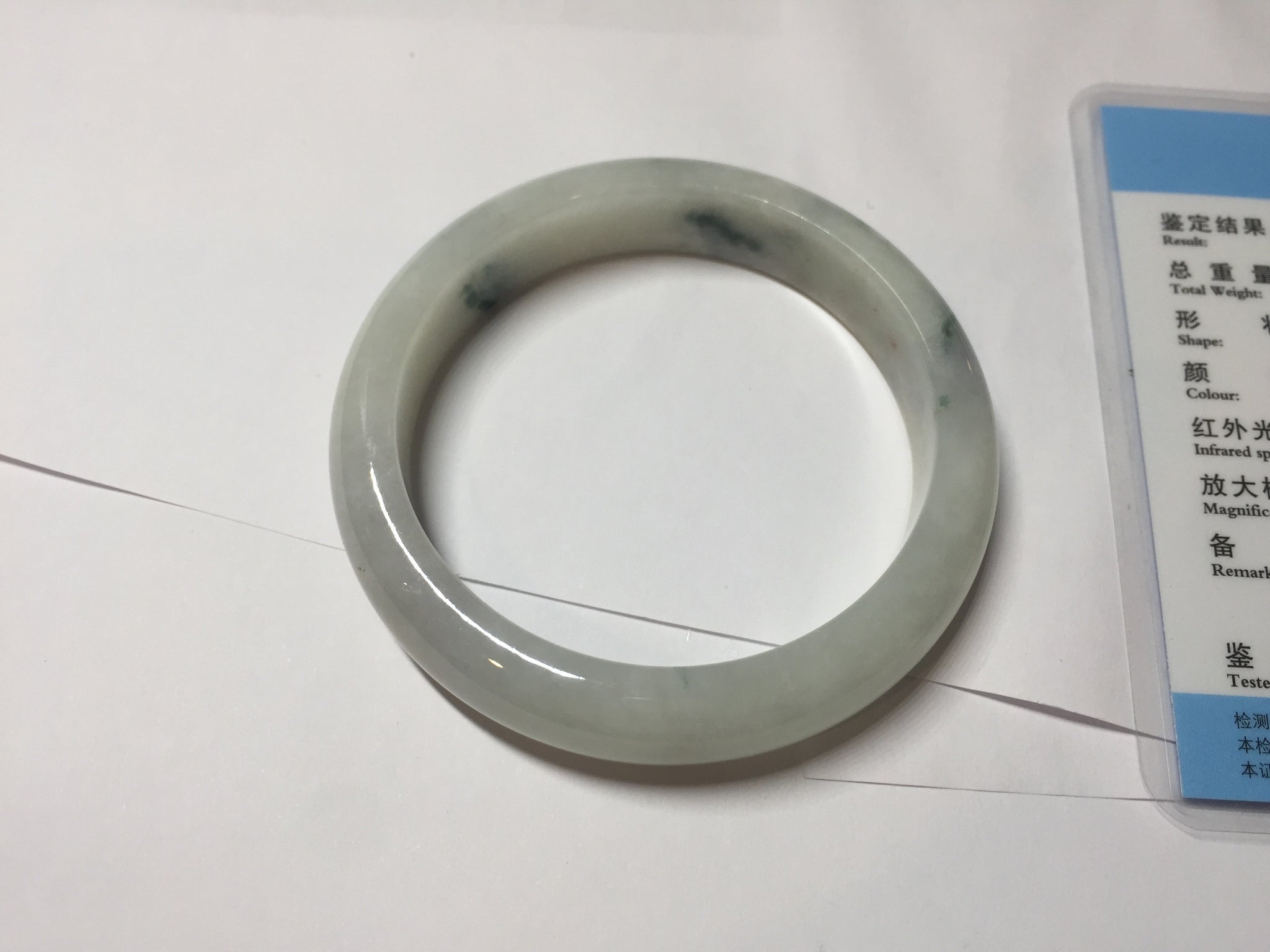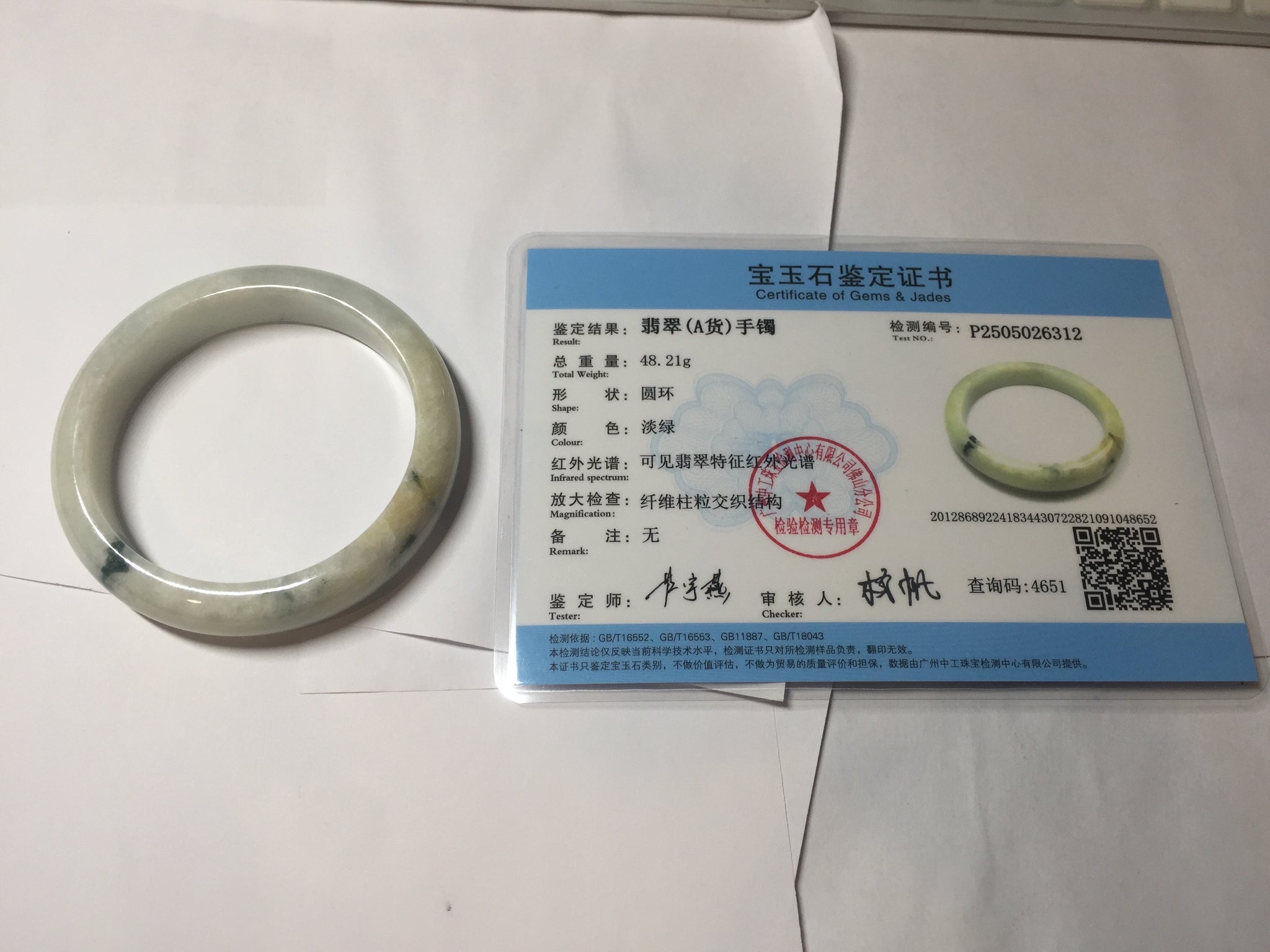Some cracks. One is an around the bangle. The bangle is solid. Yellow rough surface. Some color roots, cotton lines, cotton areas, and cotton spots. porcelain background. Not transparent.