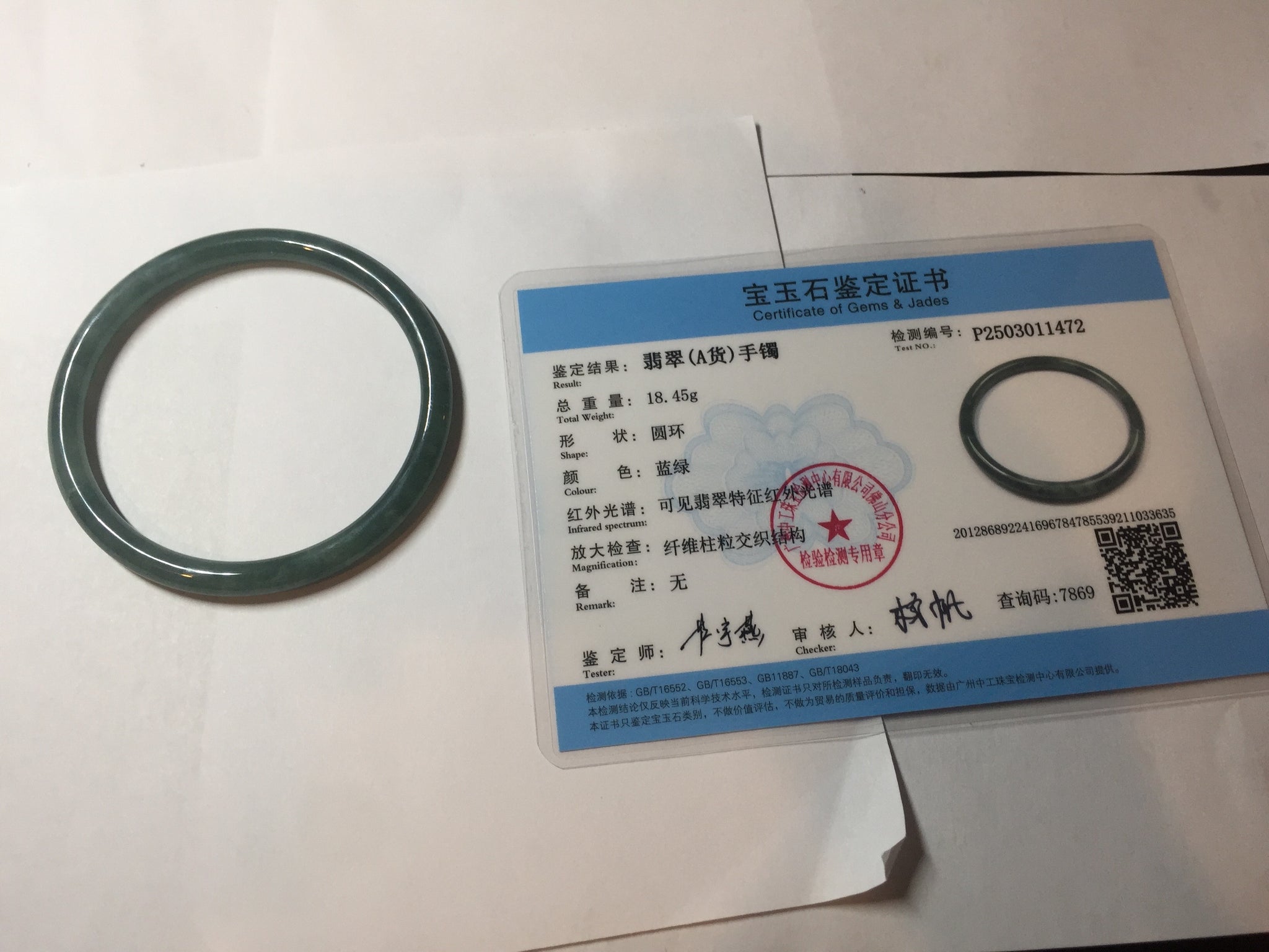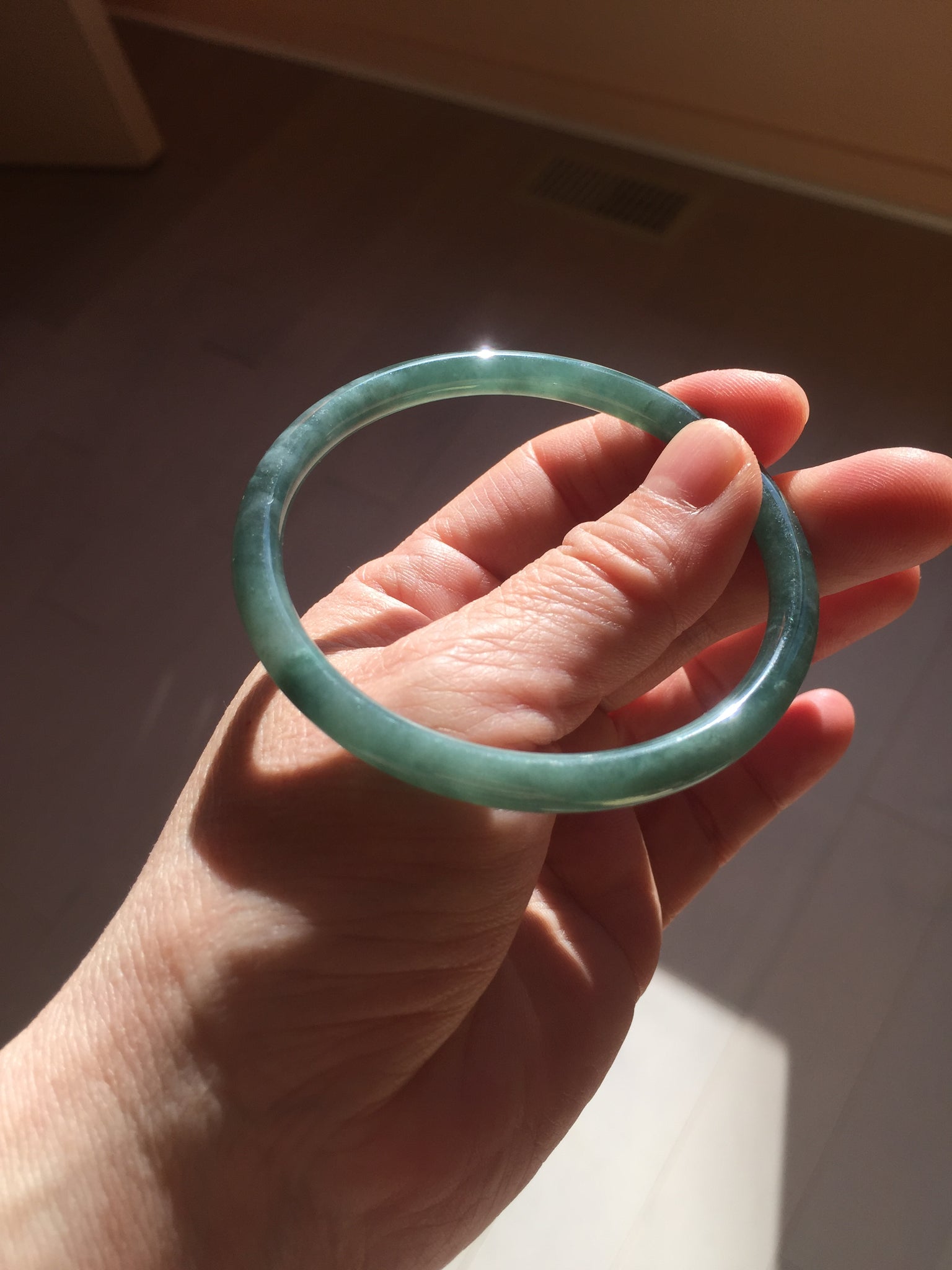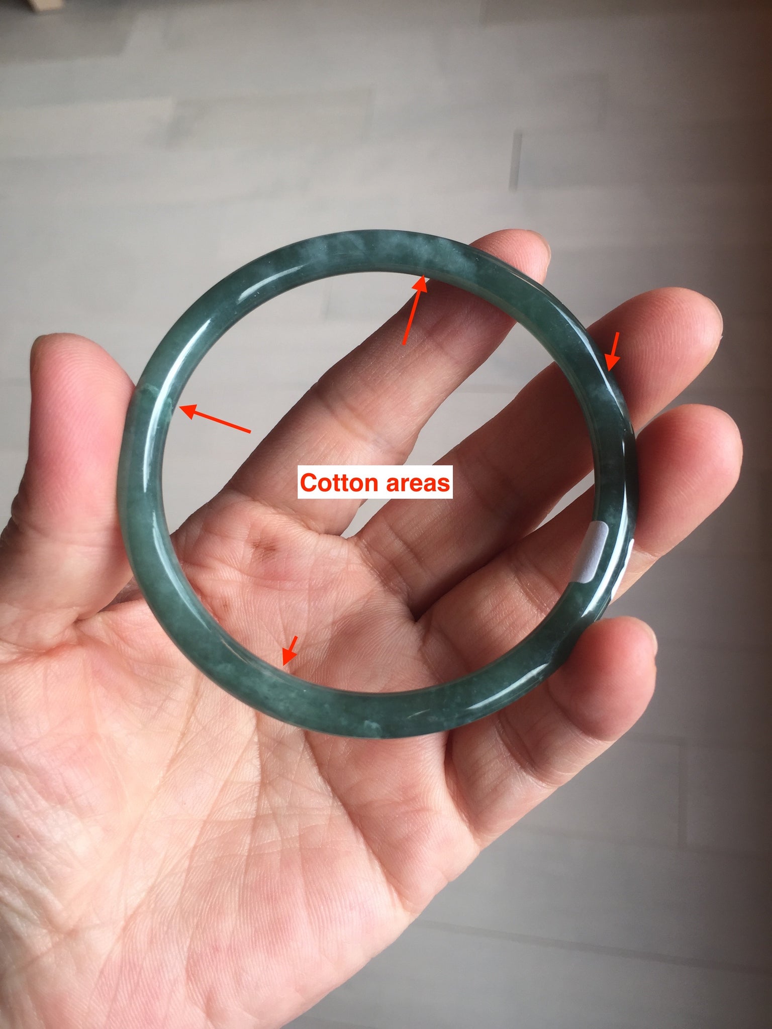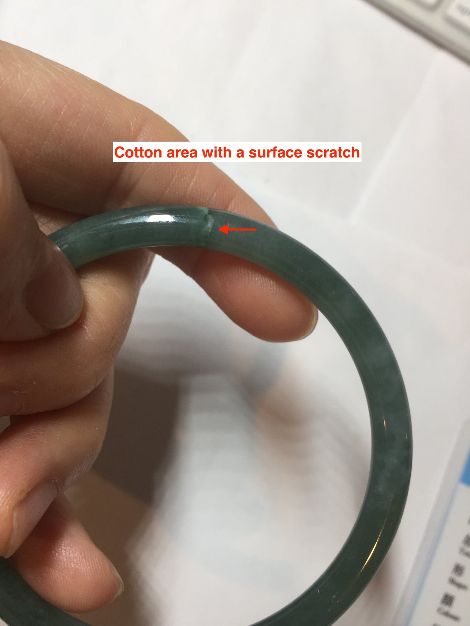 One surface scratch. Rough surface or rough spot. Some cotton lines and cotton areas. Not transparent. The bangle has some gray/ black color.
