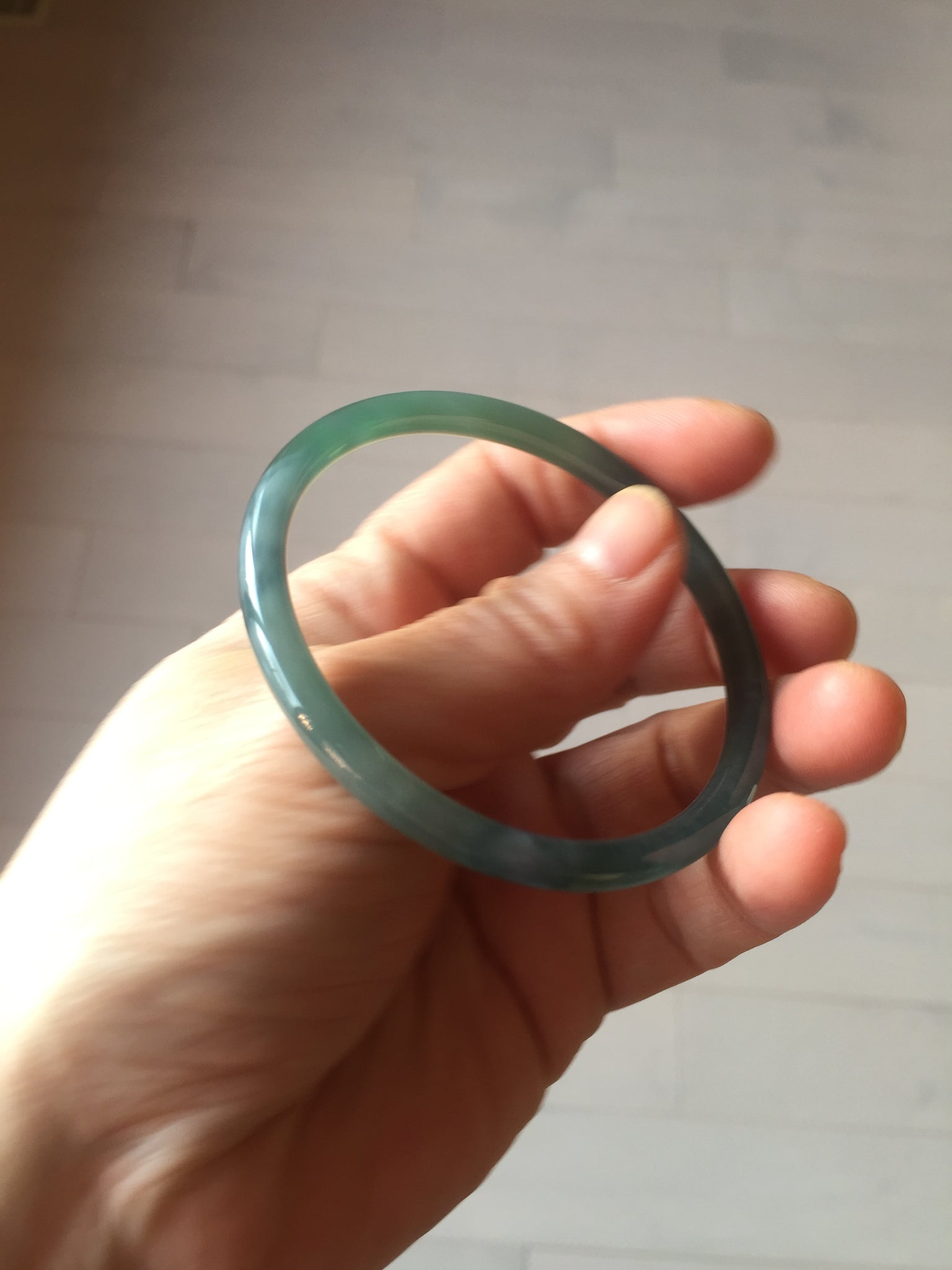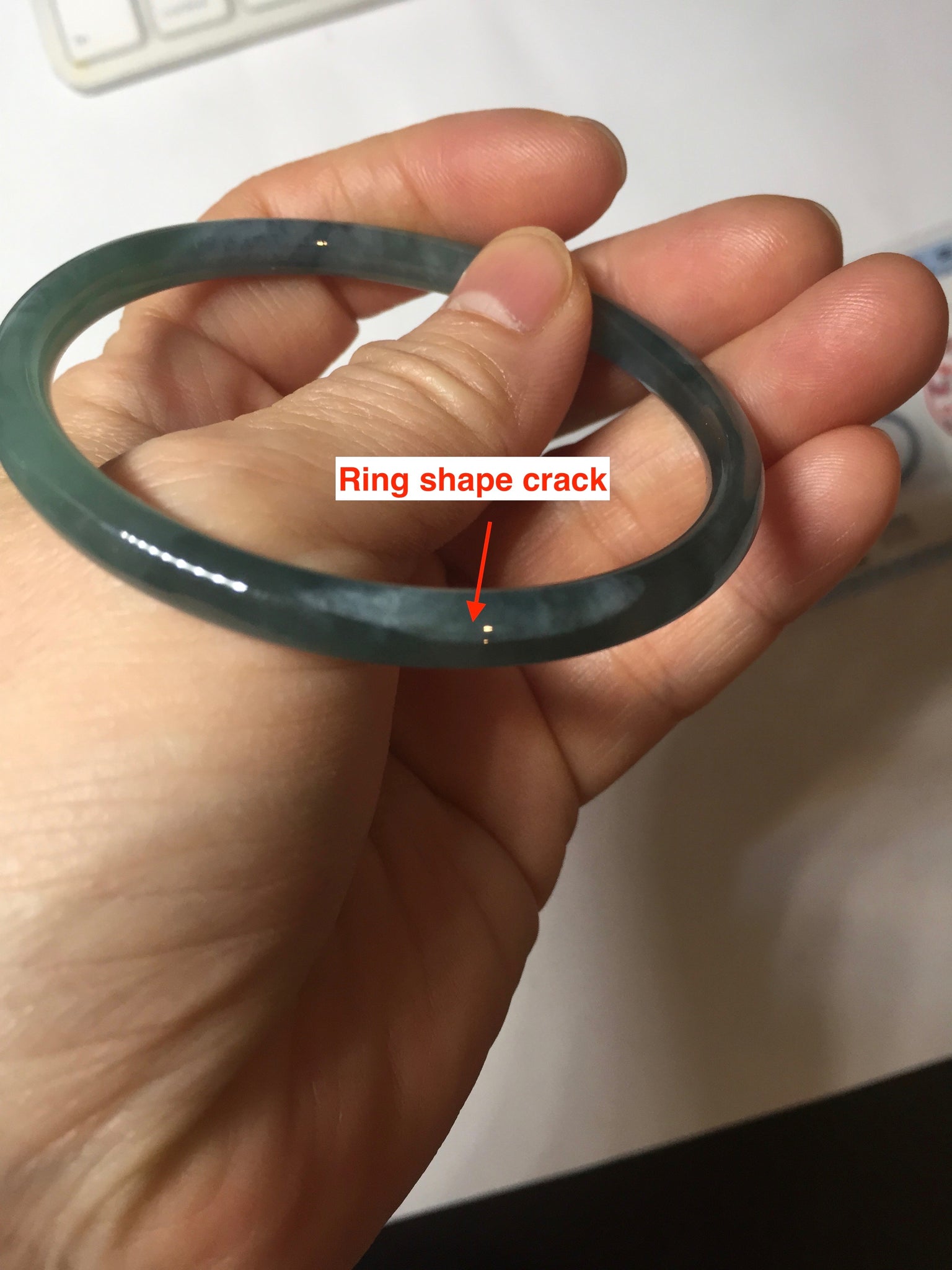 One ring shape crack. Some cotton areas, cotton lines, and spots. The bangle has some gray/ black color.