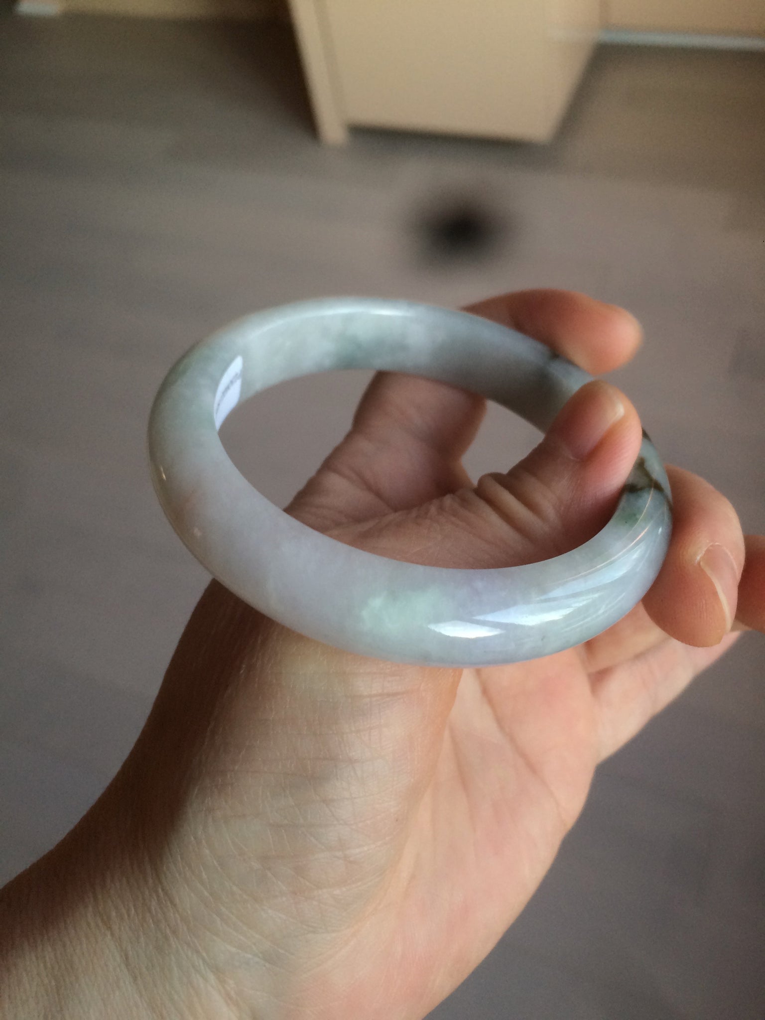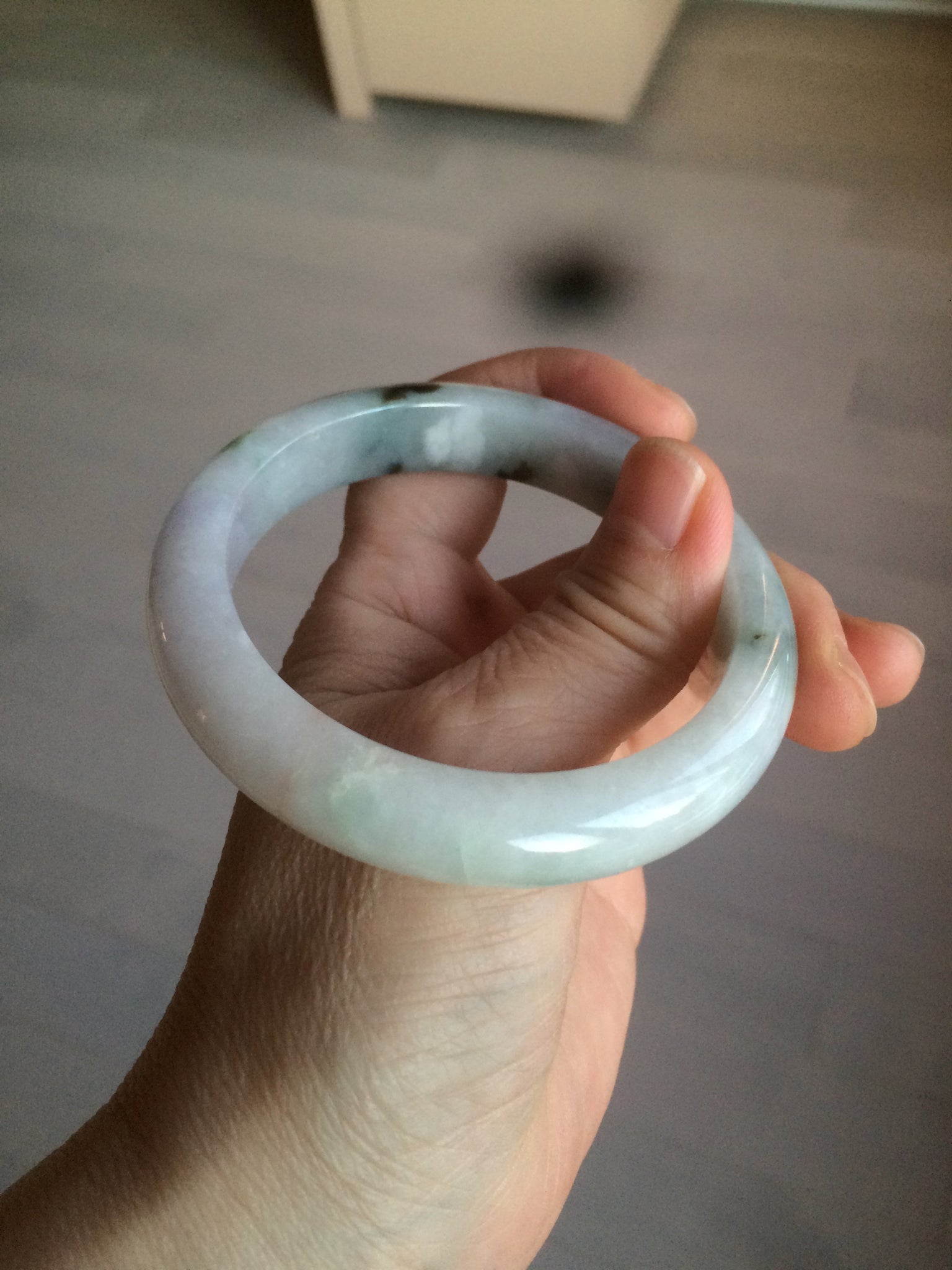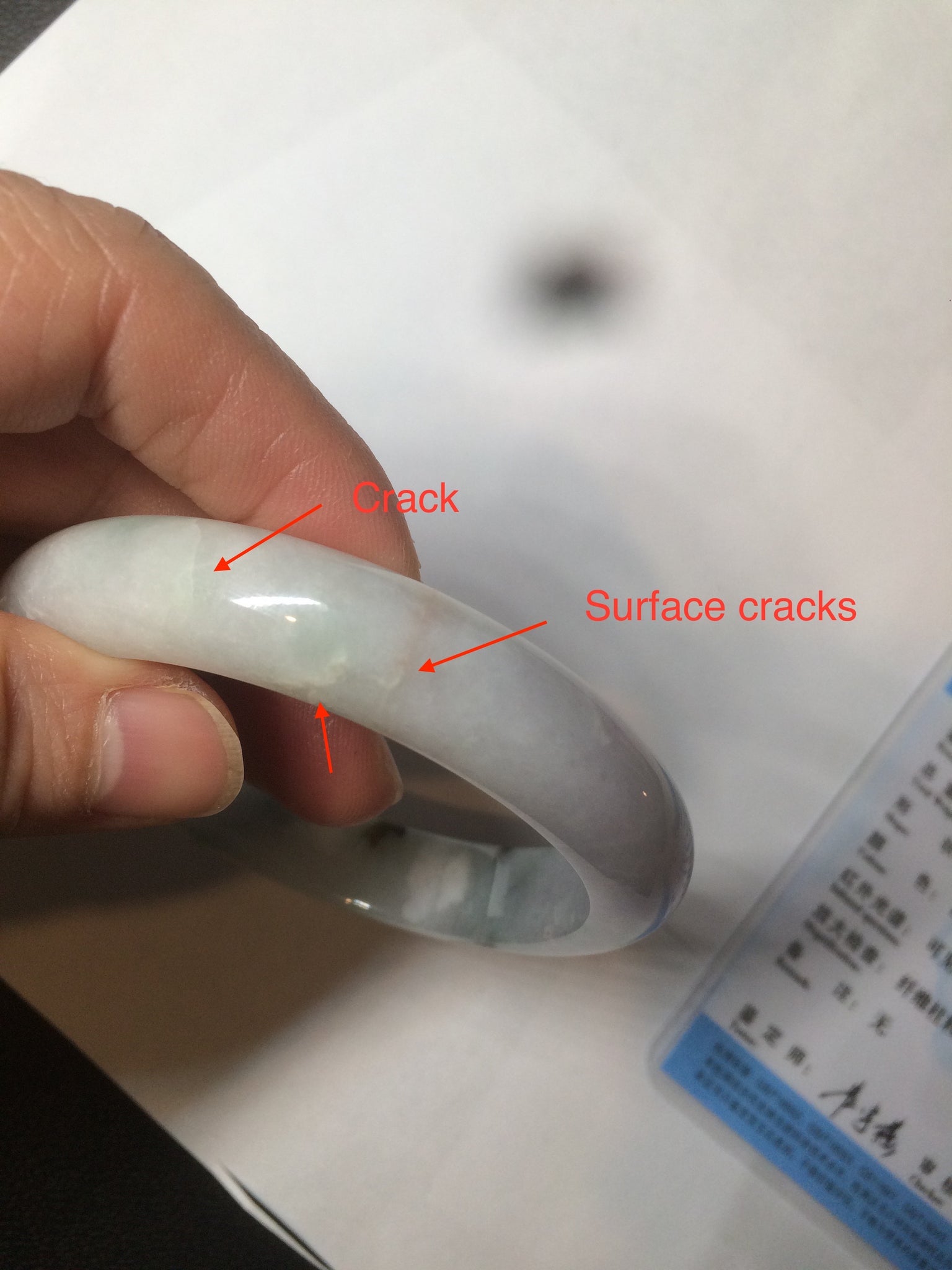 Some cracks with a tiny amount of wax. The bangle is still solid(guaranteed!). It makes a high-pitched sound when clicked. Some hairlines or cotton lines. Cotton spots and brown spots. The purple is lighter than in the photos.