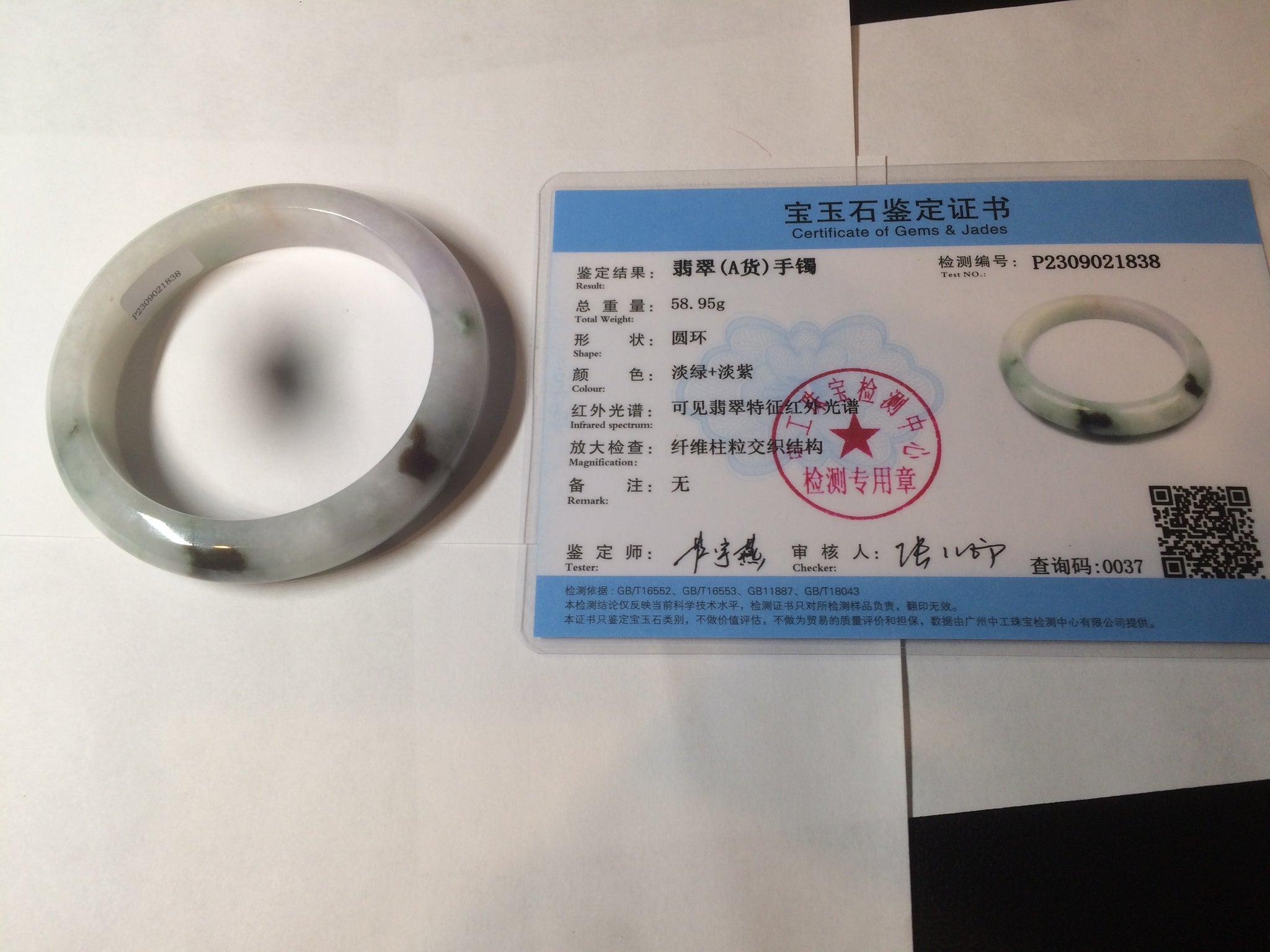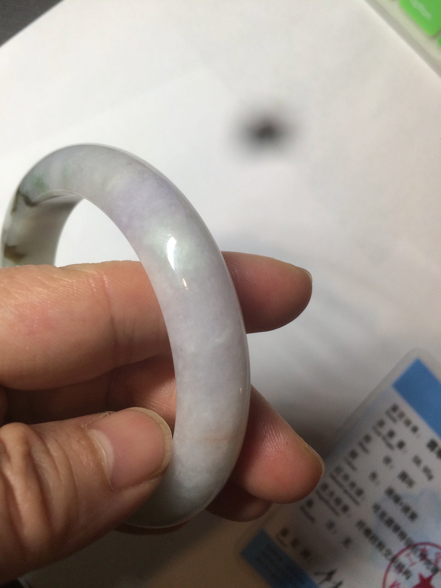 56.8mm certified type A 100% Natural dark green/white/purple jadeite jade bangle BG76-1838