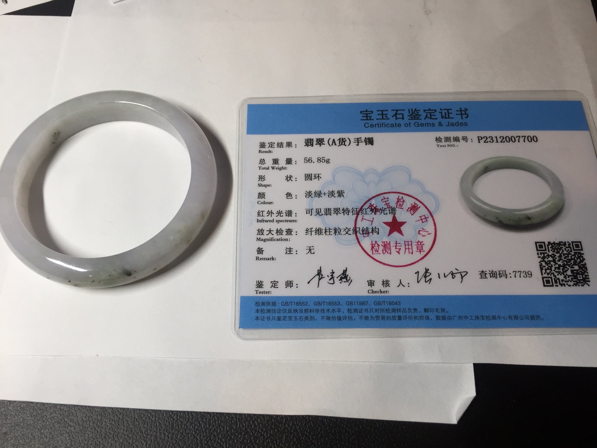 57.6mm Certified Type A 100% Natural icy watery white purple black brown Jadeite Jade bangle BM21-7700