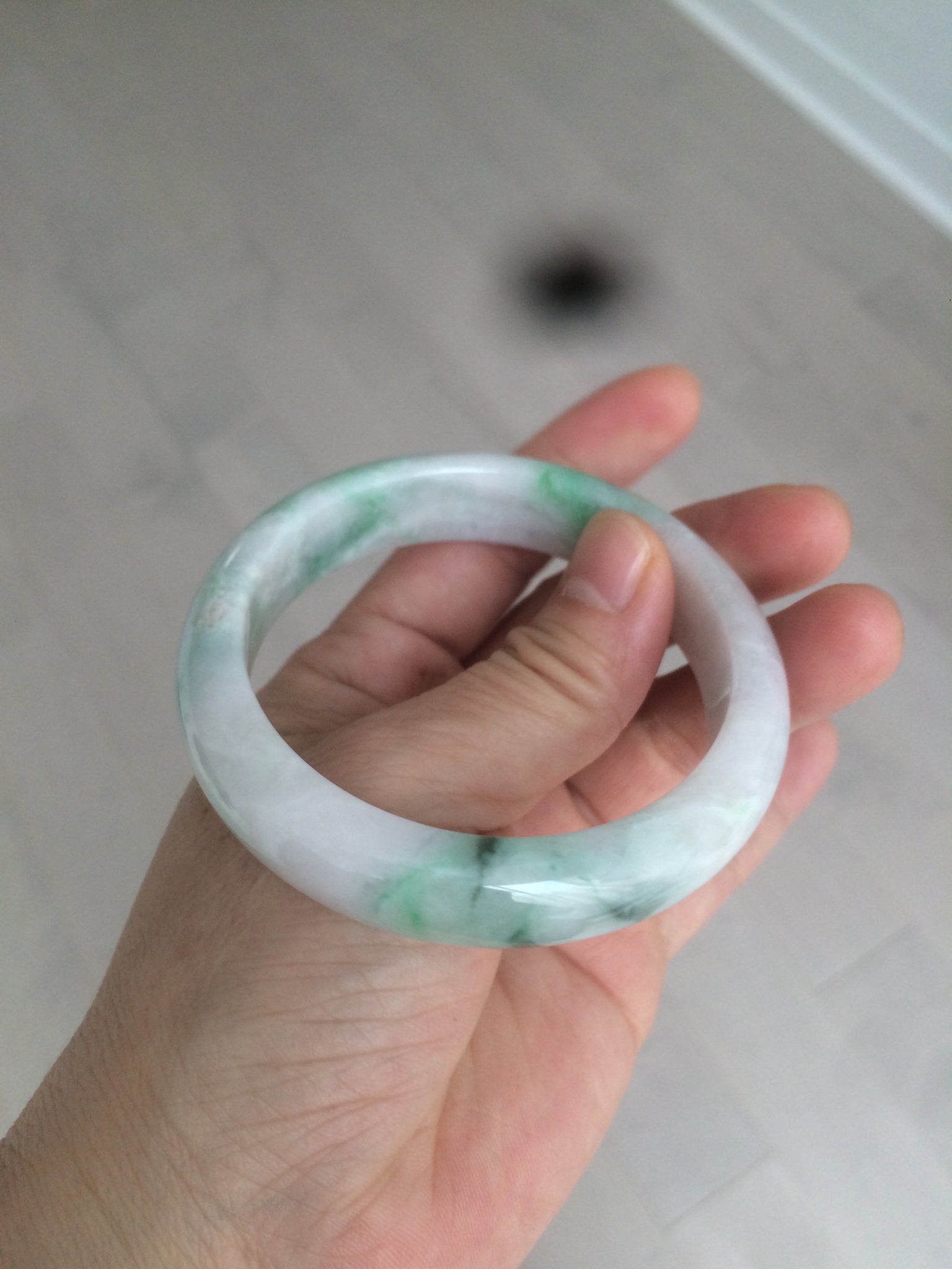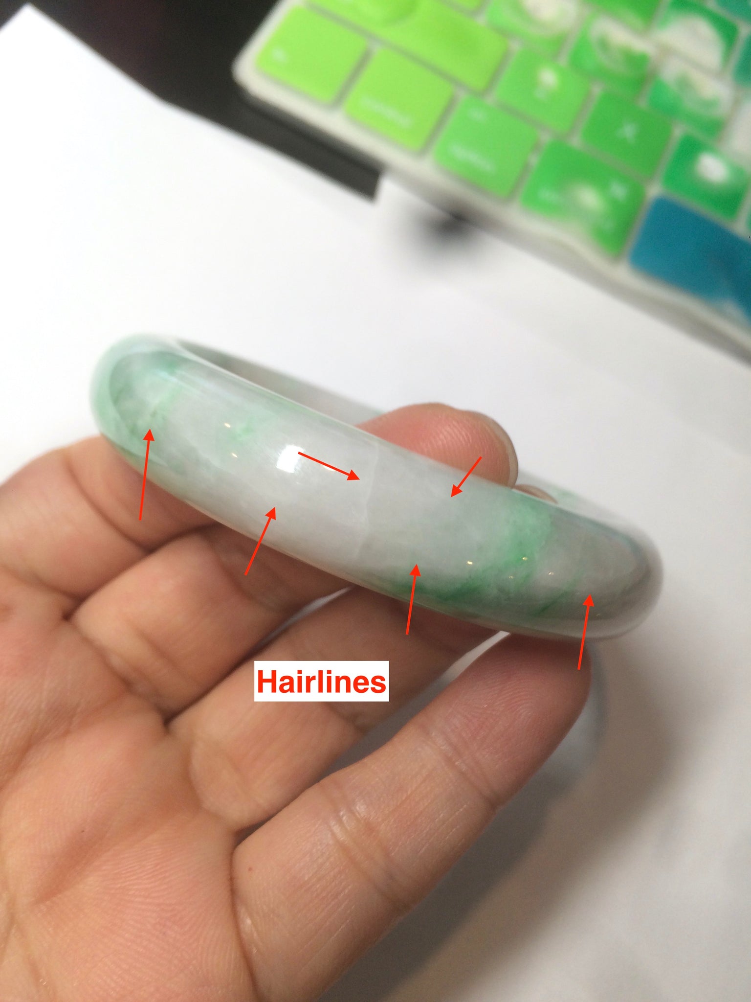 Imperfections: No crack. Quite a lot of hairlines and cotton lines(photos may not show all). The bangle is solid(guaranteed!). Some small rough surface areas. Cotton spots and areas. The purple is super light. Lighter than in photos.