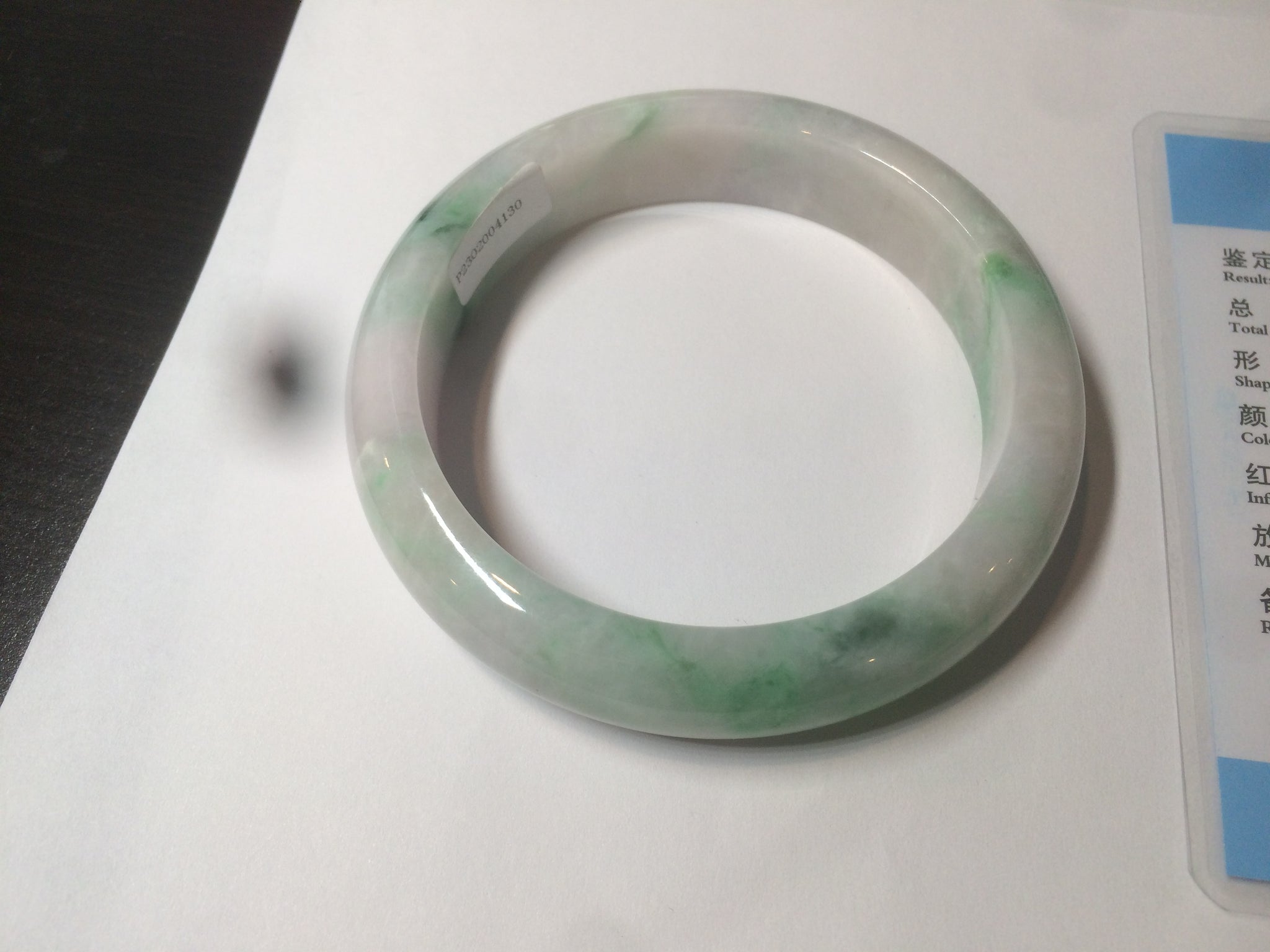 56.4 mm certificated Type A 100% Natural sunny green/white/purple Jadeite Jade bangle S59-4130