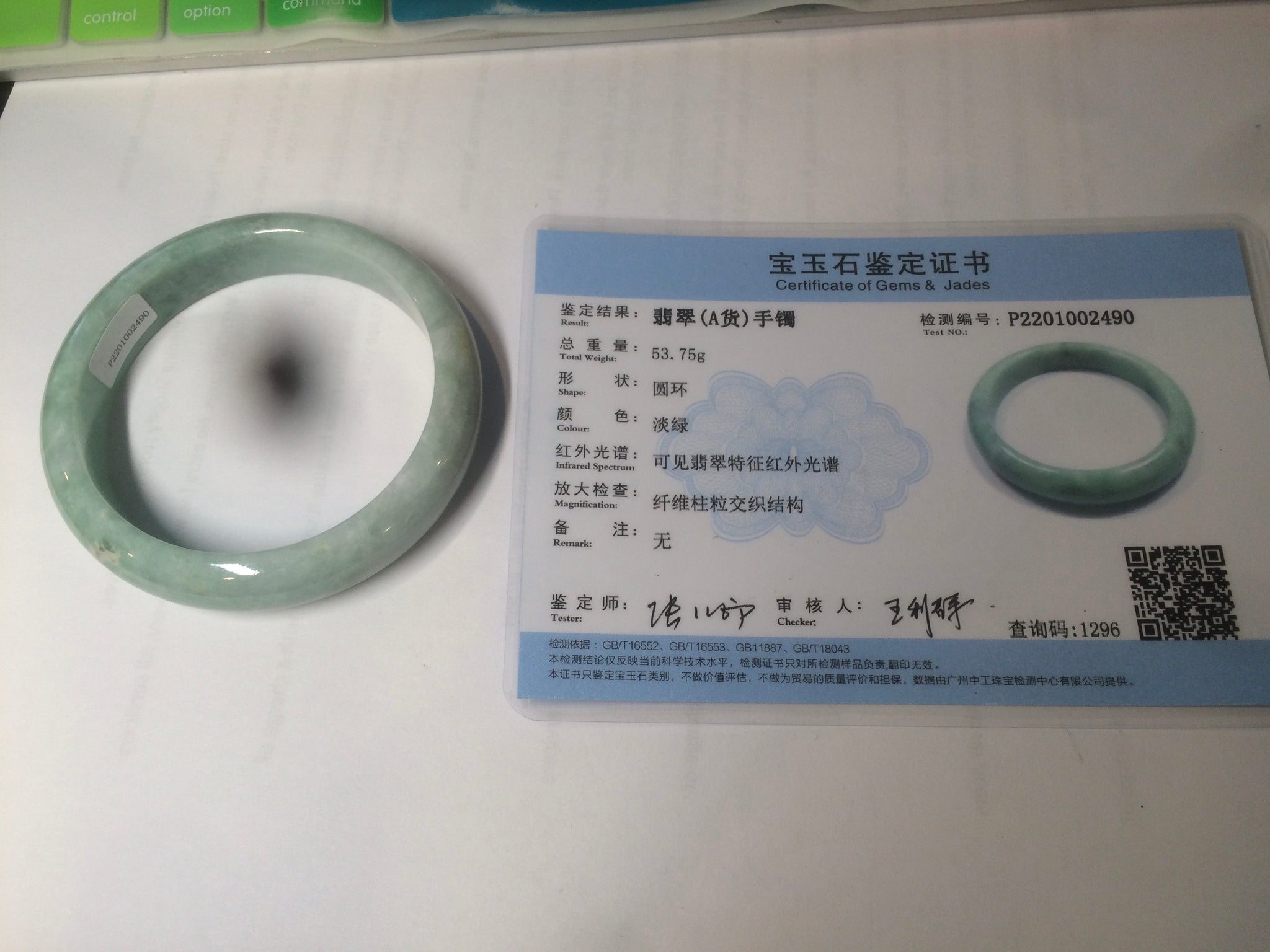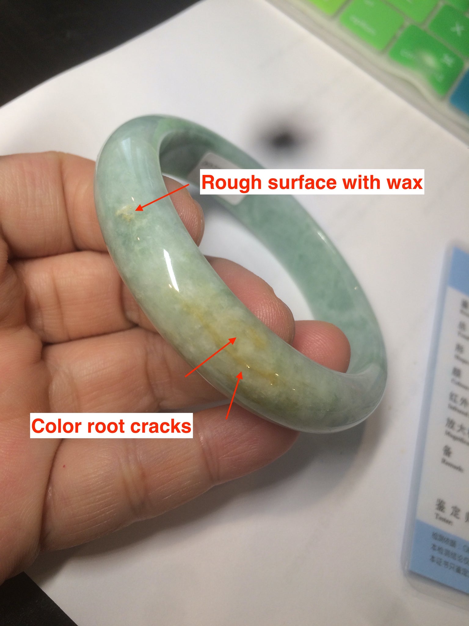 56.4mm certified Type A 100% Natural sunny green Jadeite Jade bangle U126-2490