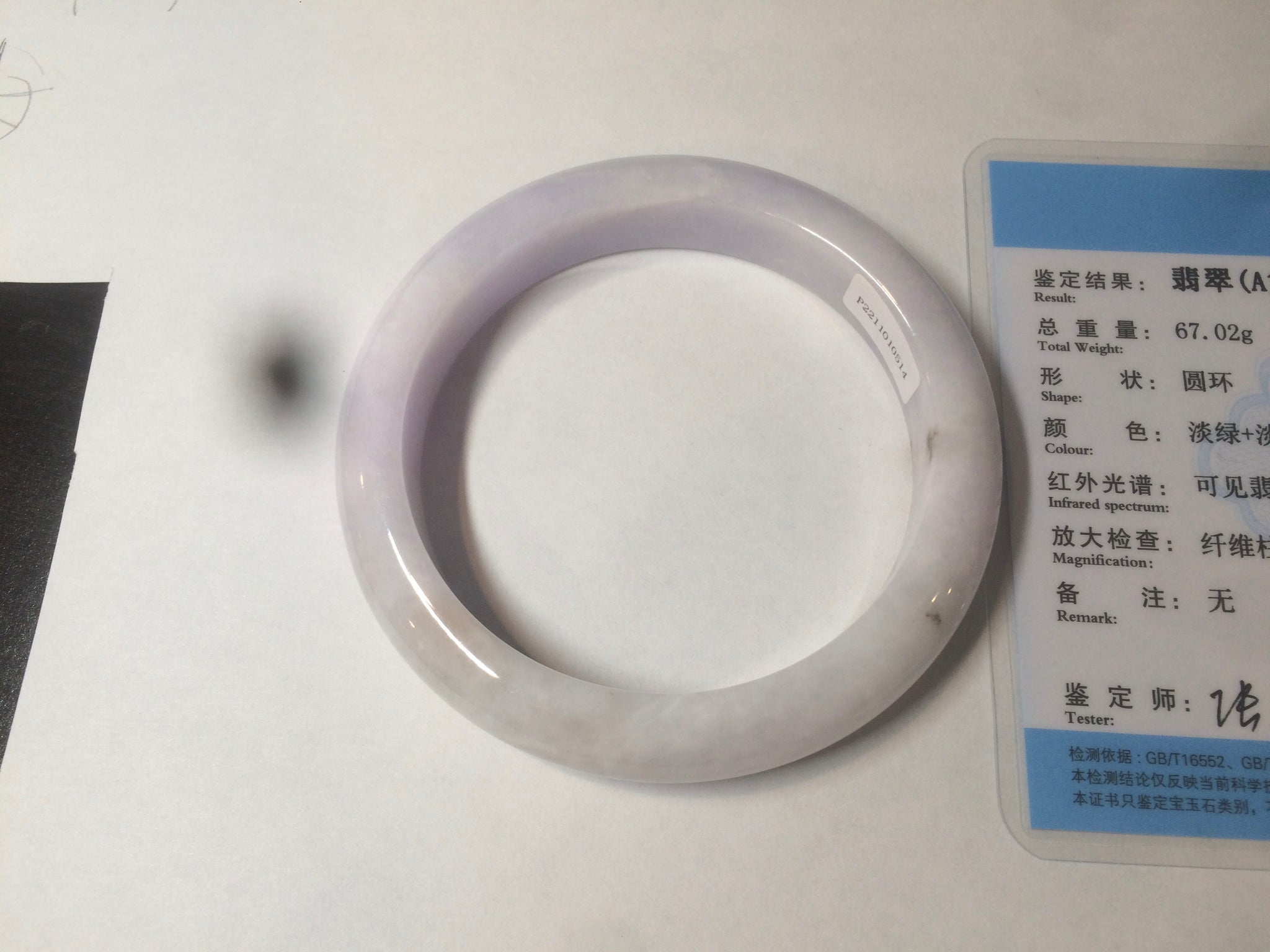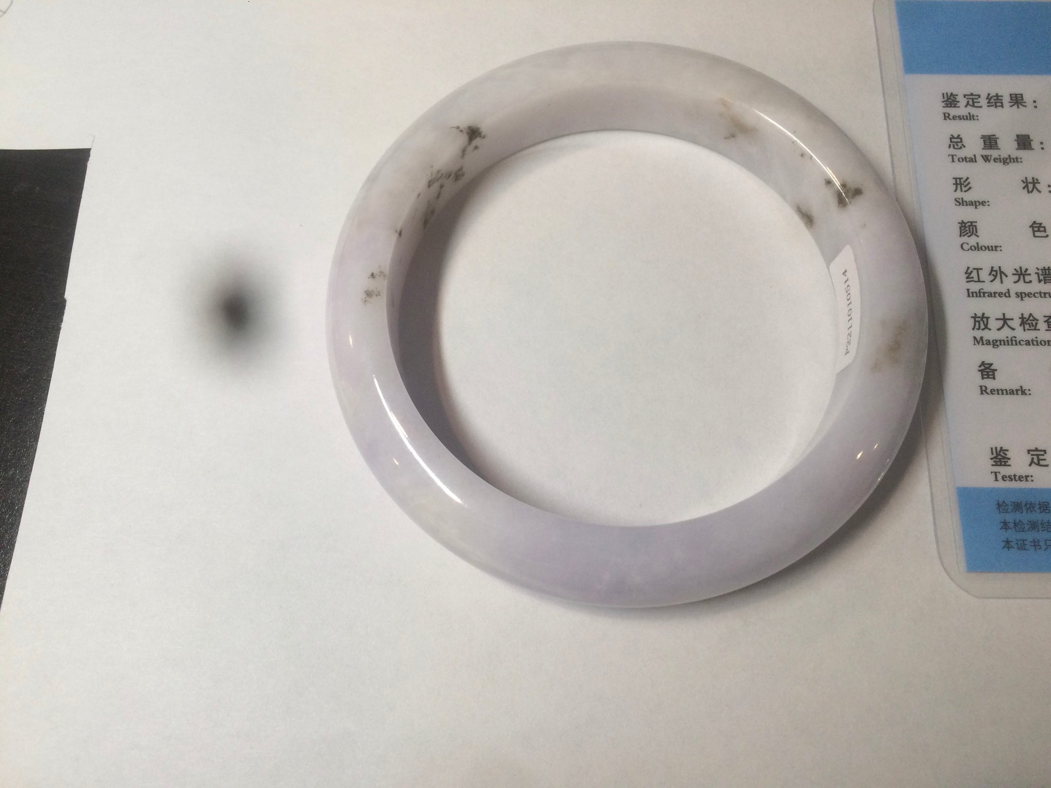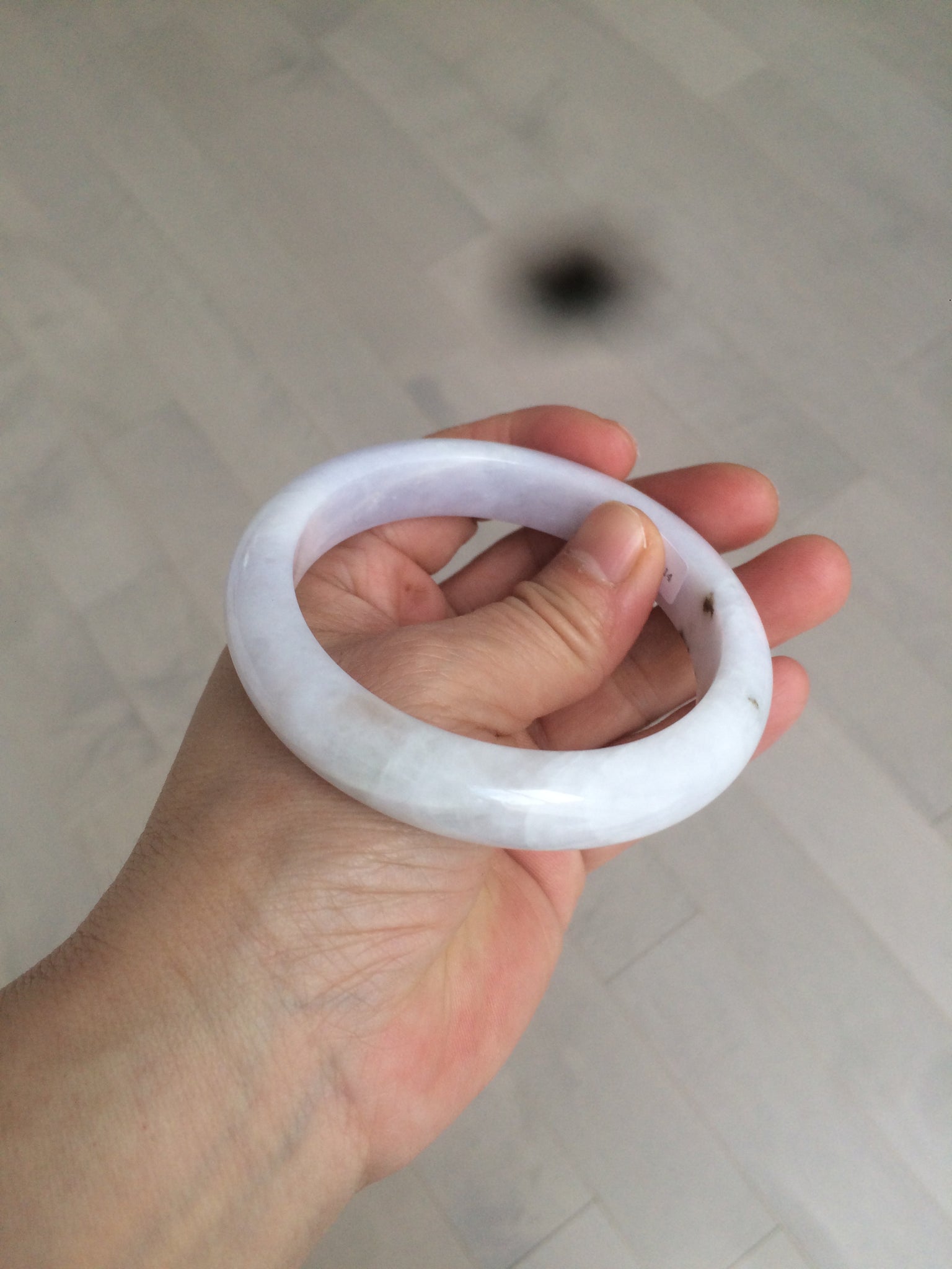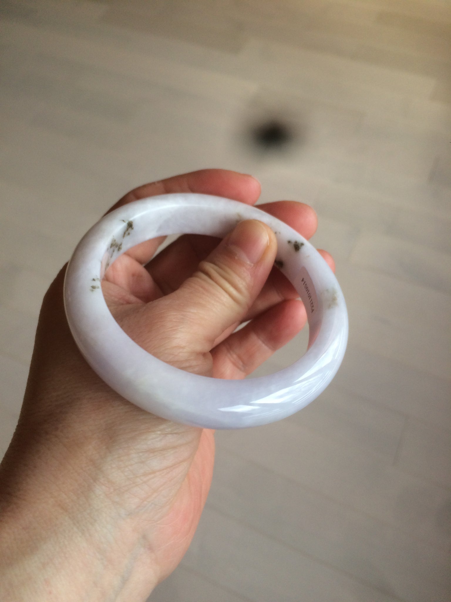 No crack. Some hairlines and cotton lines. The bangle is solid(guaranteed!). A few rough surfaces/mineral impurity/mine pits areas. Bown areas. Not transparent. The purple is super light (almost invisible). Lighter than in the photos.