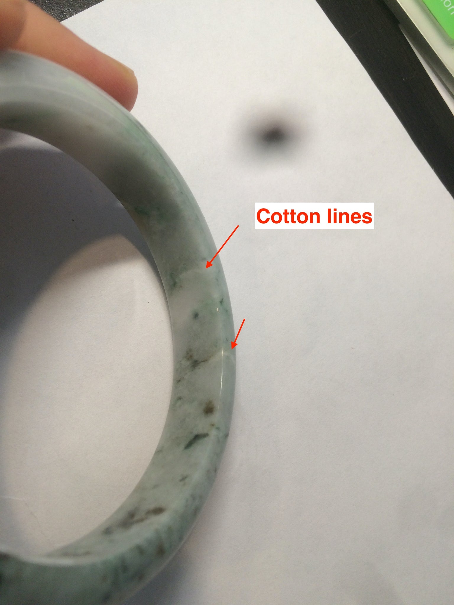 No crack. No hairline. Some cotton lines. Some cotton spots and cotton areas. Brown/black spots. Not transparent. Not watery.