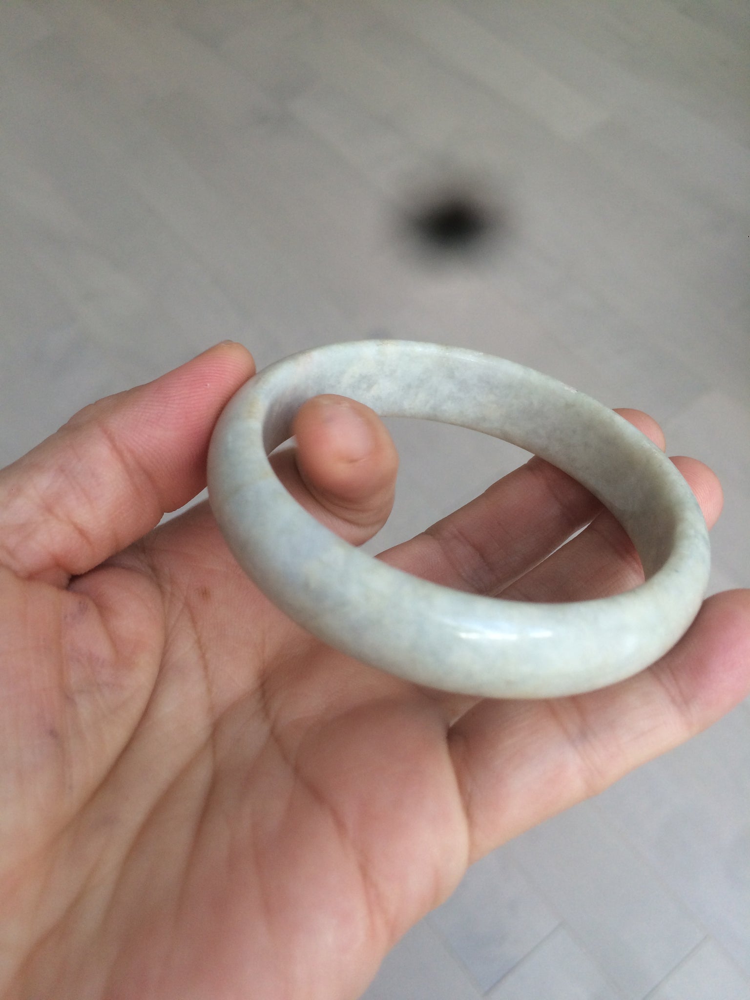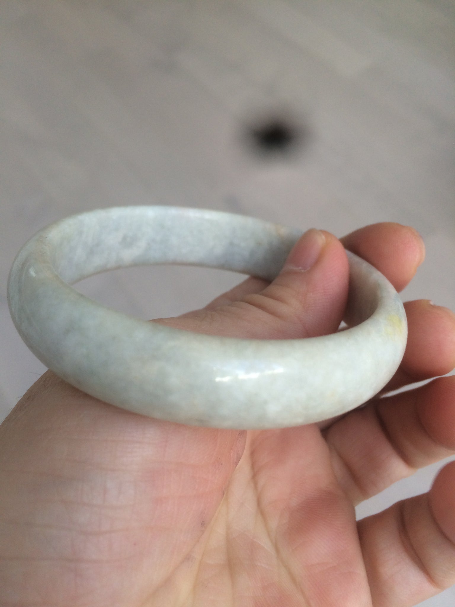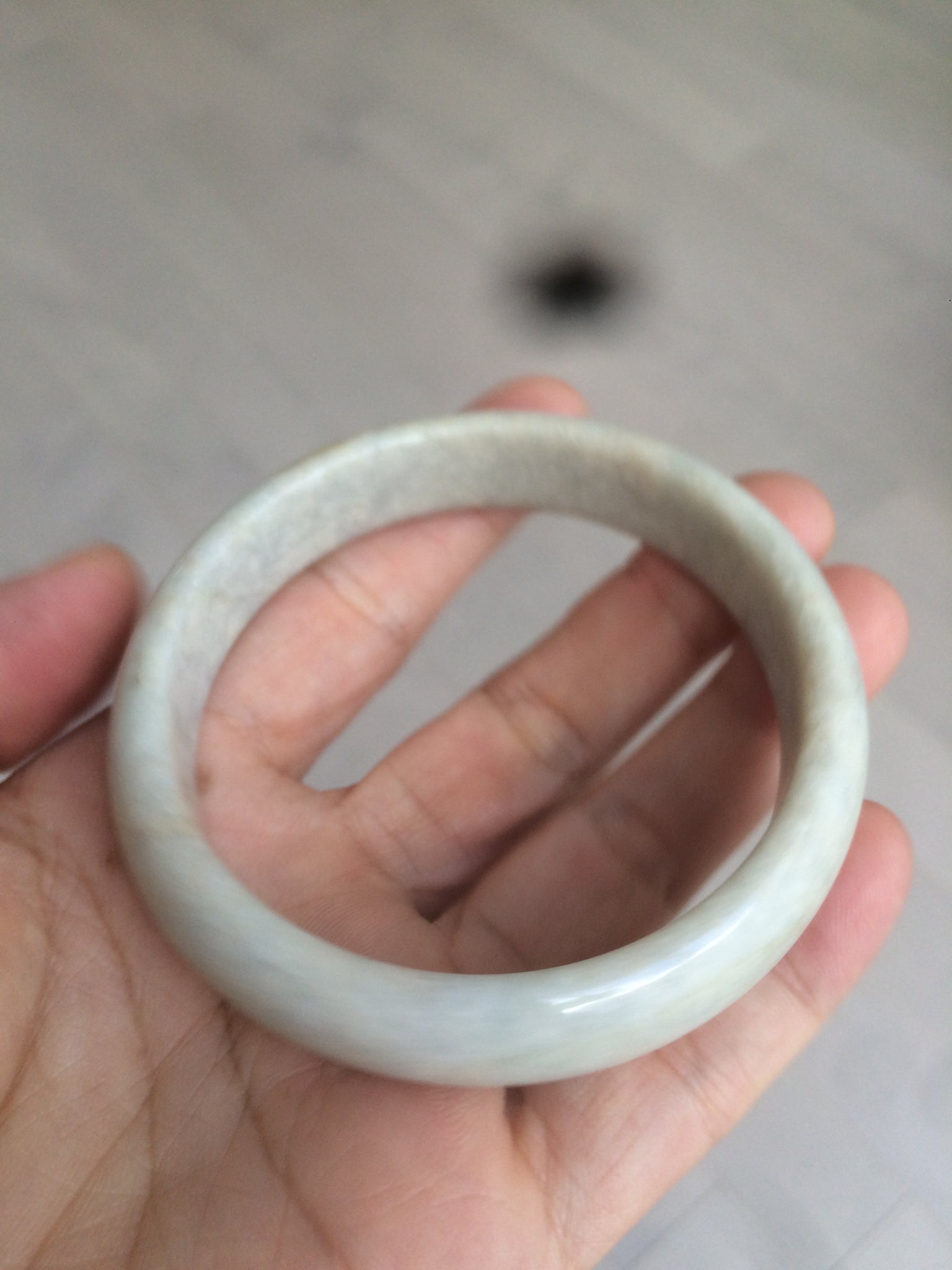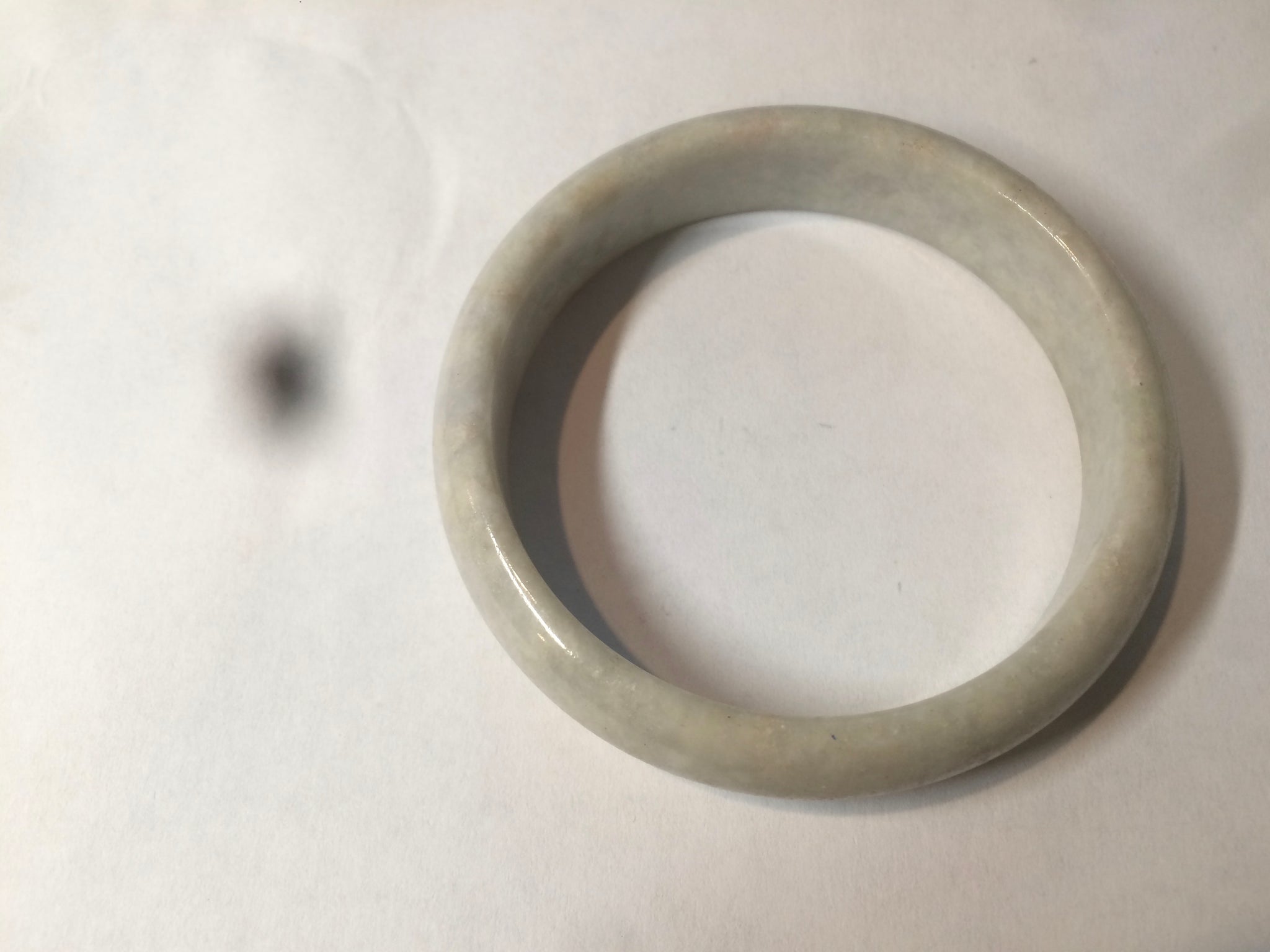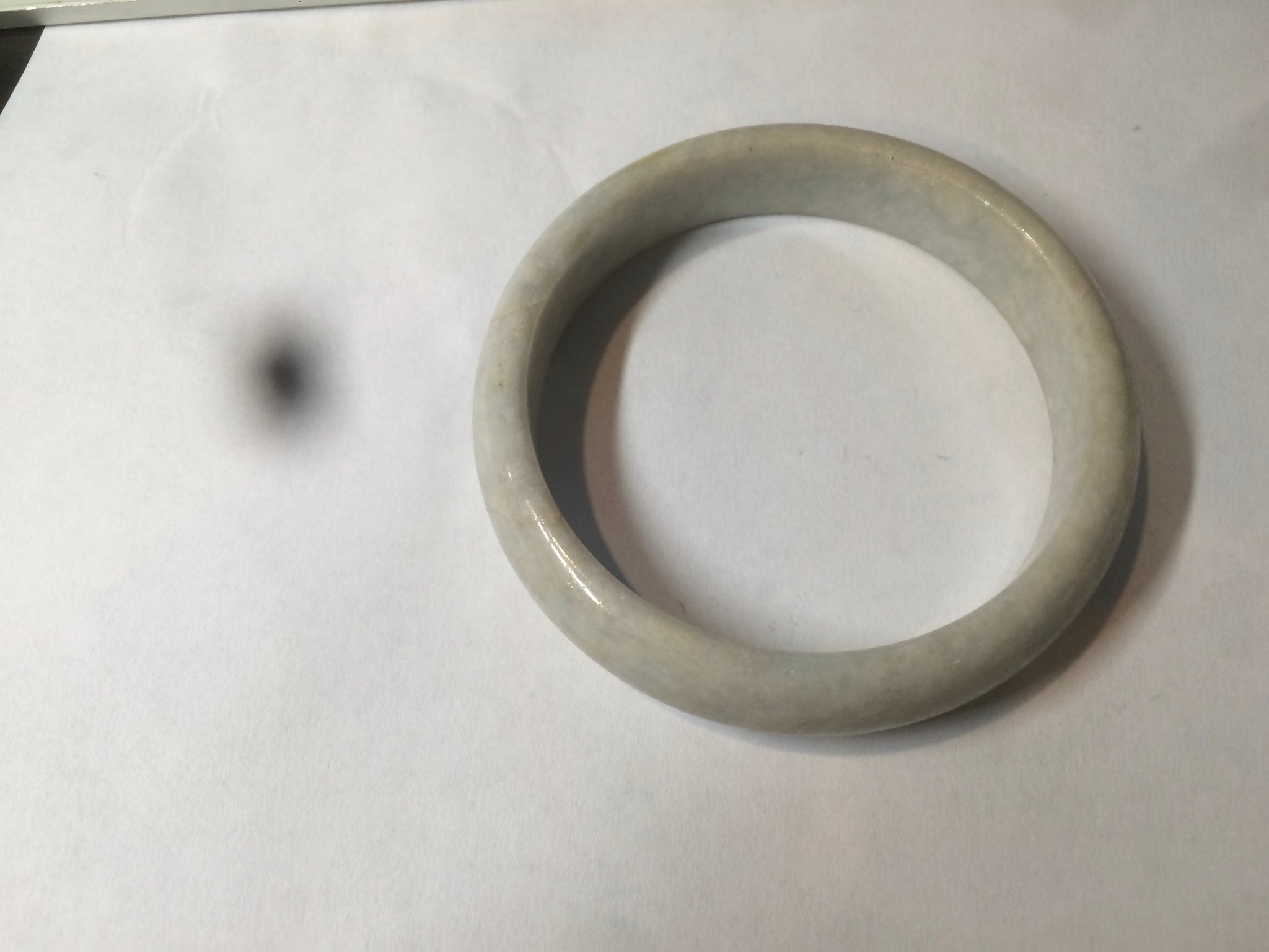 Imperfections:  Around the bangle crack. This crack may decrease the firmness of the bangle. A tight fit is NOT recommended. Other cracks, hairlines, and spots(photos may not show all). Not watery. Not transparent. Dry texture.