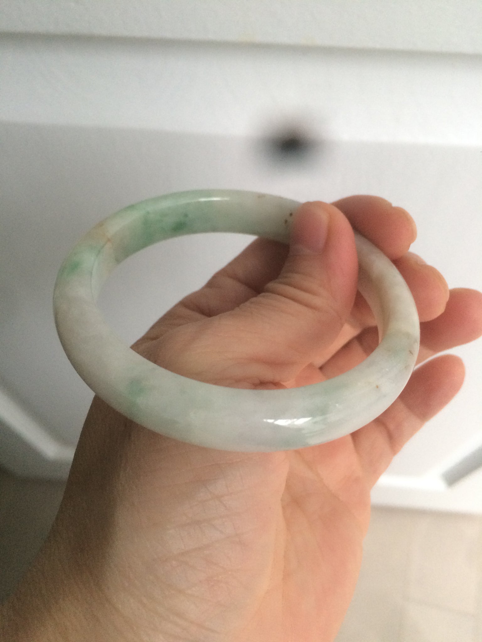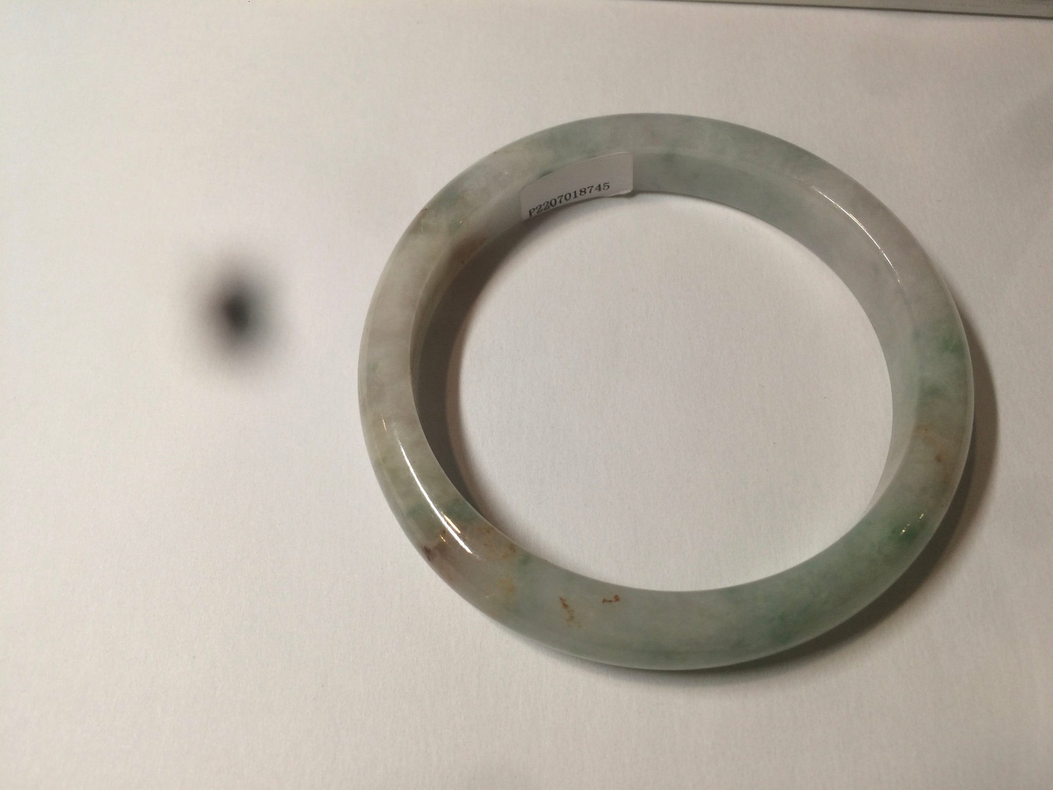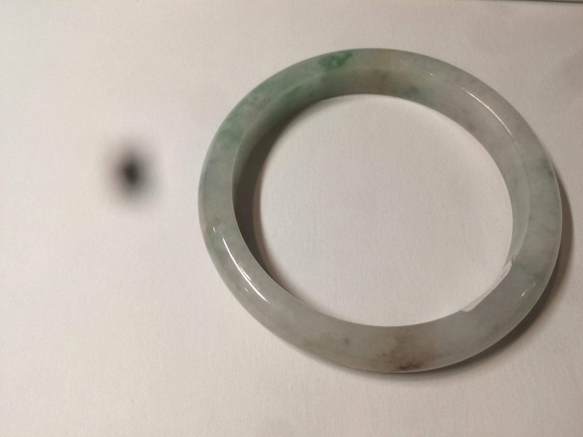 Some cracks with a tiny bit of wax residue. Alongside the bangle. The bangle is still firm. Some hairlines or cotton lines.