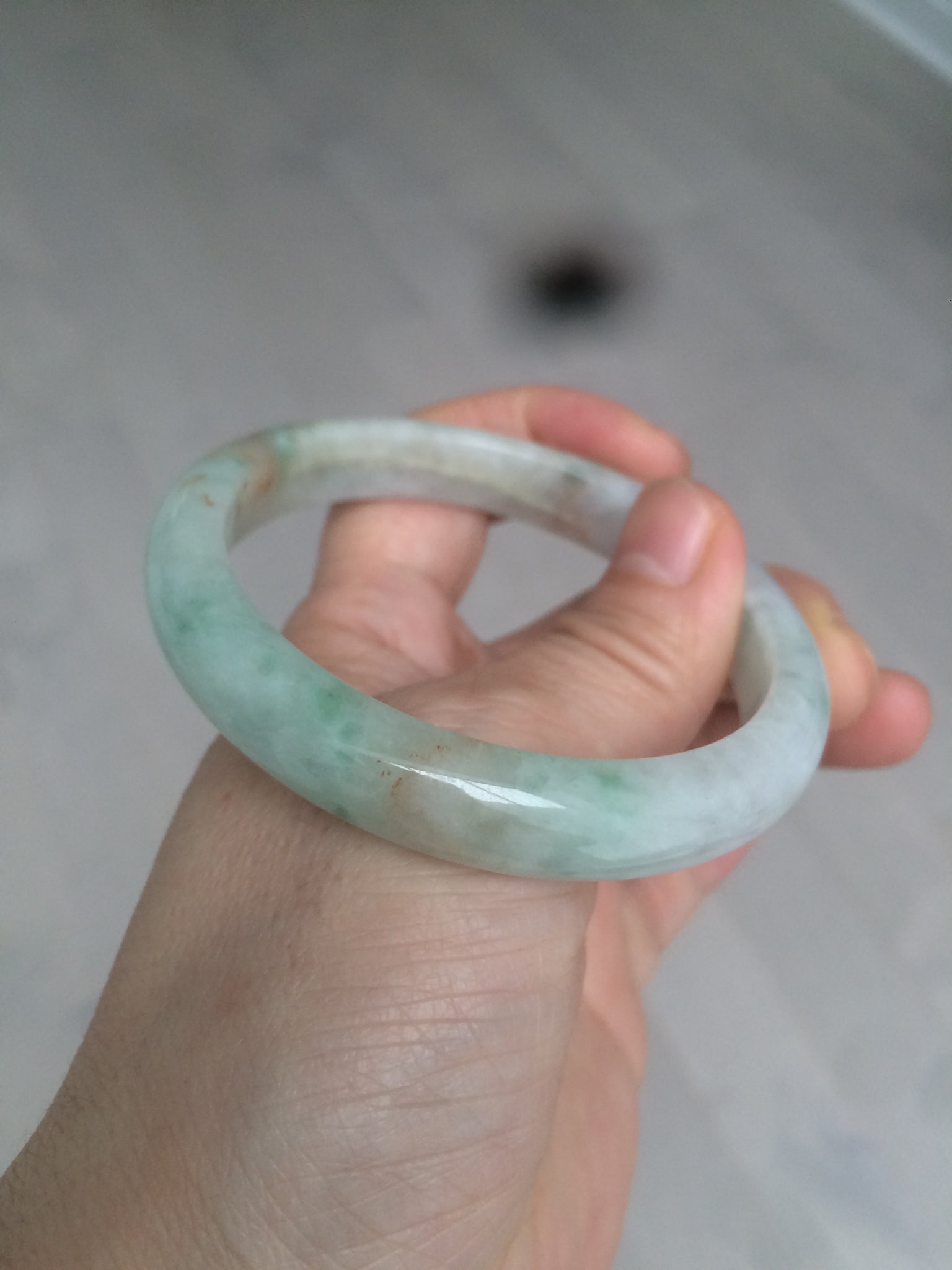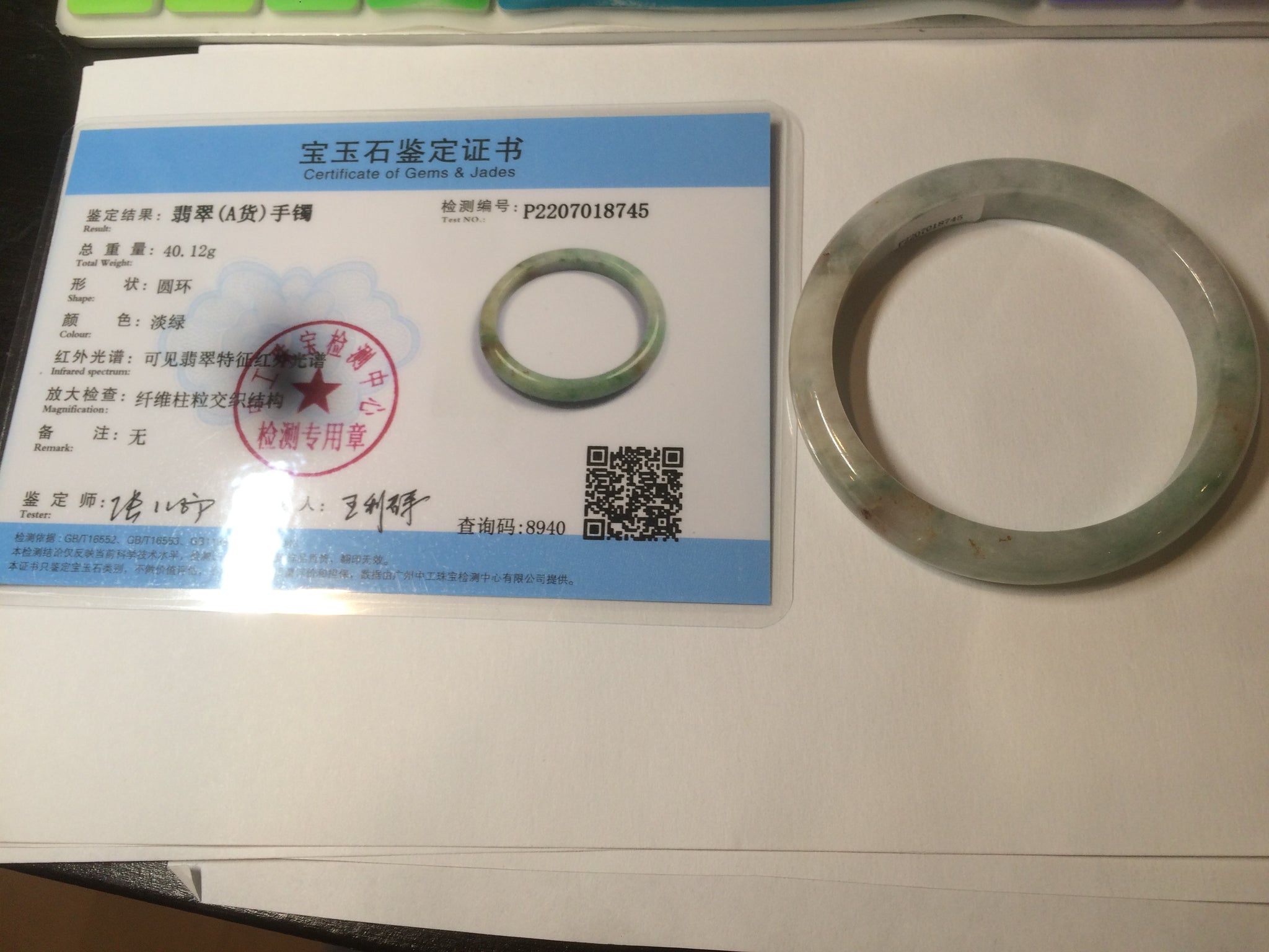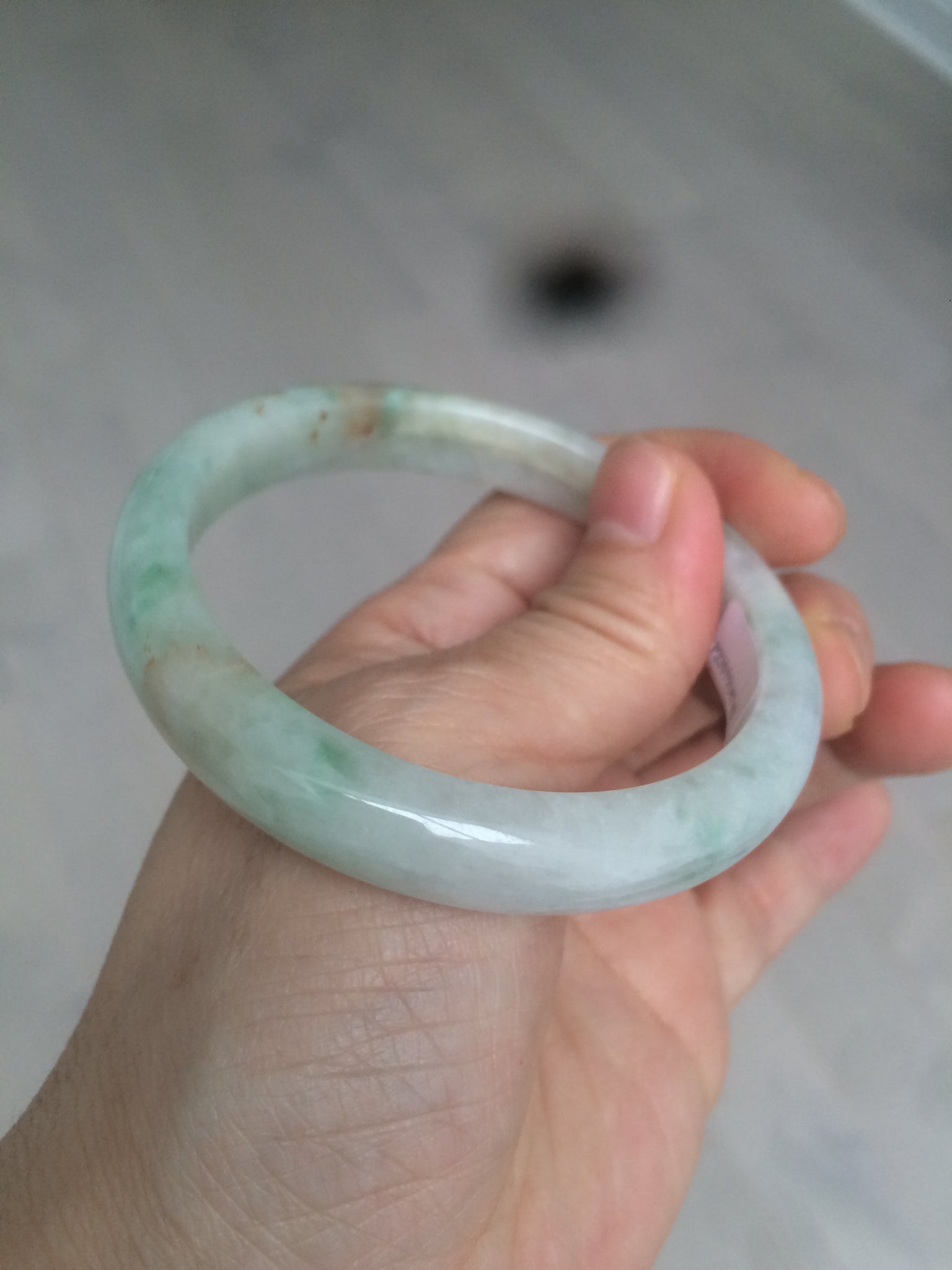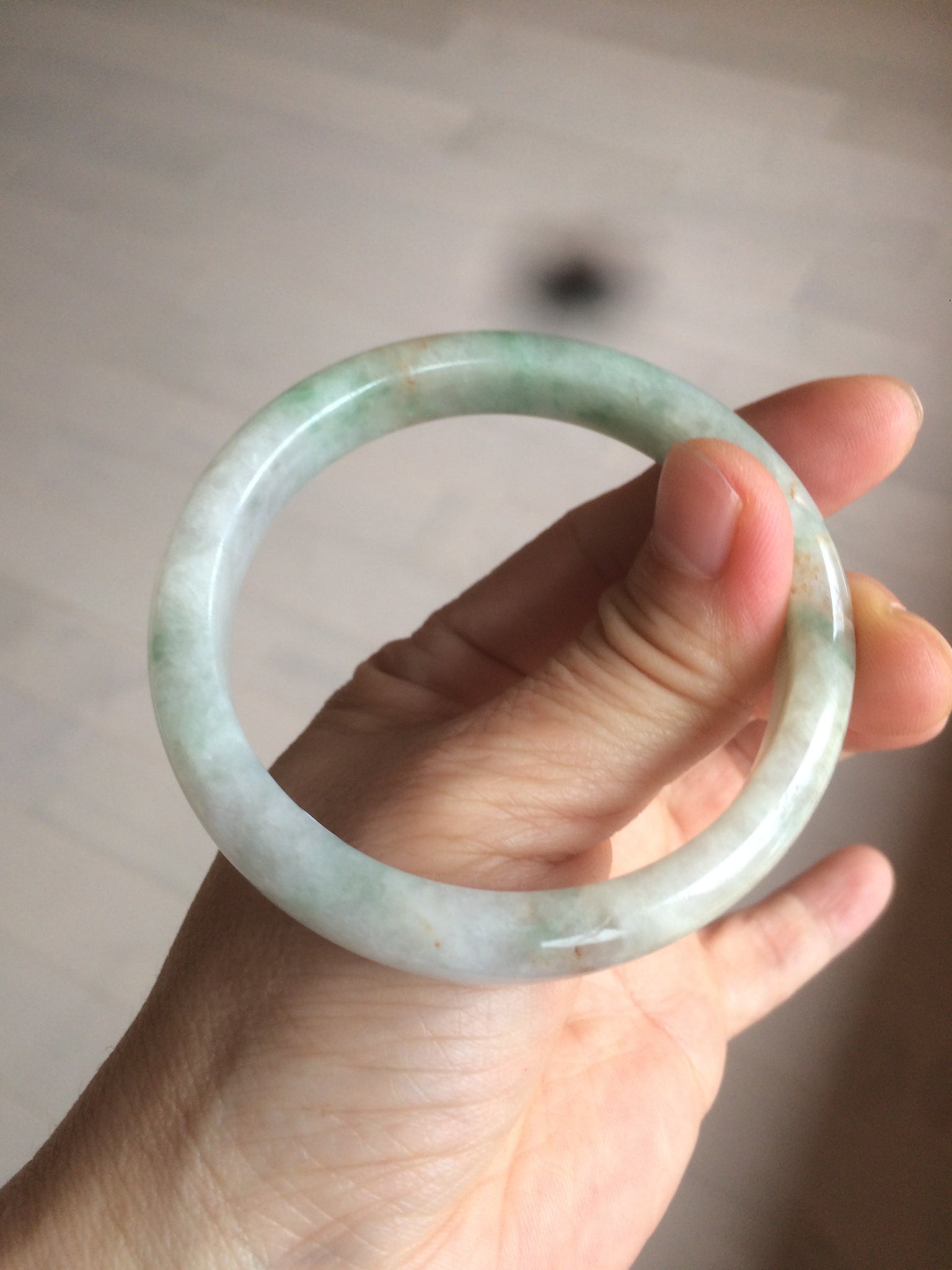 Some cracks with a tiny bit of wax residue. Alongside the bangle. The bangle is still firm. Some hairlines or cotton lines.