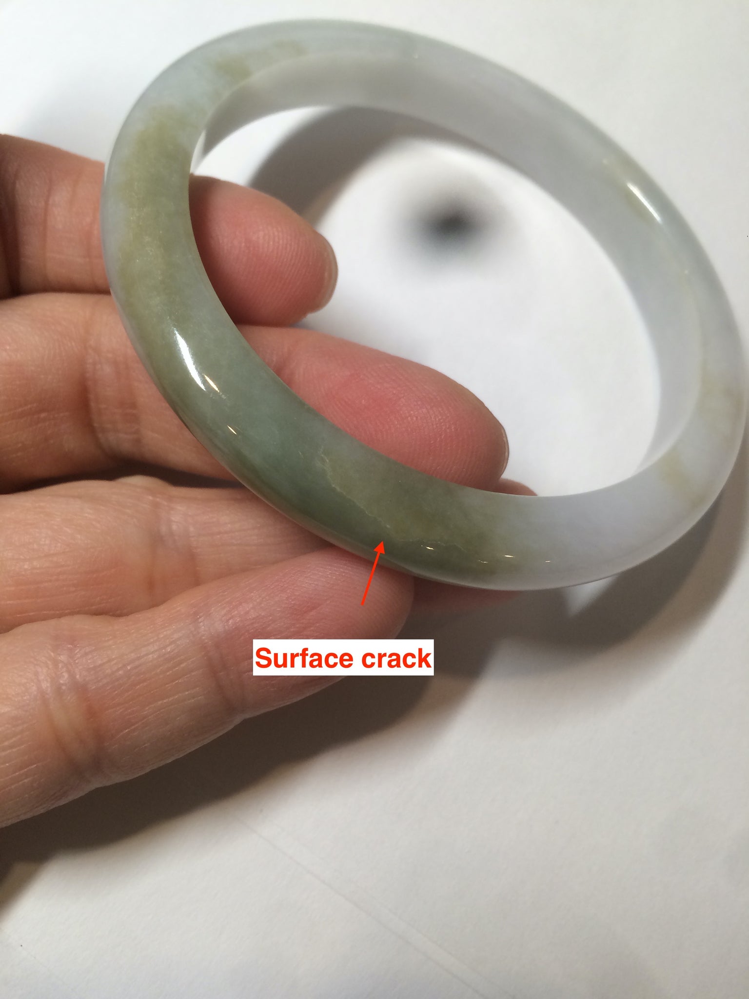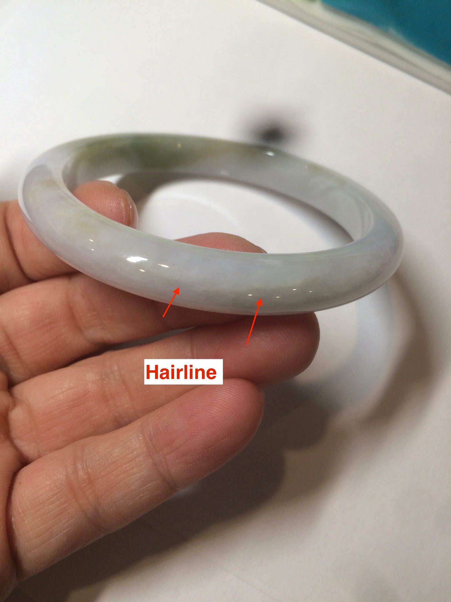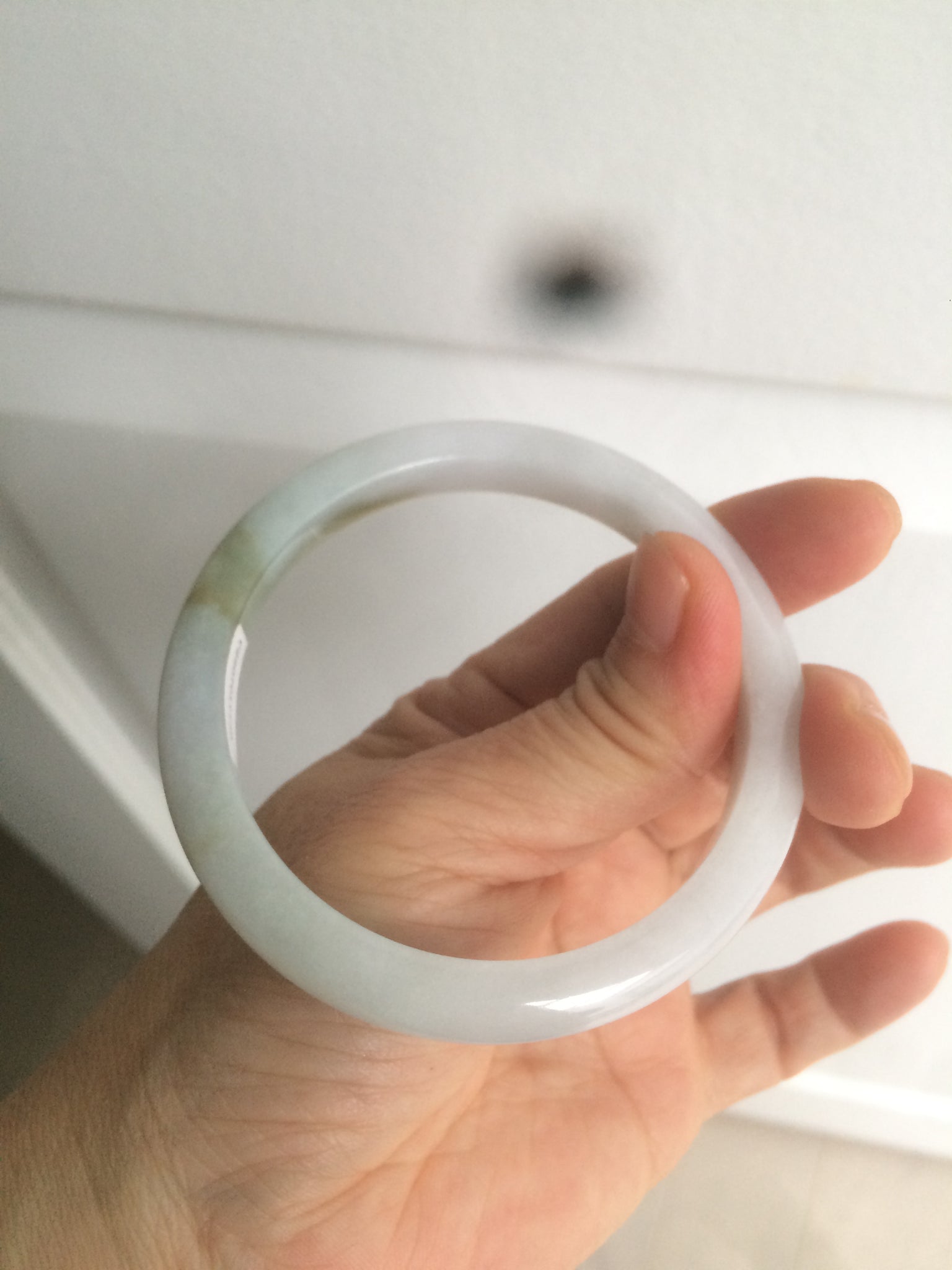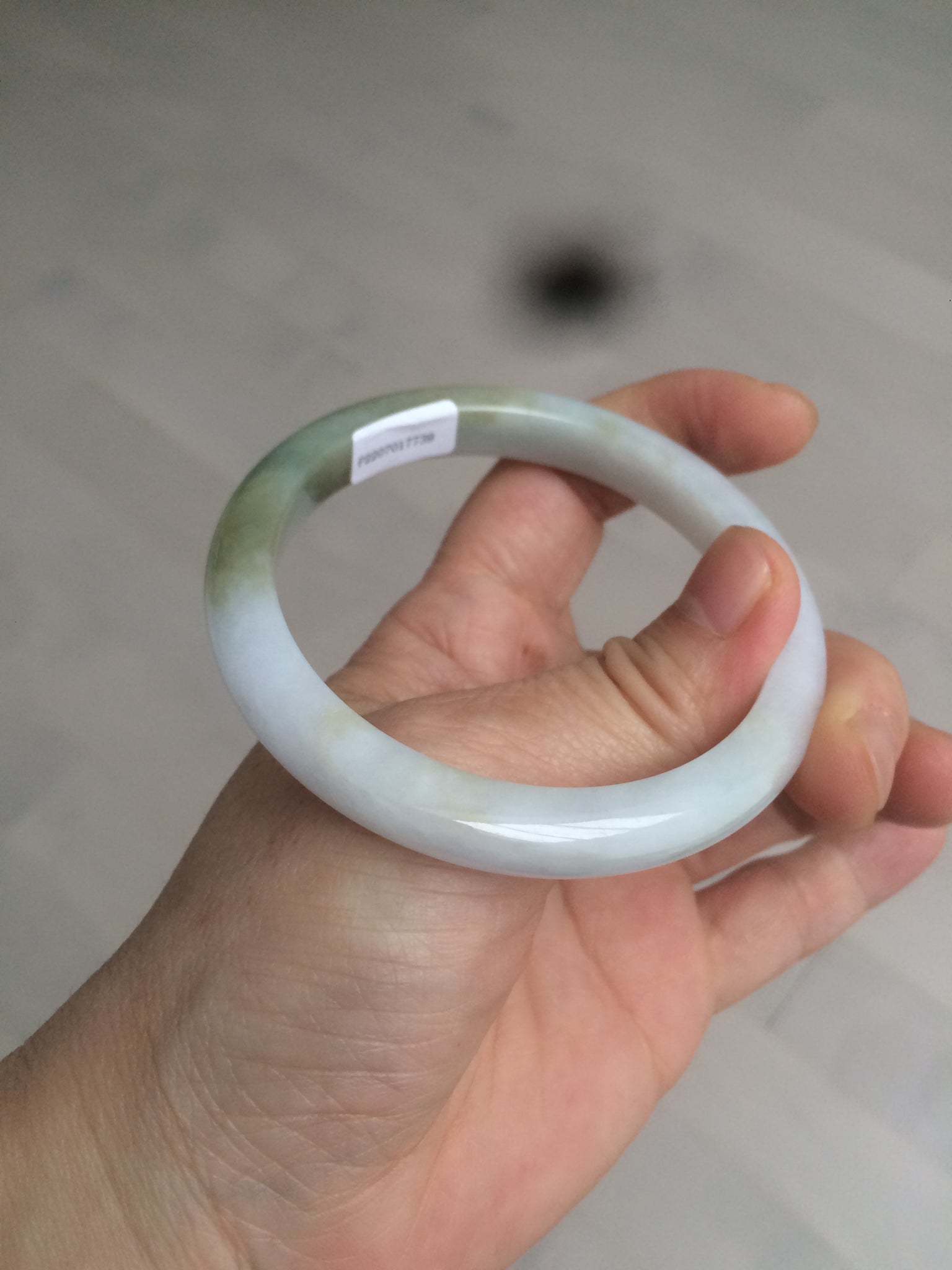 57.3mm Type A 100% Natural green/white Jadeite Jade bangle AT61-7739