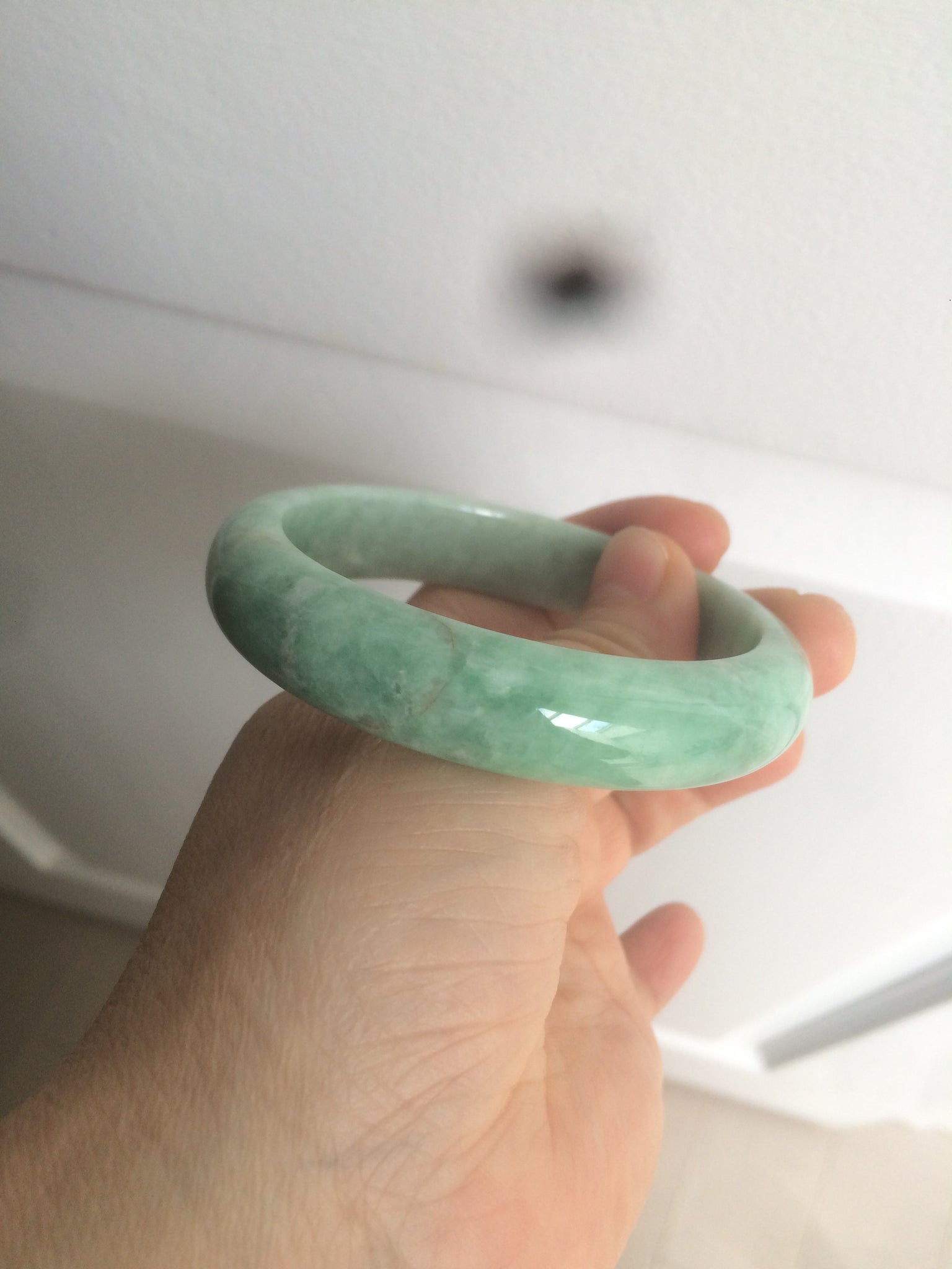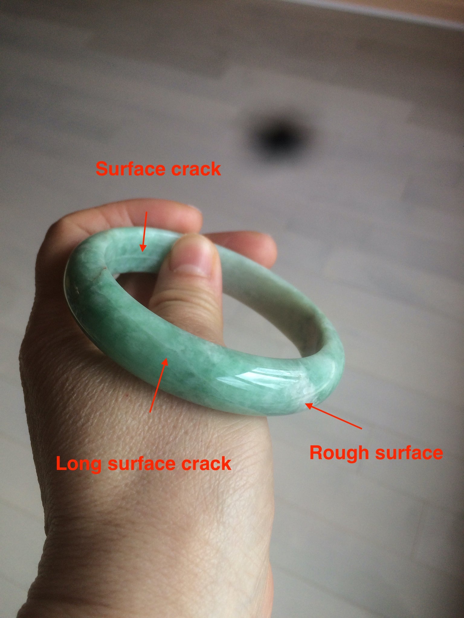 Quite a lot of surface cracks and scratches. Some rough surface with a little bit of wax. The bangle is solid(guaranteed!). Some hairlines/cotton lines. Some cotton spots and cotton areas.One color root crack.