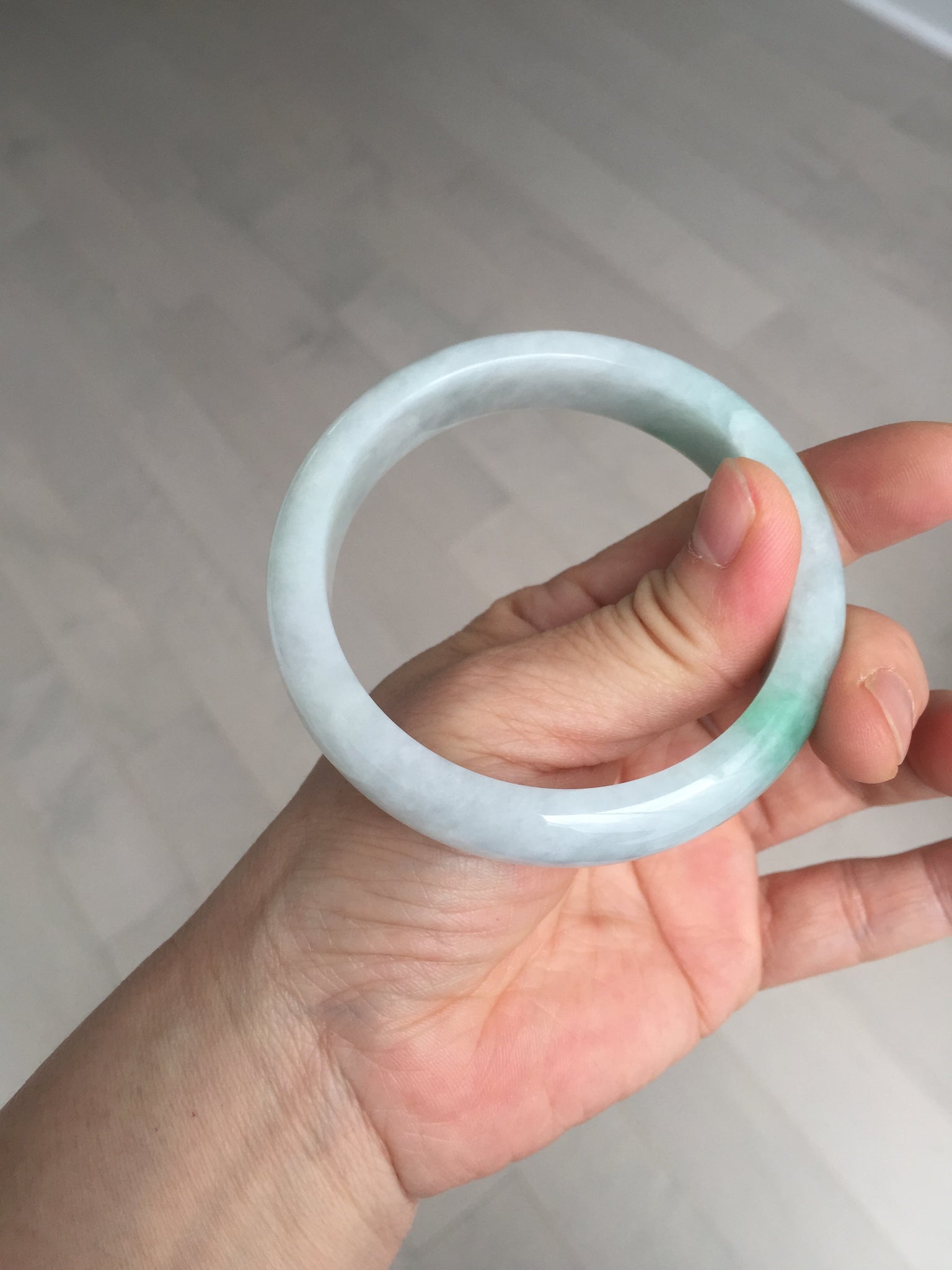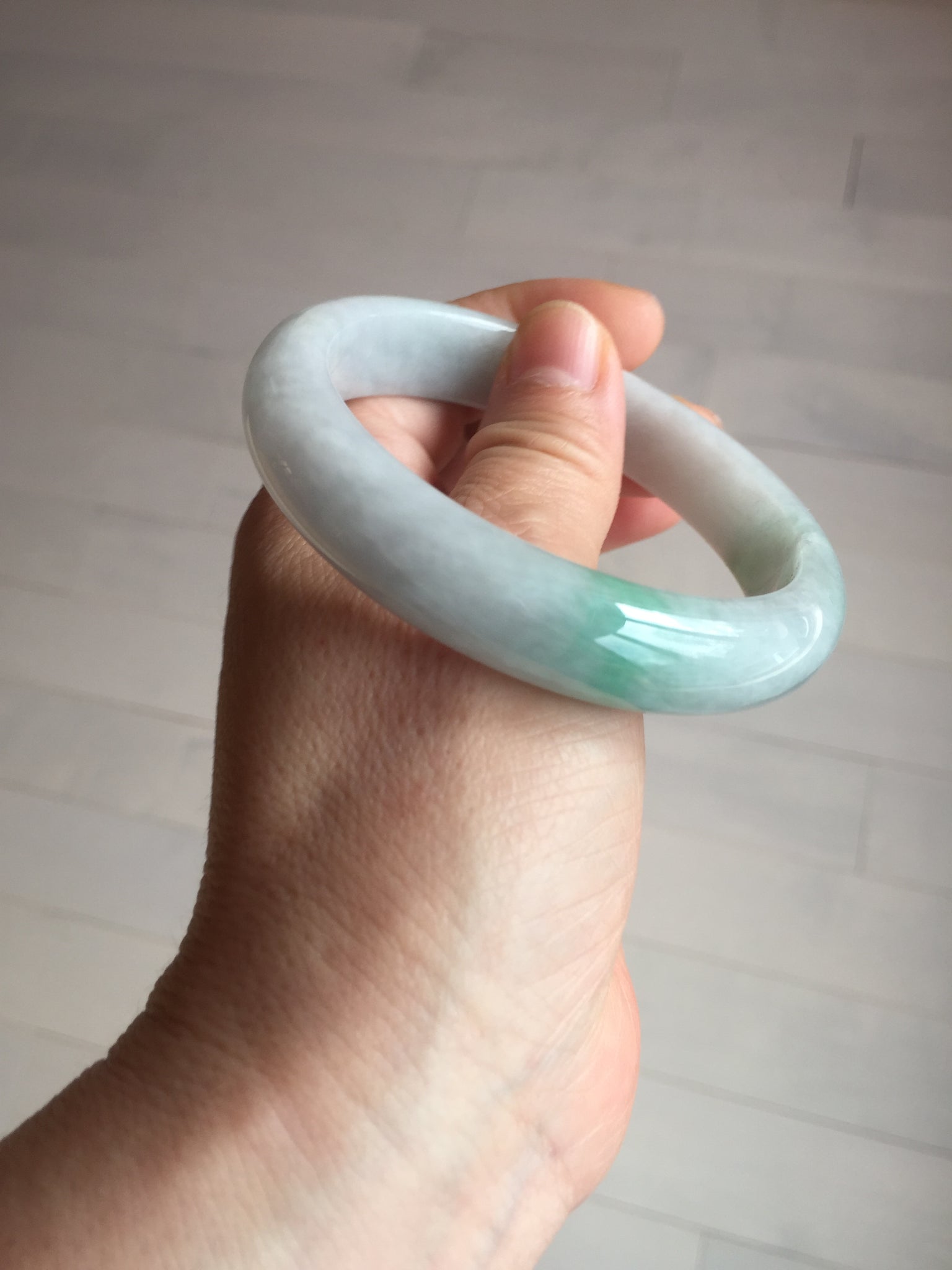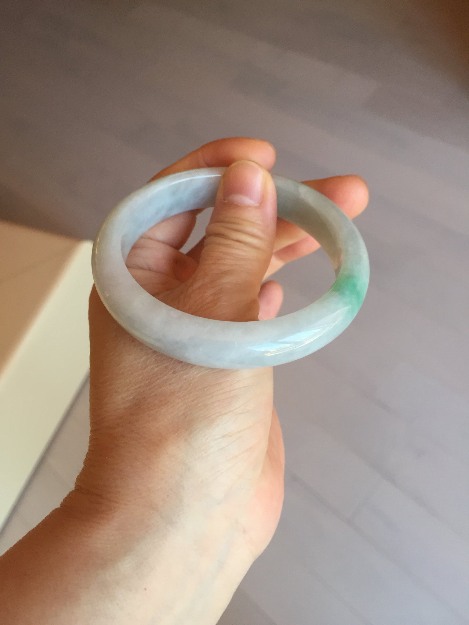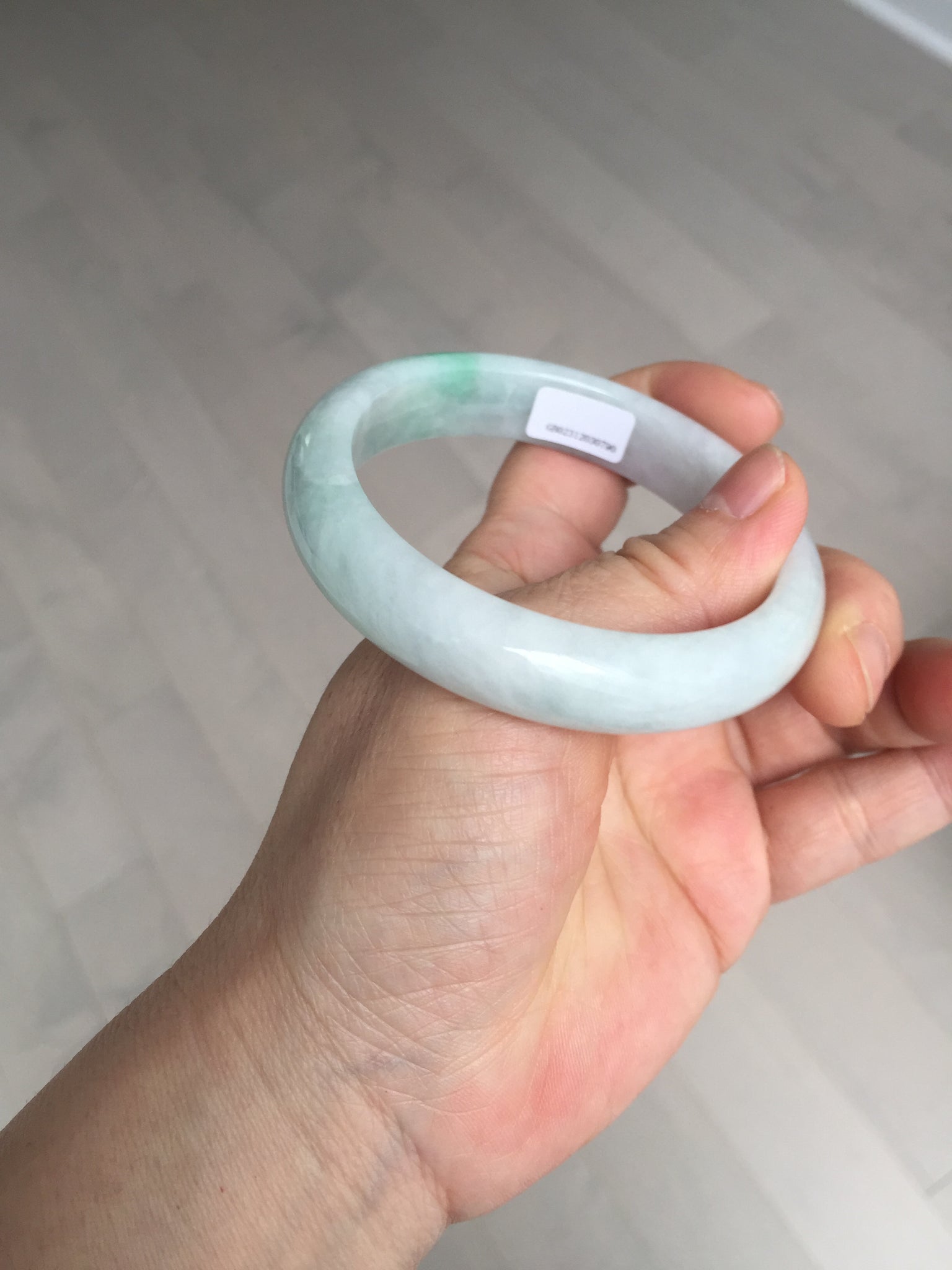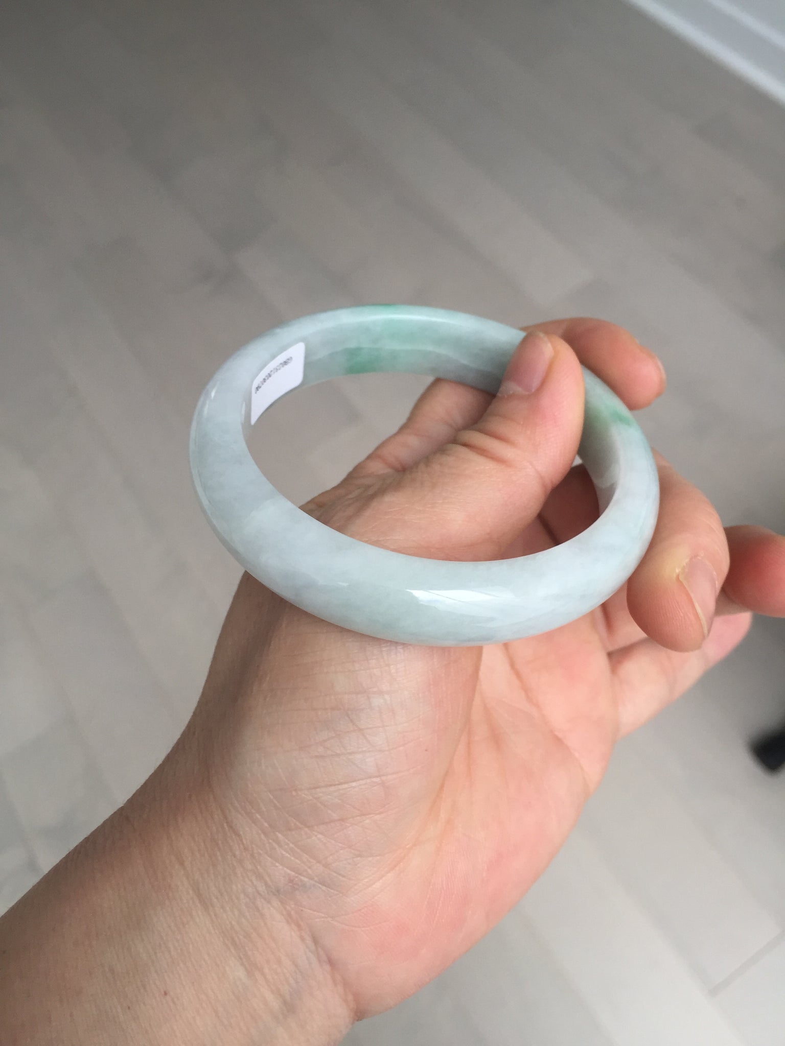 One long U shape crack. The bangle is solid. Guaranteed firmness(refund if break). Some hairlines or cotton areas. The purple is super light. lighter than in the photos.