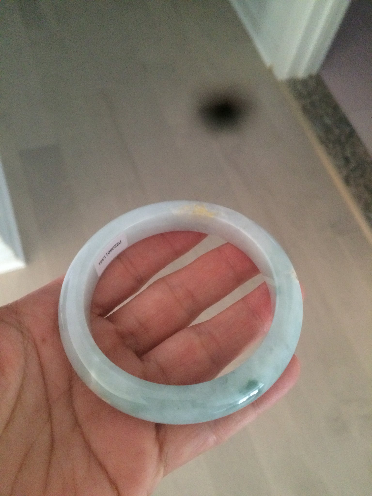 57.5mm Certified Type A 100% Natural icy green/white Jadeite Jade bangle AT20-1351