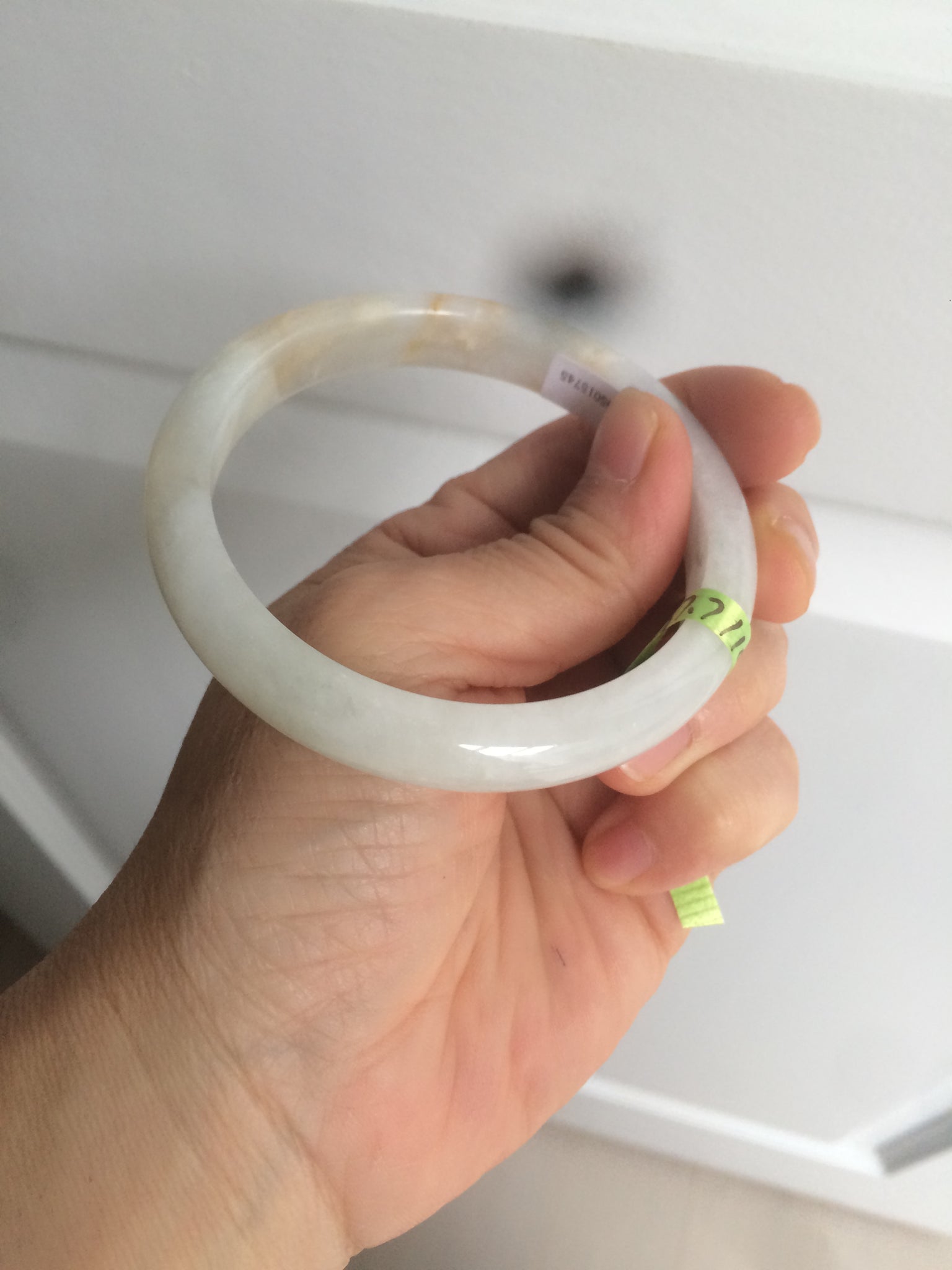 Some cracks. Most of them are alongside the bangle. Won't influence the firmness. Some yellow rough surfaces with a few wax residues. Cotton spots and cotton lines.