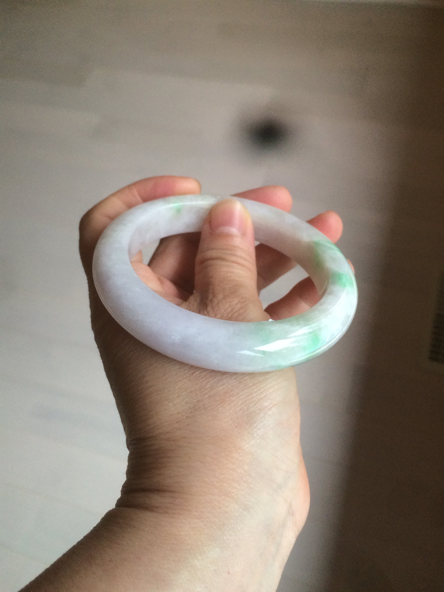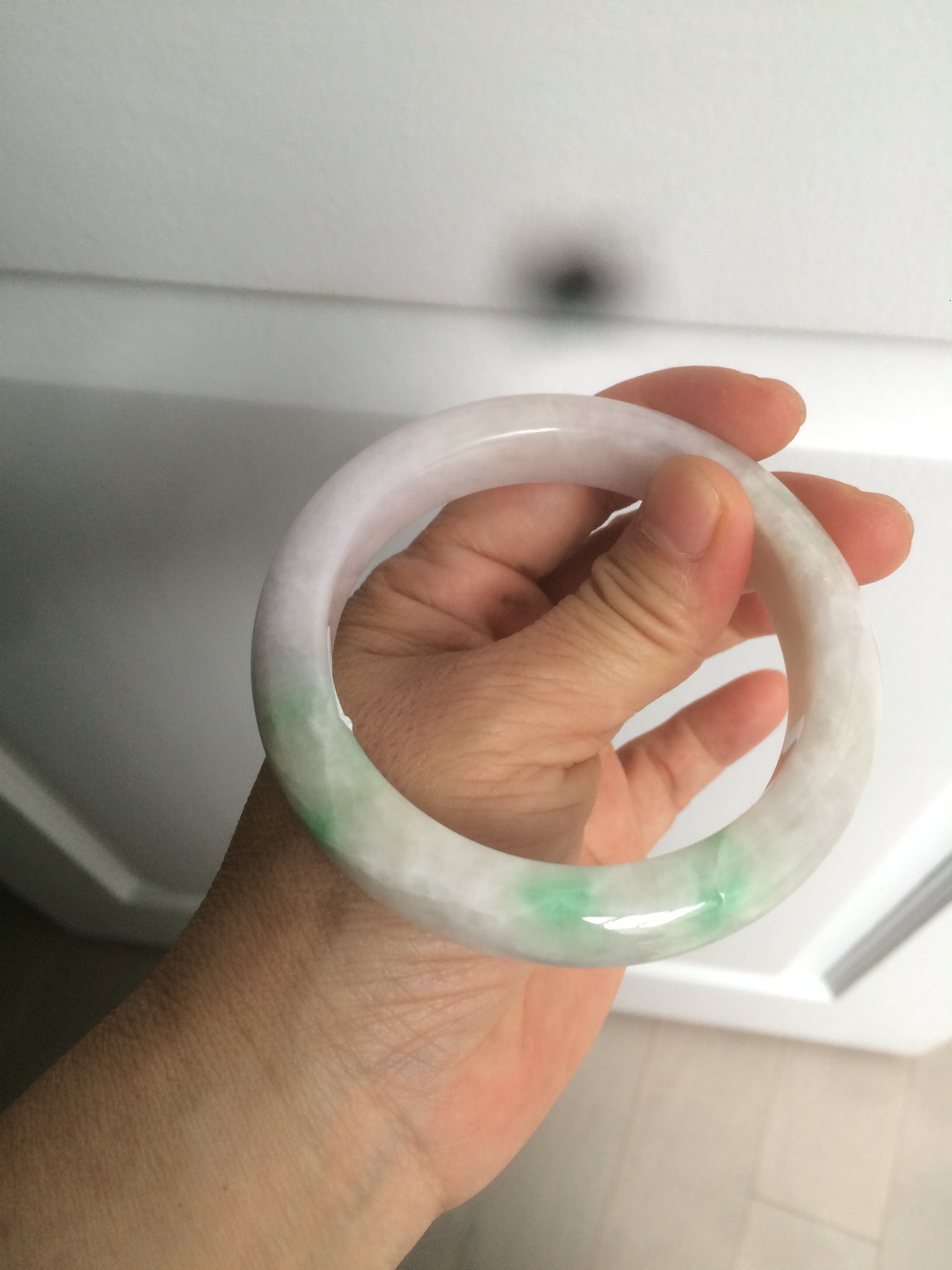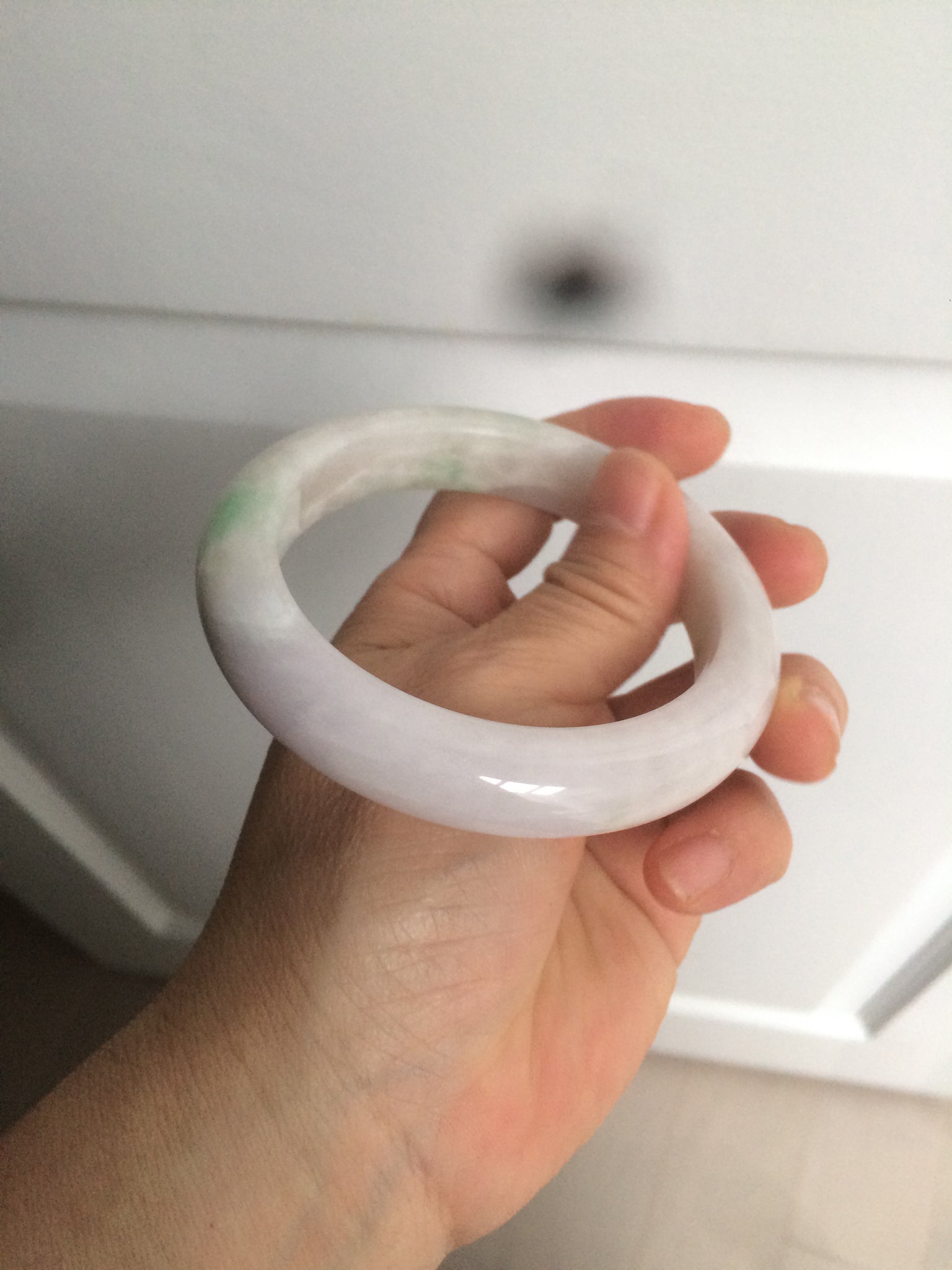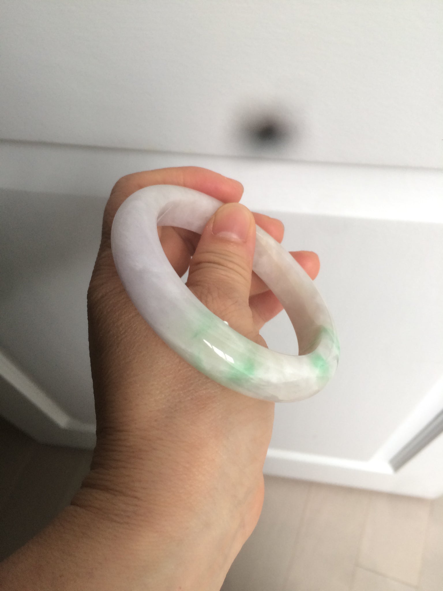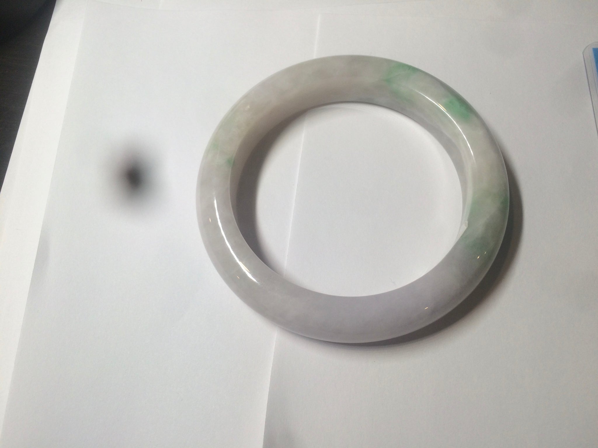 One ring-shaped crack. Quite a lot of hairlines or cotton lines. Photos may not show all. One of them are ring shape. The bangle is solid(Guaranteed!). Some cotton spots and lines. Not transparent. The purple is lighter than in the photos.