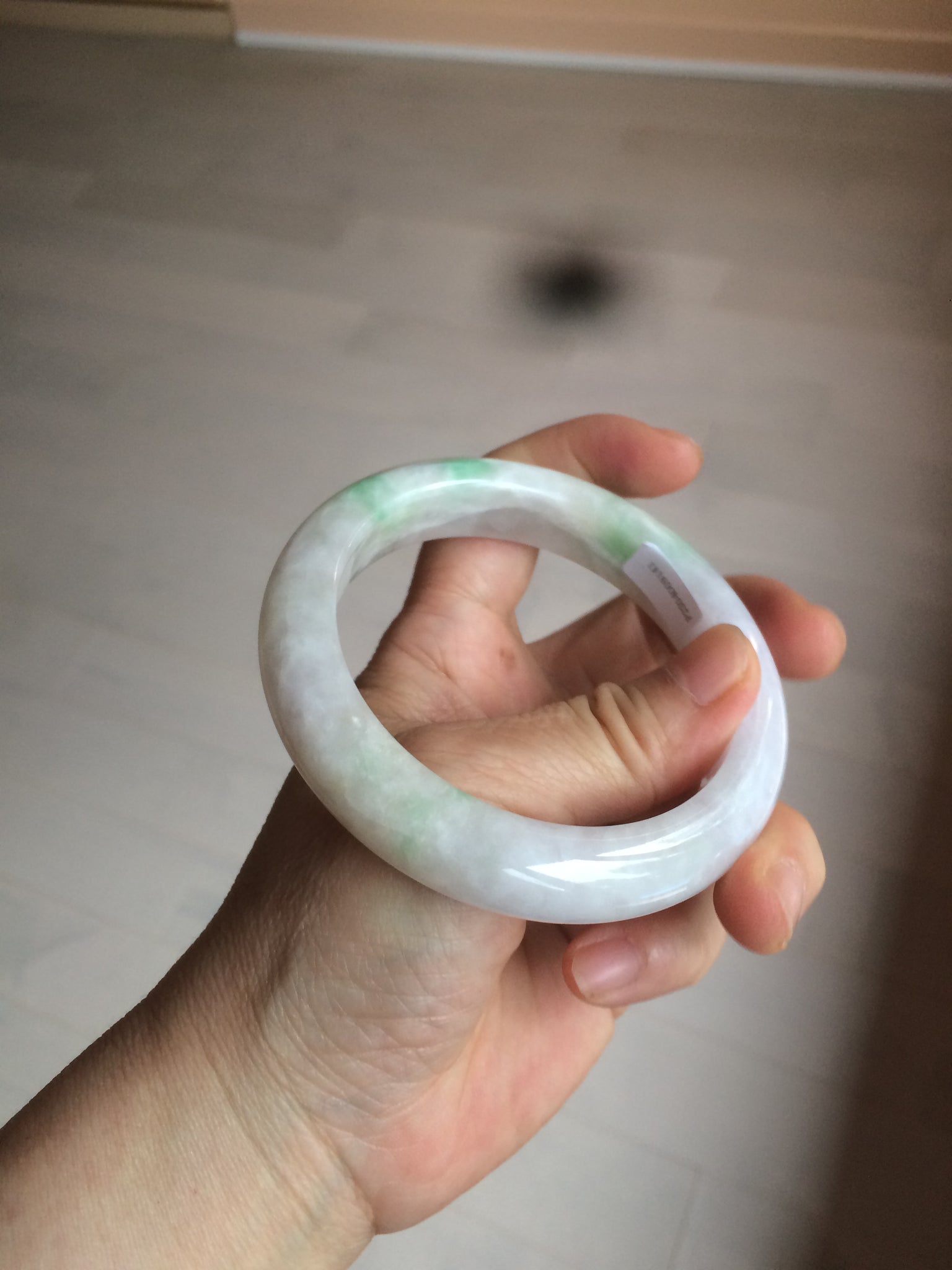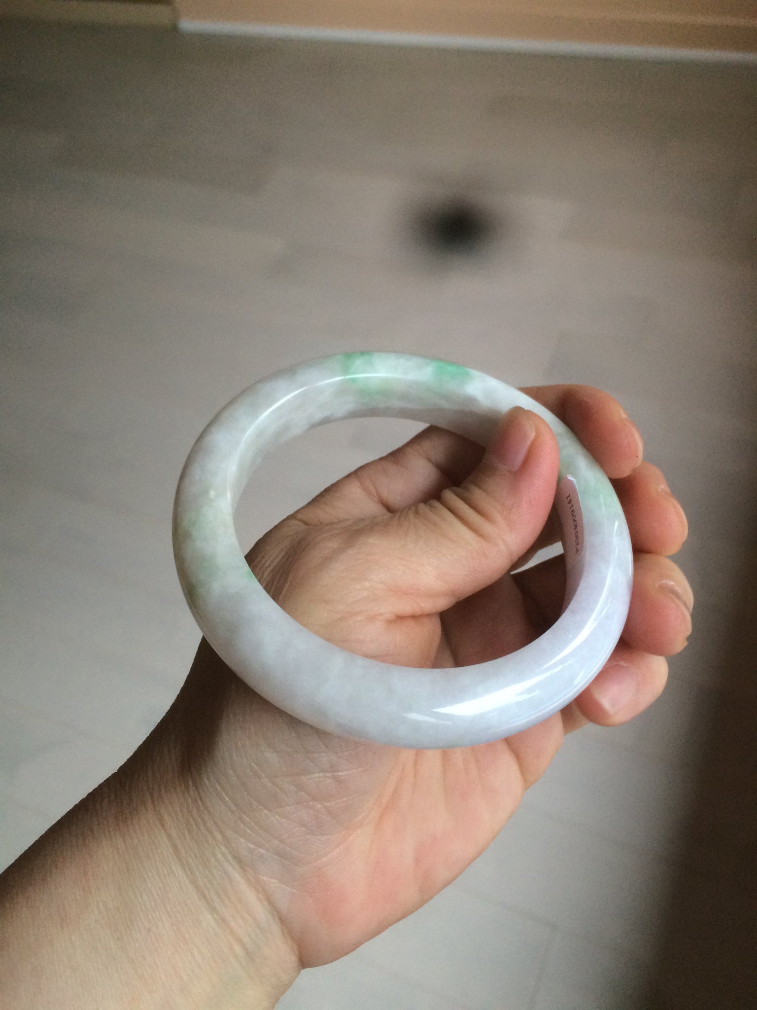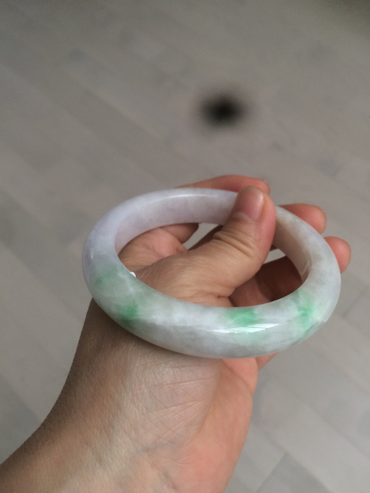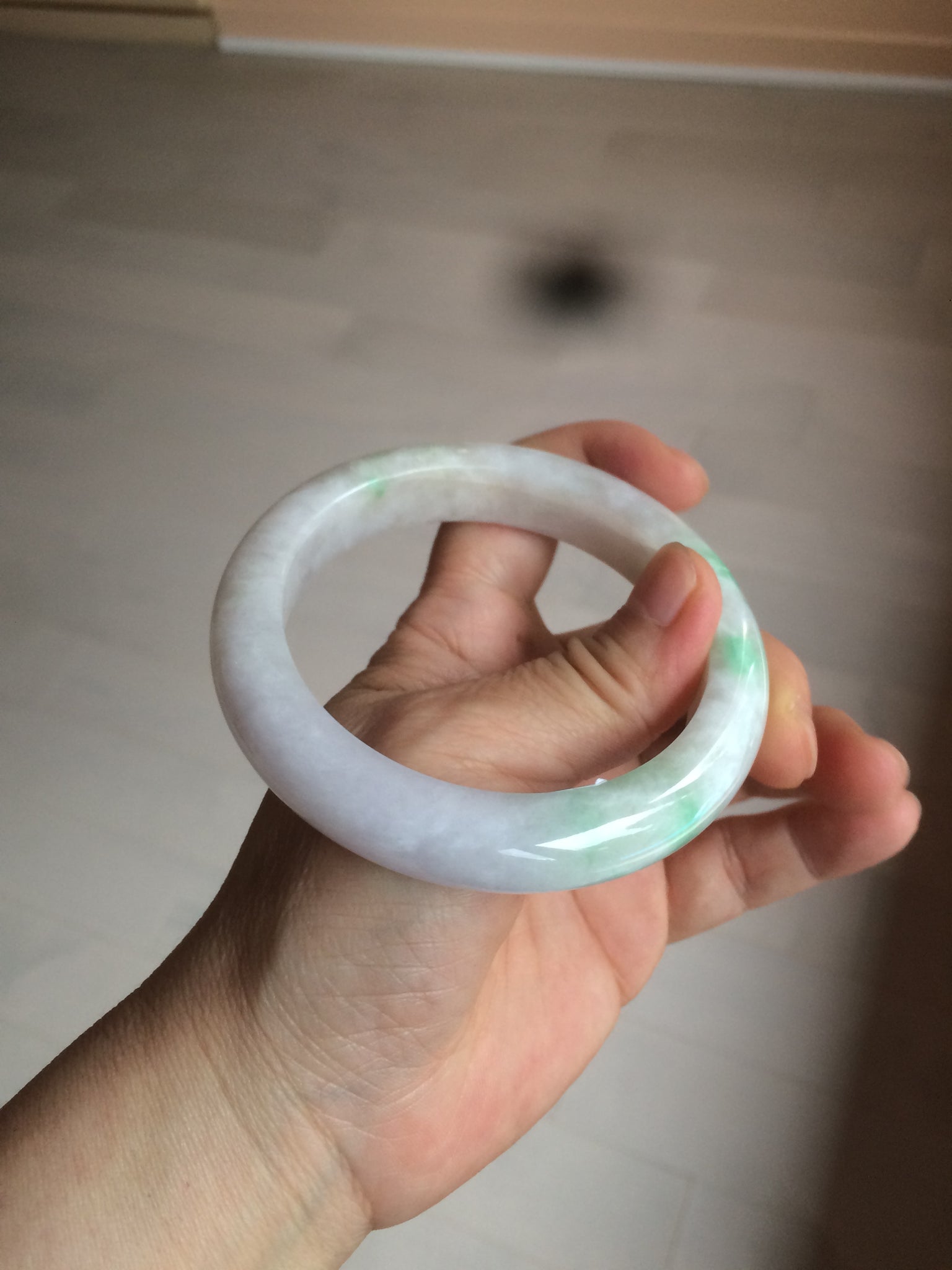 One ring-shaped crack. Quite a lot of hairlines or cotton lines. Photos may not show all. One of them are ring shape. The bangle is solid(Guaranteed!). Some cotton spots and lines. Not transparent. The purple is lighter than in the photos.
