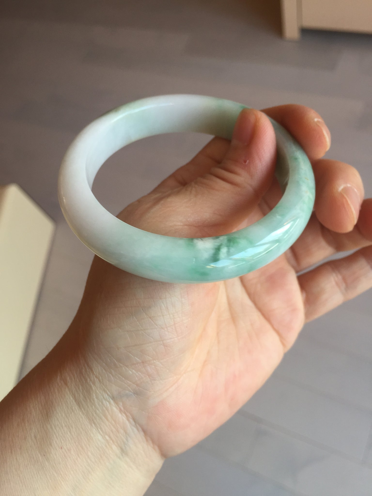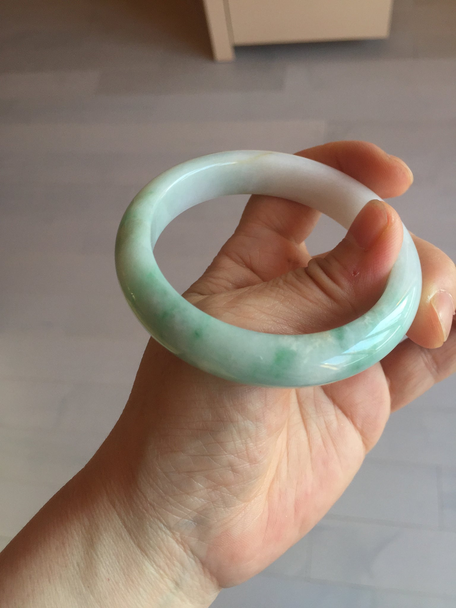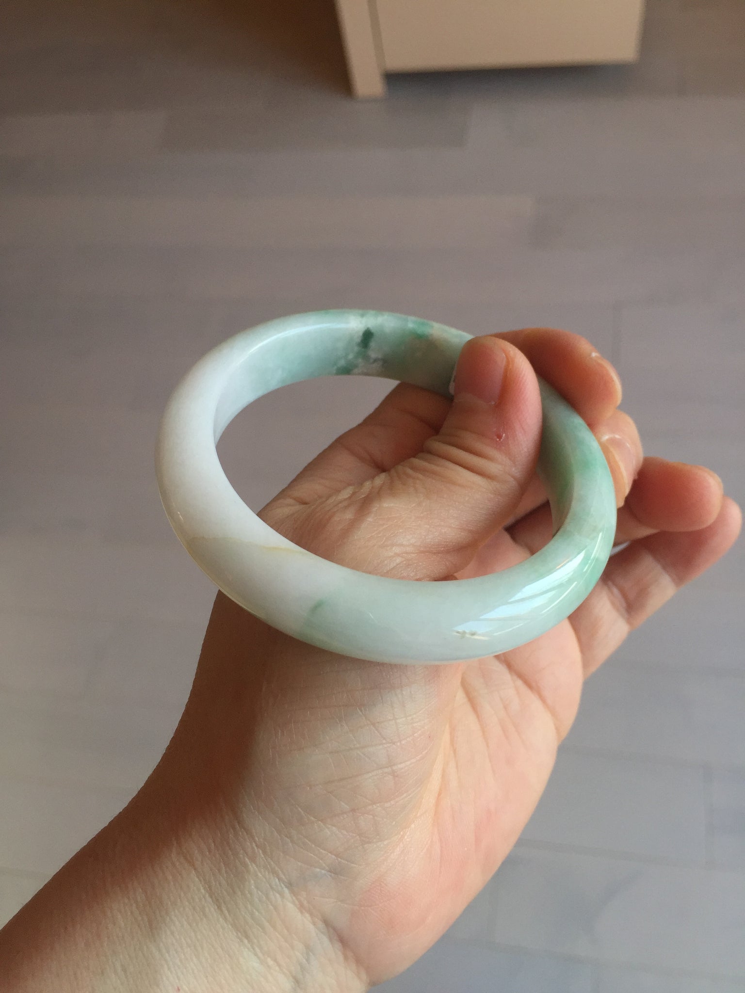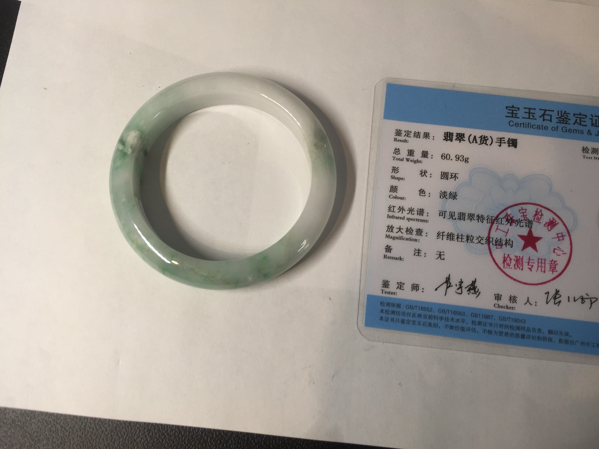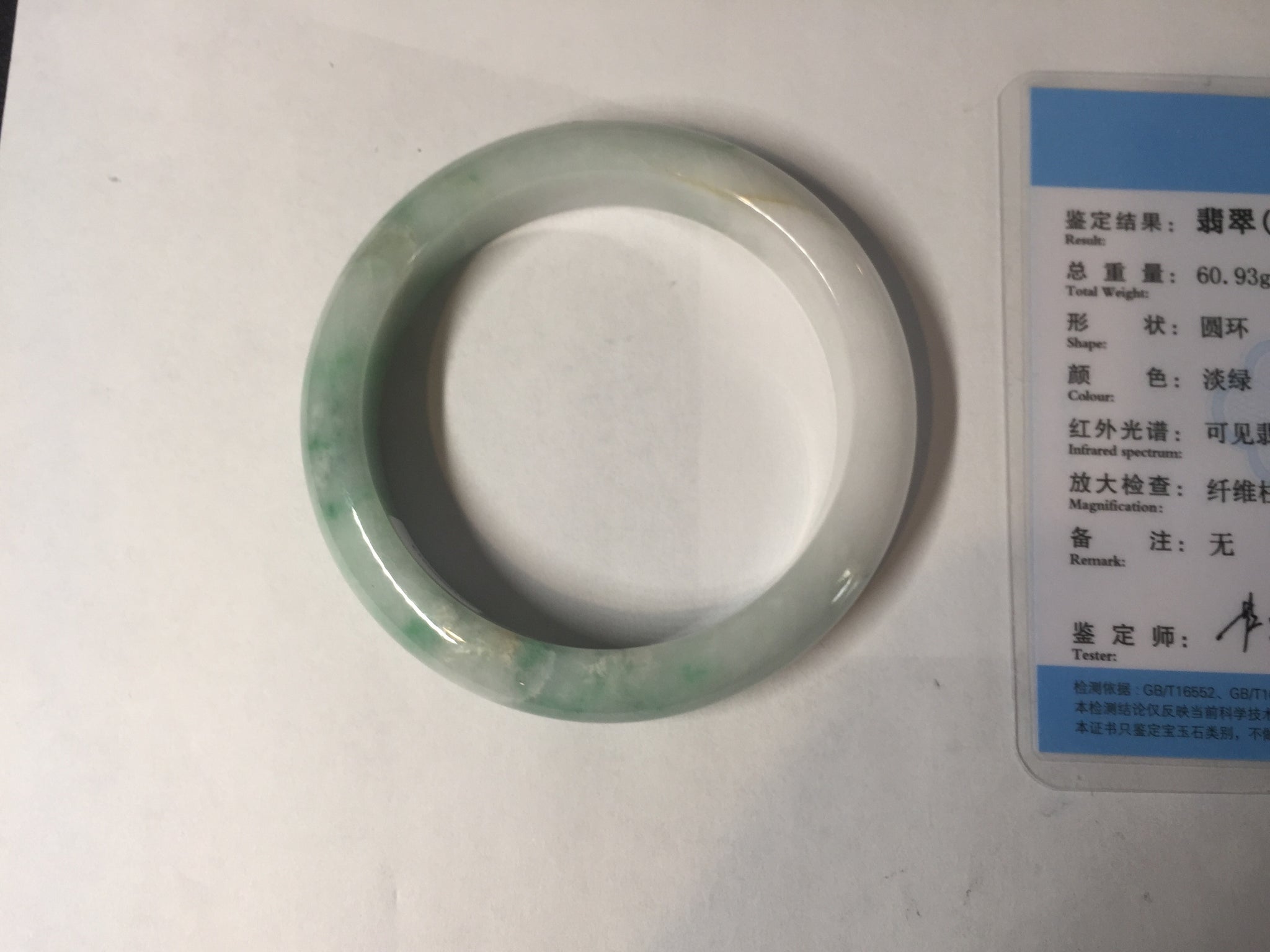 No cracks. There are some hairlines (More than 8, not all have been shown in the photos). The bangle is solid (Guaranteed!). It makes a high-pitched sound when clicked. Some cotton lines and cotton areas.