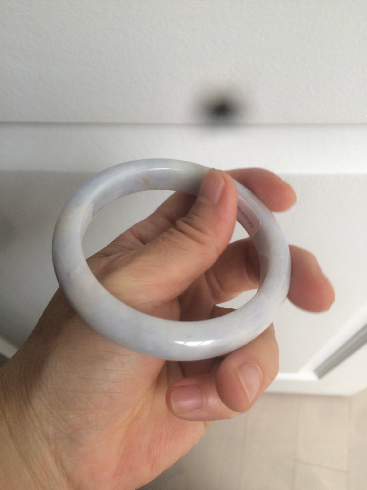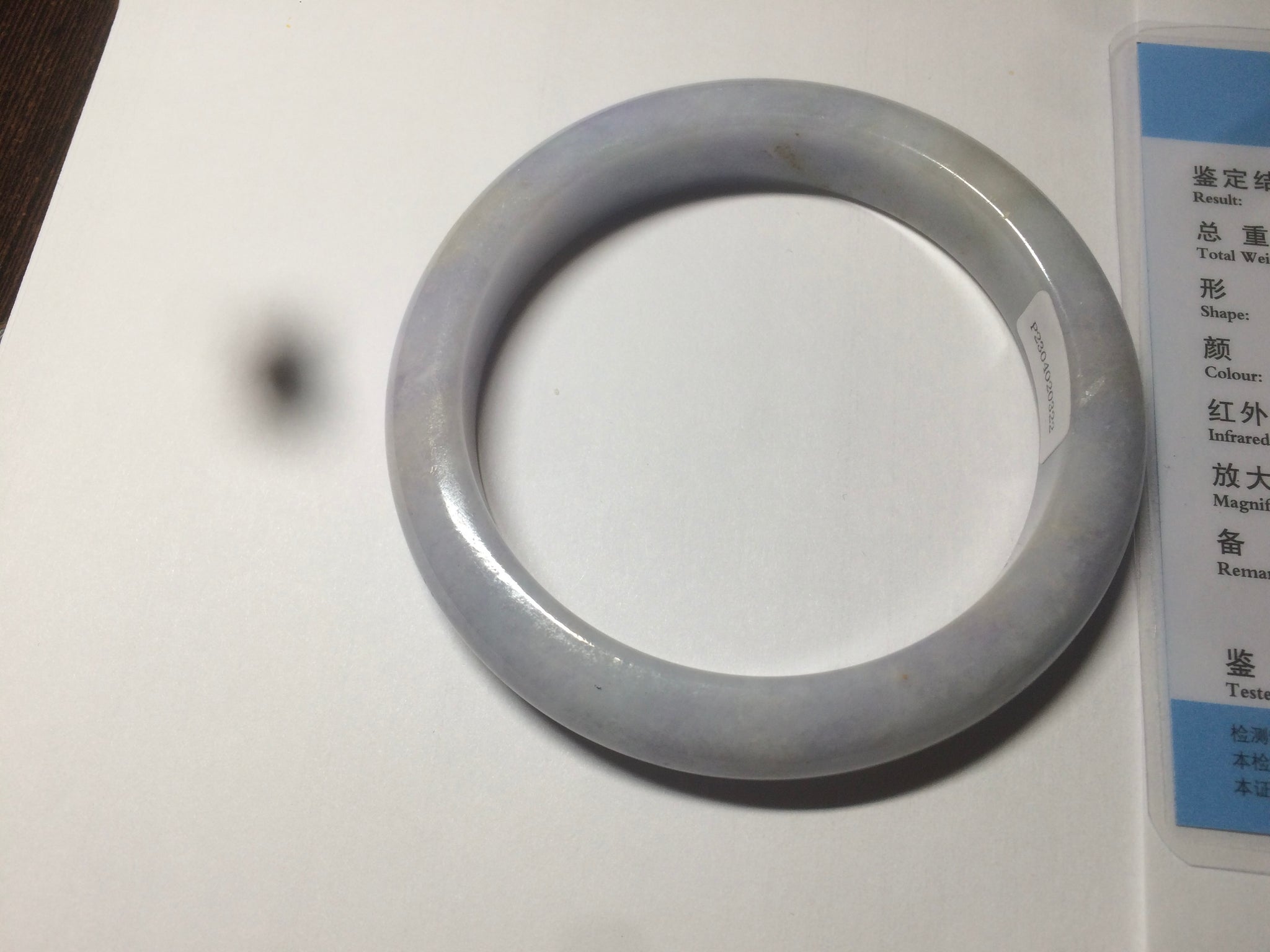56.9mm Certified type A 100% Natural white/light purple Jadeite bangle AC76-0322