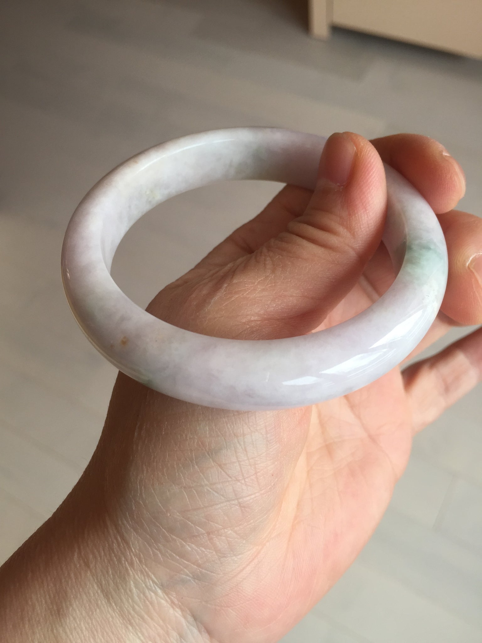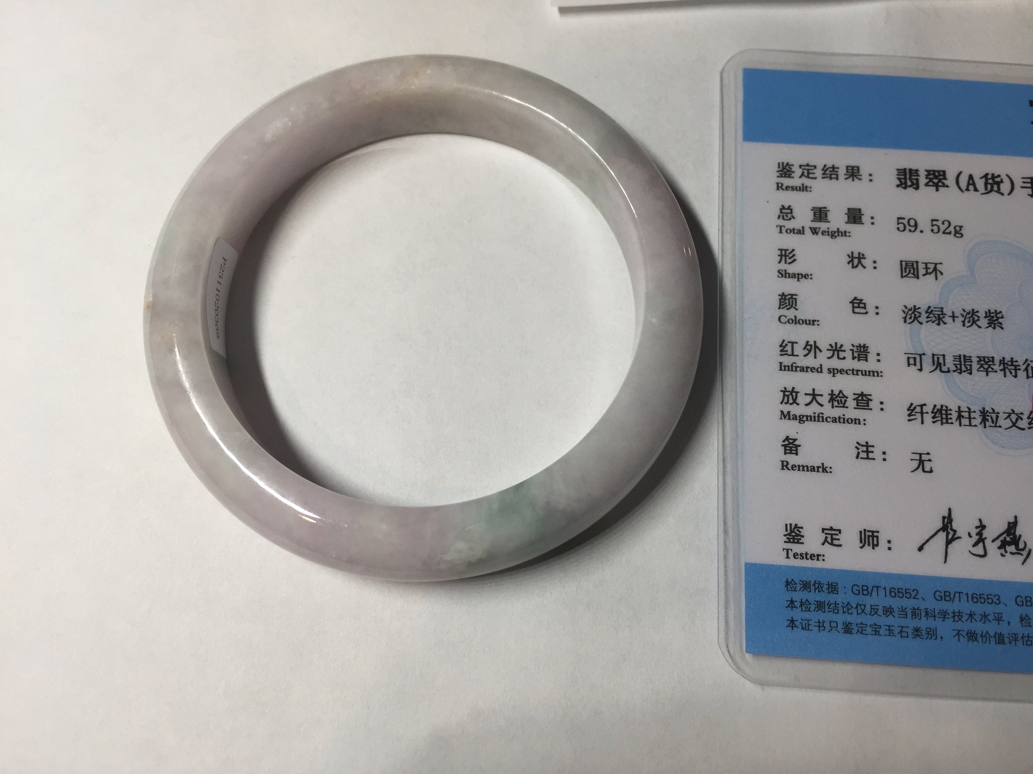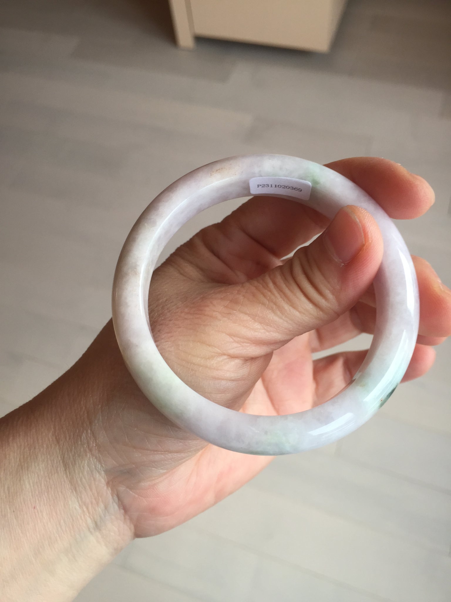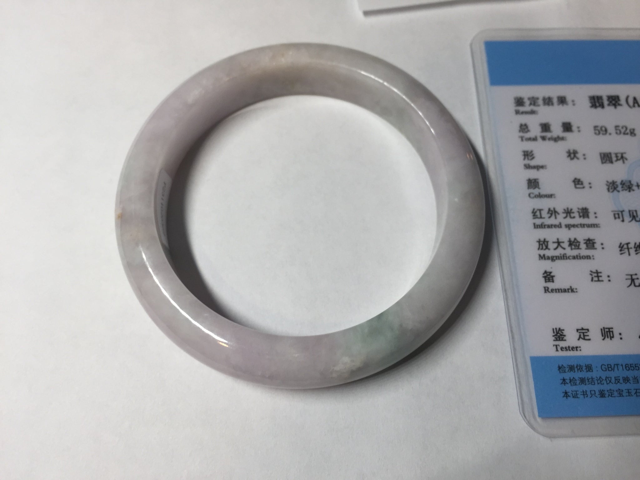 57.5mm Certified Type A 100% Natural sunny green/white/purple Jadeite Jade bangle BL5-0369